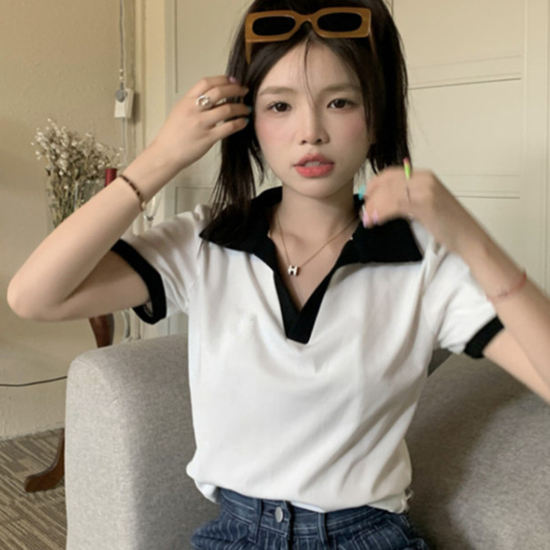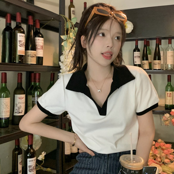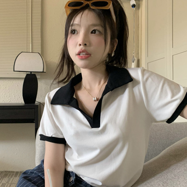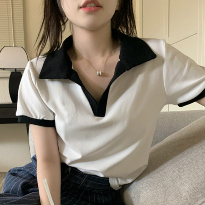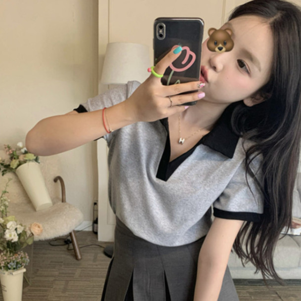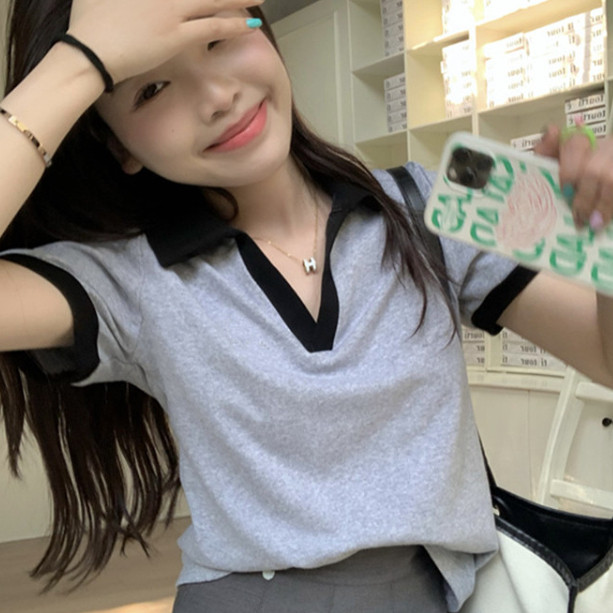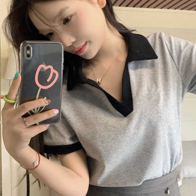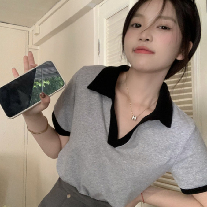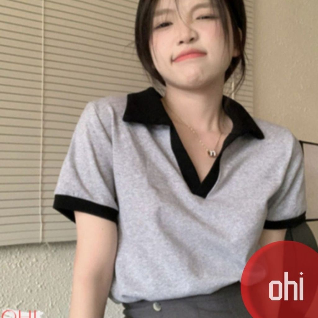 【ohi】POLO領短版短袖上衣 顯瘦上衣 女上衣 短袖t恤 女裝 寬鬆上衣GTM1020灰色,M|灰色,L|灰色,XL|白色,M|白色,L|白色,XLPolo ShirtsOHI衣著