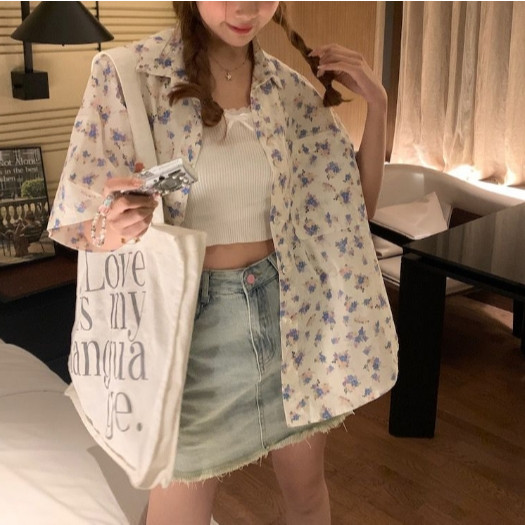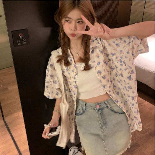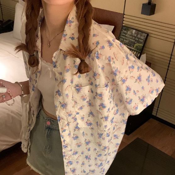【ohi】碎花短袖襯衫上衣外套 薄款寬鬆百搭上衣 女生襯衫 短袖襯衫 襯衣 短袖上衣 女裝 GSX8024圖片色,S|圖片色,M|圖片色,L|圖片色,XL|圖片色,2XLShirts & BlousesOHI衣著
