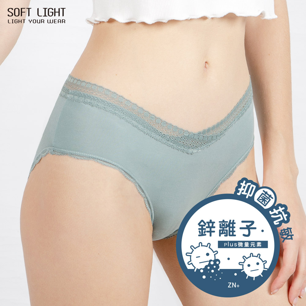 SOFT LIGHT – 「抑菌鋅科技」鋅升級V型蕾絲內褲豆綠,F|黑色,加大|粉色,加大|卡其,F|卡其,加大|灰藍,加大|黑色,F|粉色,F|豆綠,加大|灰藍,FPantiesSOFT LIGHT 舒芙蕾輕盈內衣