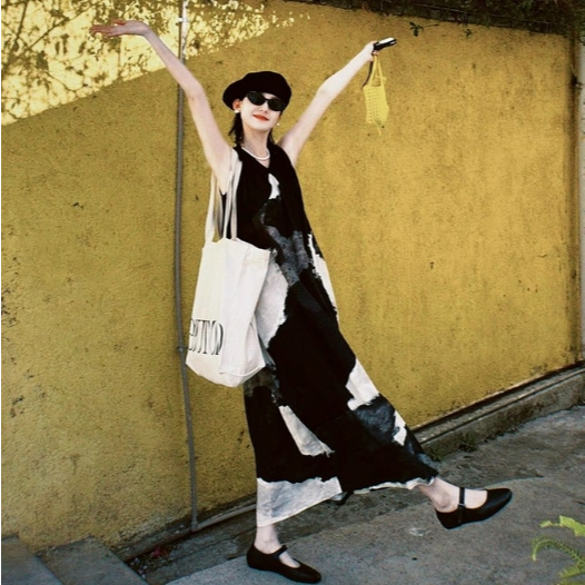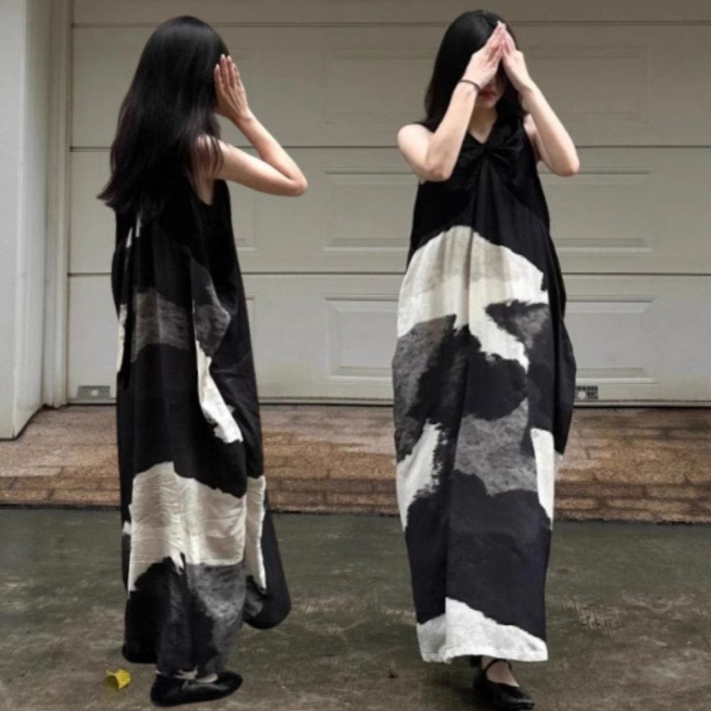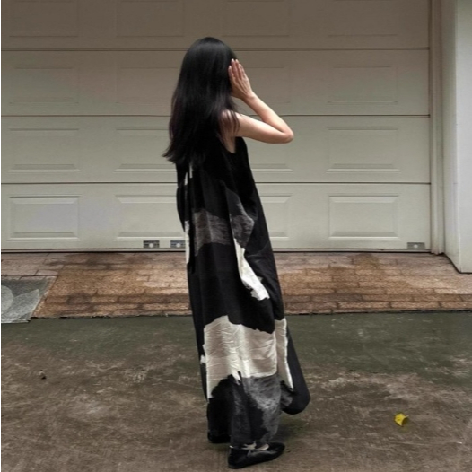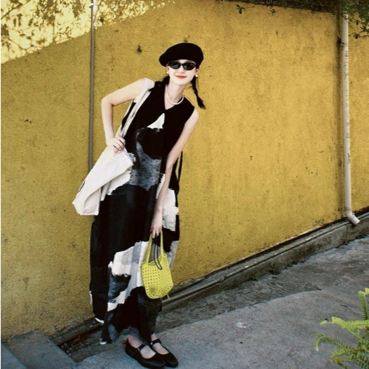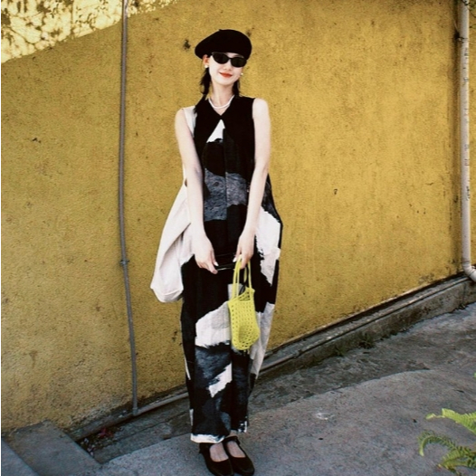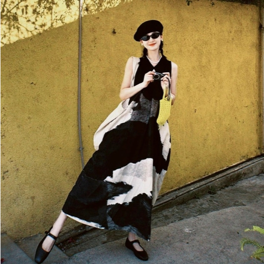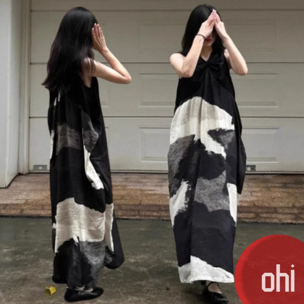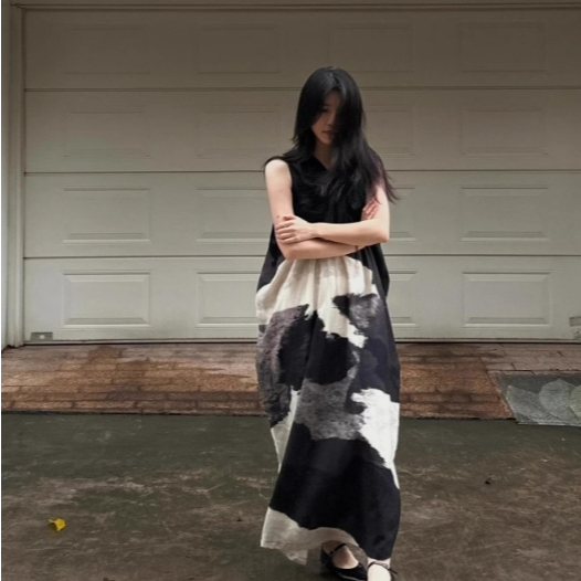 【ohi】水墨畫氣質無袖連身裙 高級感簡約印花寬鬆背心裙 連身裙 長裙 中長款裙子 洋裝 連衣裙 女裝 GKD257圖片色,S|圖片色,M|圖片色,L|圖片色,XL|圖片色,2XLOHI衣著