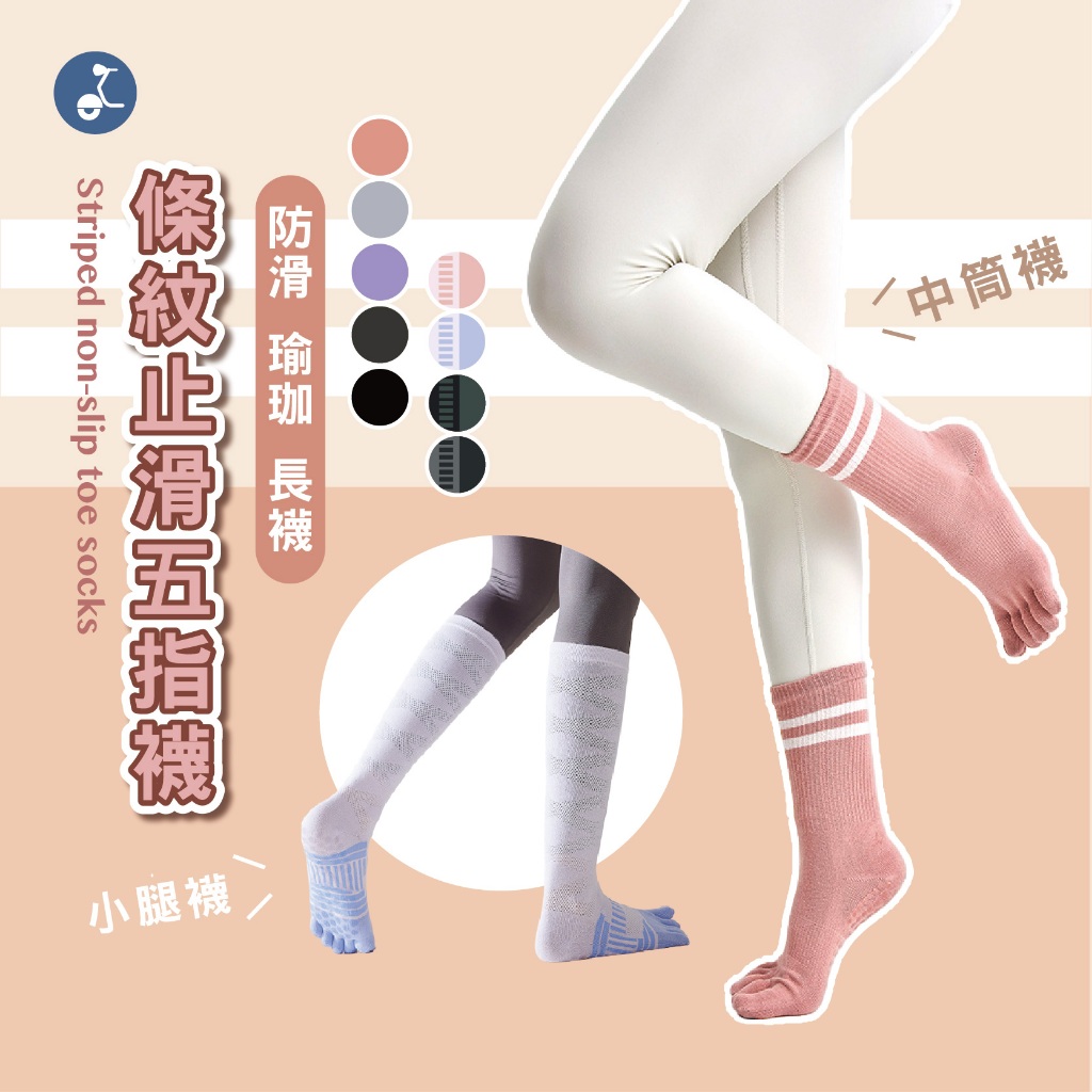 • 【OTOBAI】運動長襪 yoga 止滑襪 條紋襪 中筒襪 女生襪子 小腿襪 分趾襪 襪子 長襪 五指襪 瑜珈襪 防滑襪