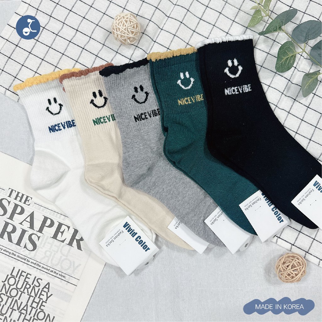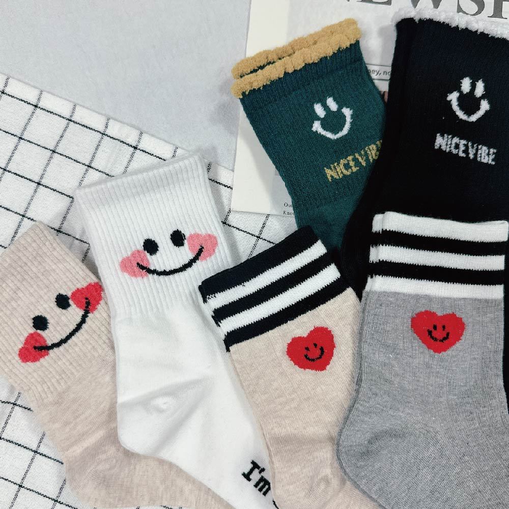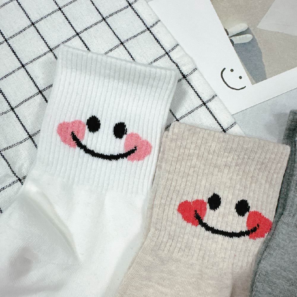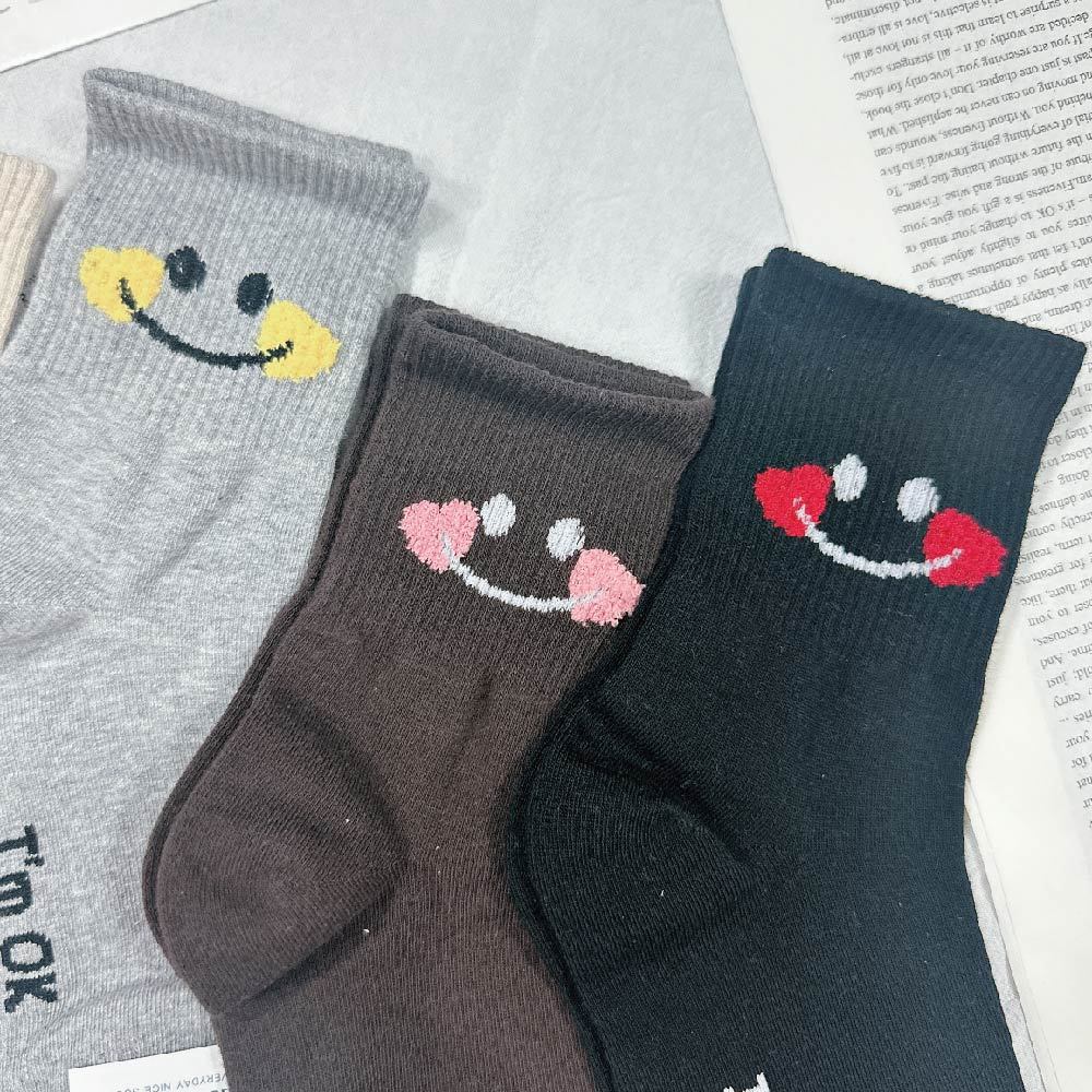 • 【OTOBAI】韓國襪子 微笑襪 韓國襪 愛心襪子 韓國長襪 女生襪子 可愛襪子 中筒襪 襪子 正韓襪 女生長襪
