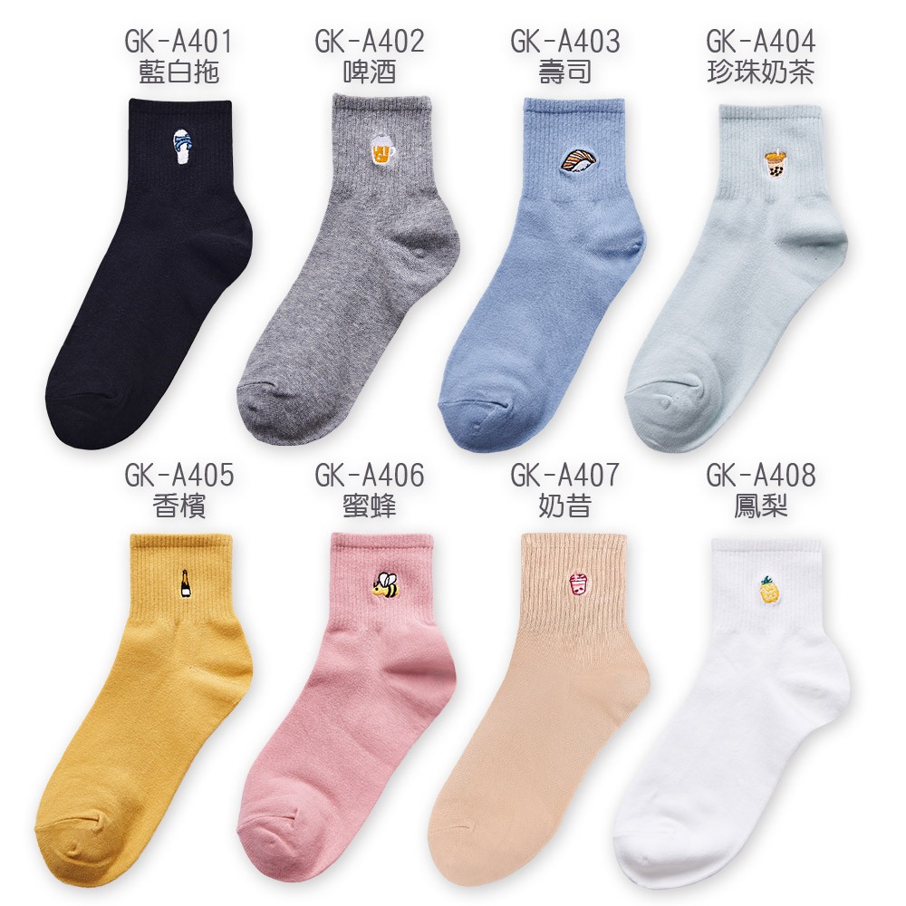 台灣製刺繡中統襪 藍白拖 餅乾 啤酒 電繡長襪 GK-A401~GK-A408【旺達棉品】
