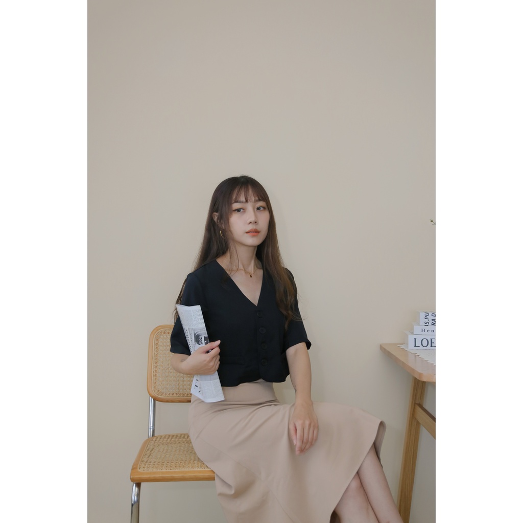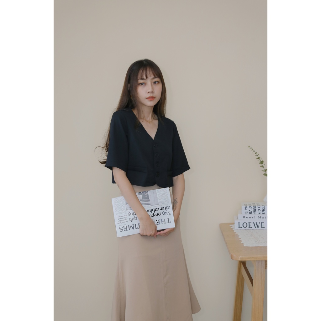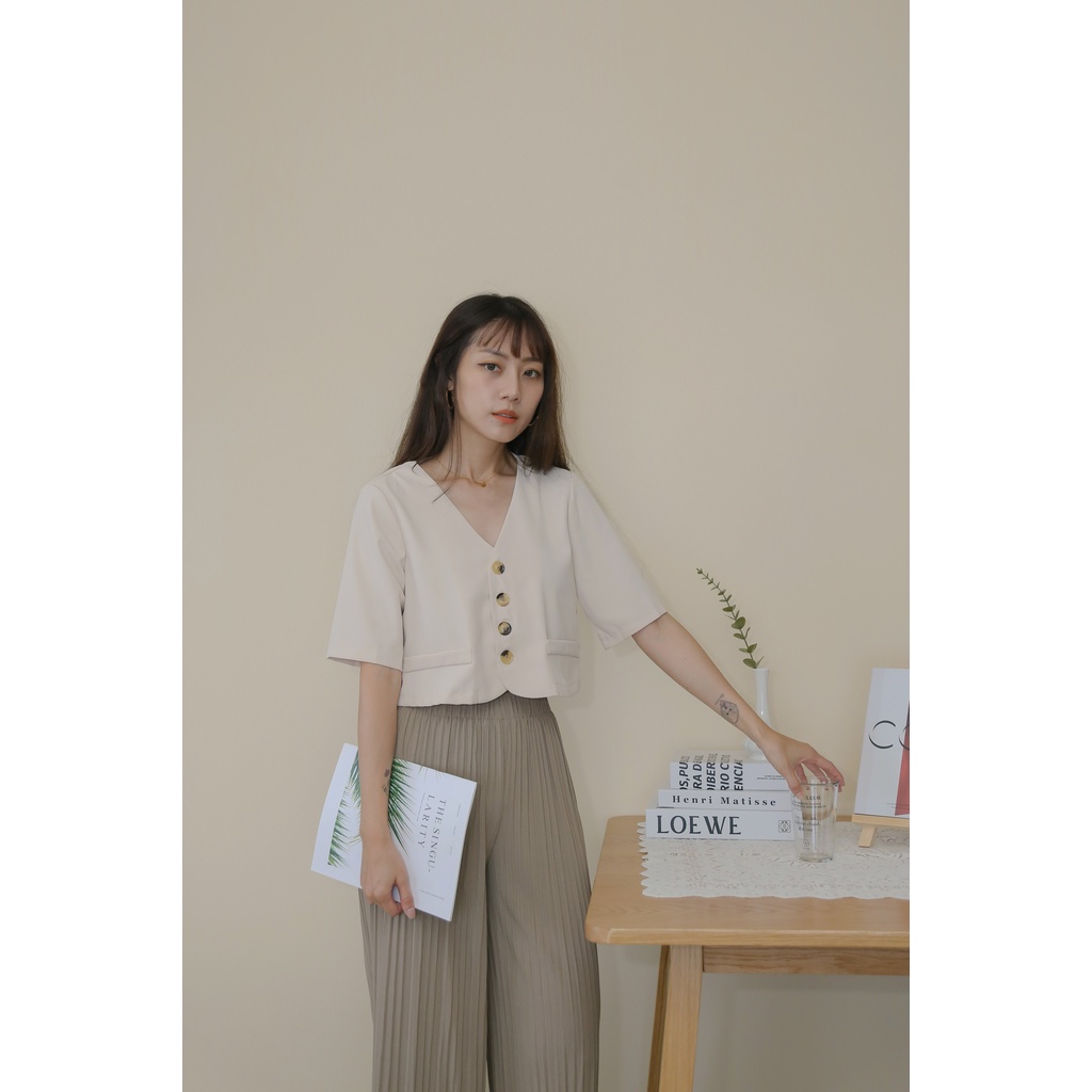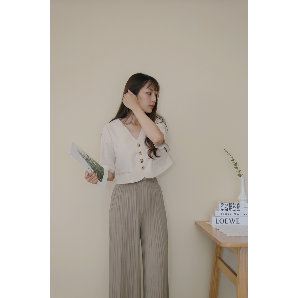 【Our Studio】無領俐落短版西裝外套 杏色 黑色(現貨)杏色,F|黑色,FBlazersOurStudio
