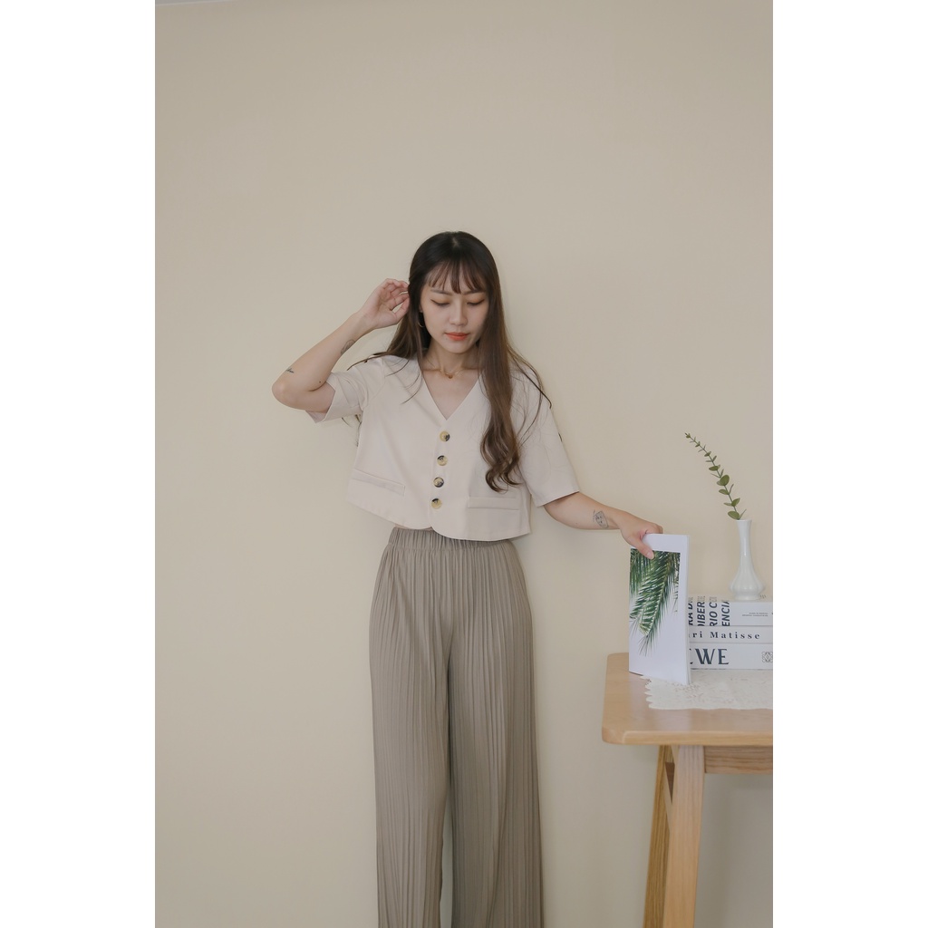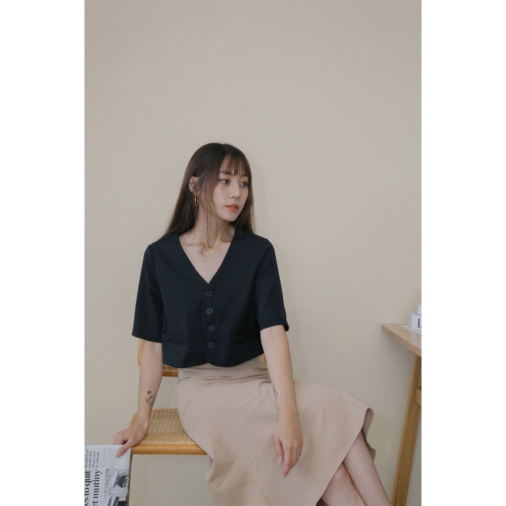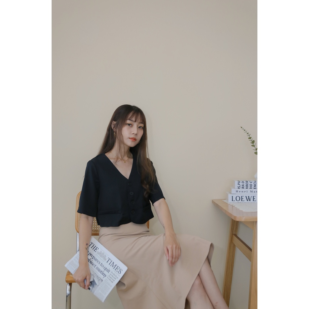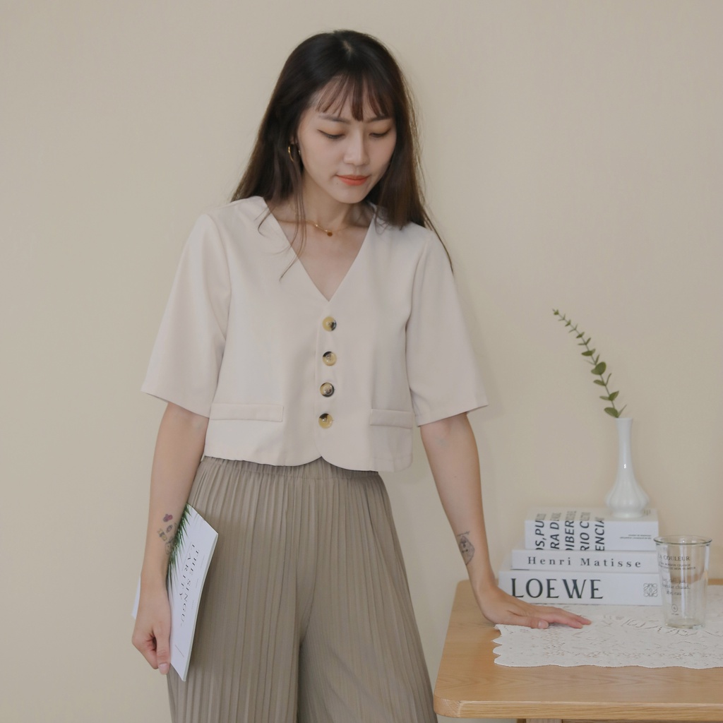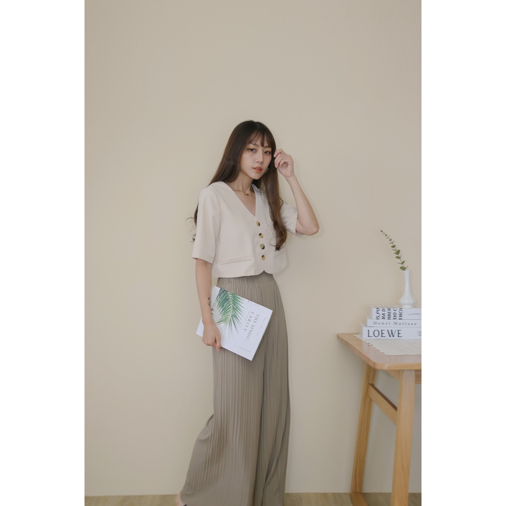 【Our Studio】無領俐落短版西裝外套 杏色 黑色(現貨)杏色,F|黑色,FBlazersOurStudio