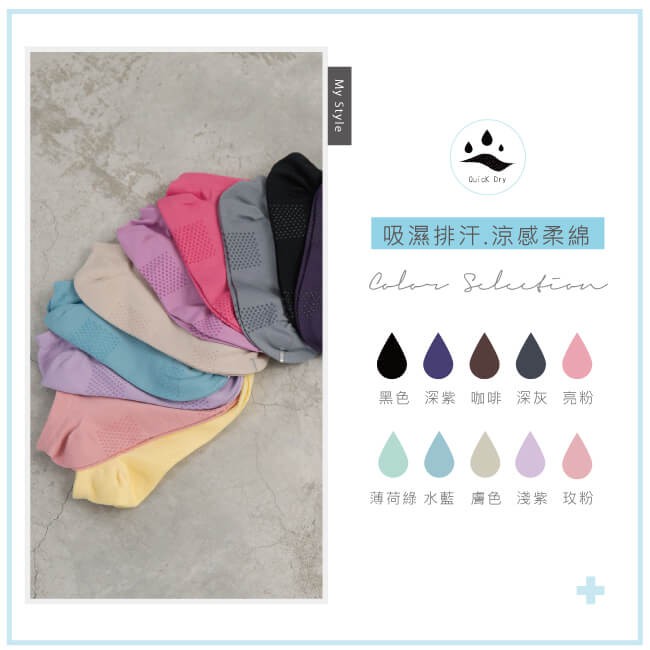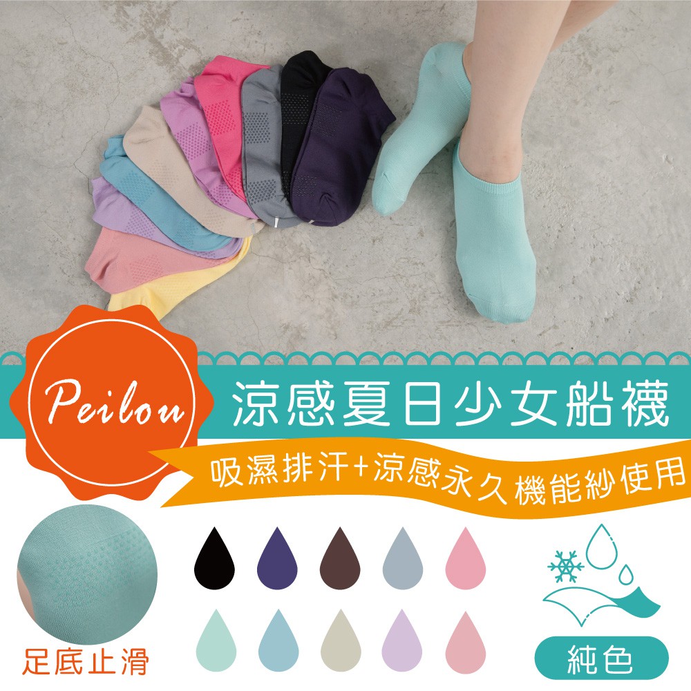 貝柔吸濕速乾腳底止滑船型襪-純色黑色|灰色|深紫|玫粉|淺紫|薄荷綠|水藍|膚色SocksPeilou 貝柔