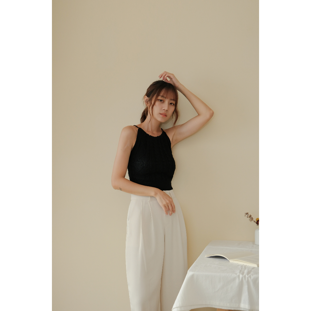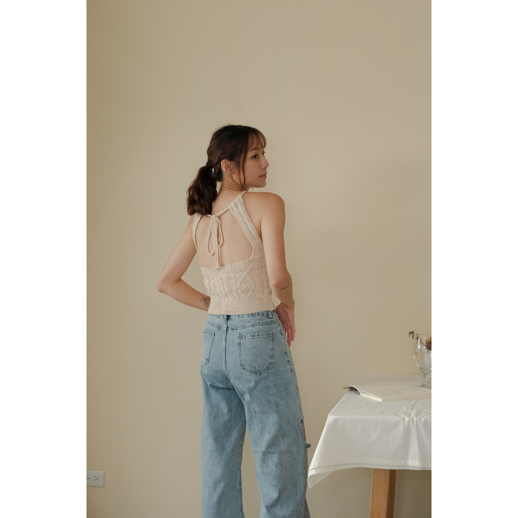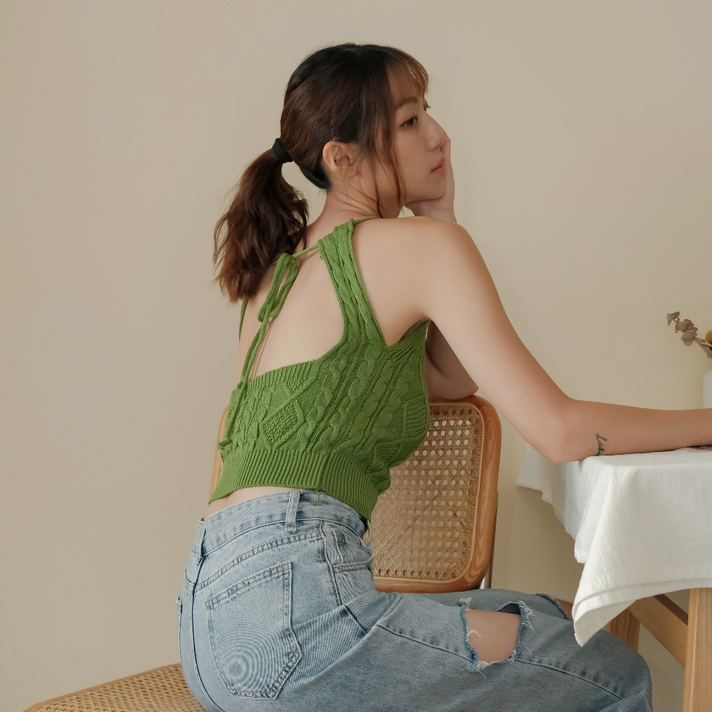 【Our Studio】小性感露背掛脖麻花削肩背心 黑色 杏色 草綠色(現貨)黑色,F|杏色,F|草綠色,FTanks & CamisolesOurStudio