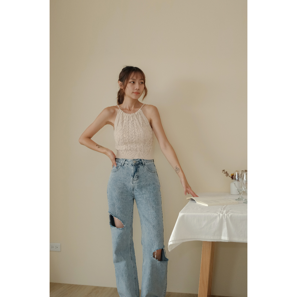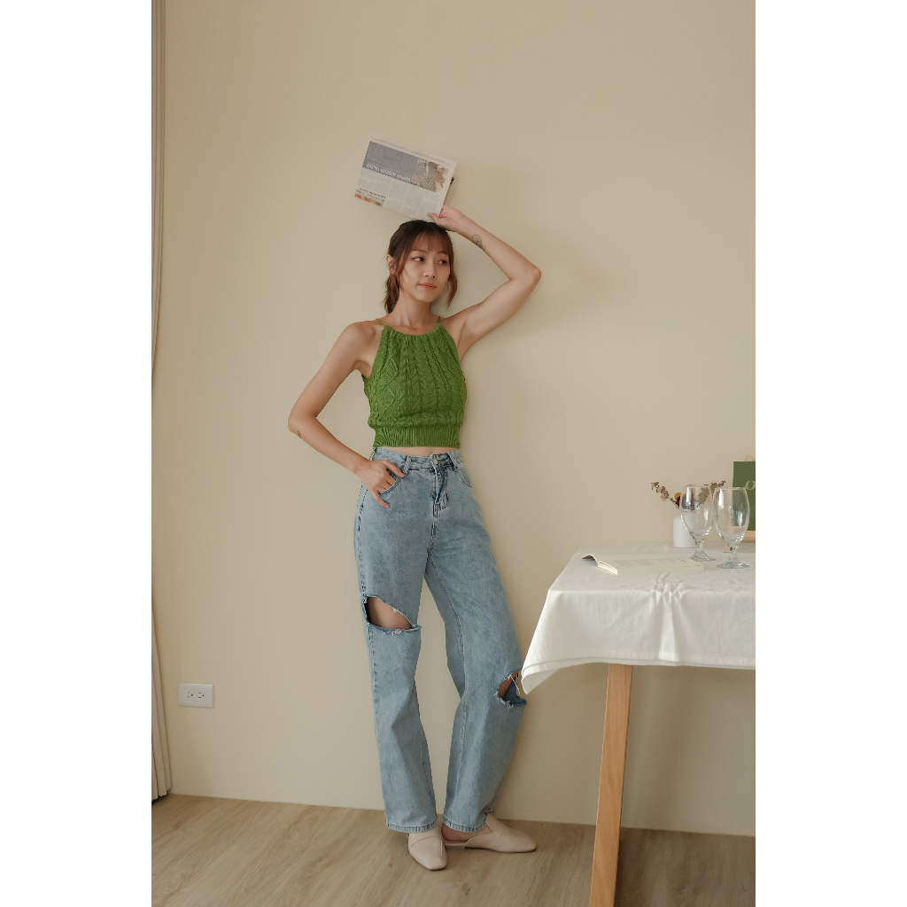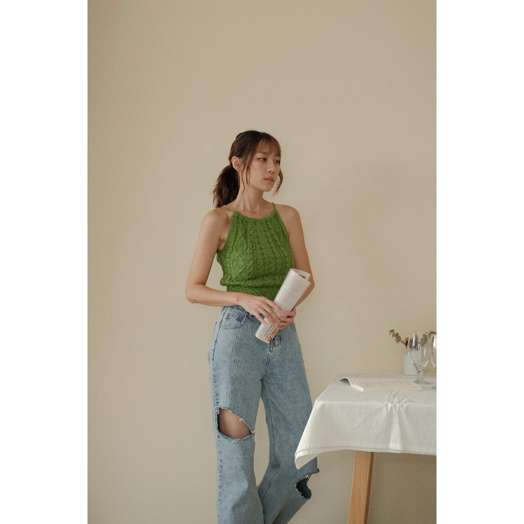 【Our Studio】小性感露背掛脖麻花削肩背心 黑色 杏色 草綠色(現貨)黑色,F|杏色,F|草綠色,FTanks & CamisolesOurStudio