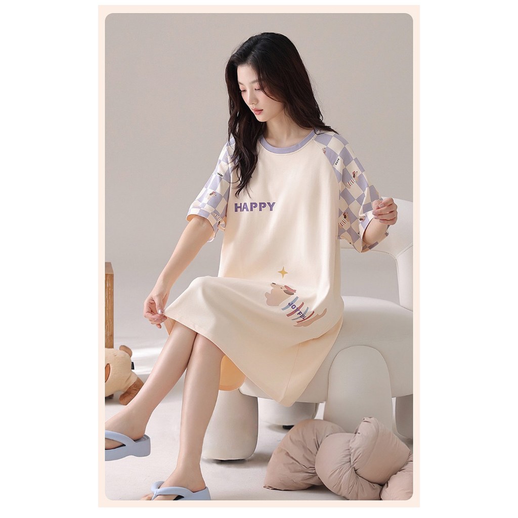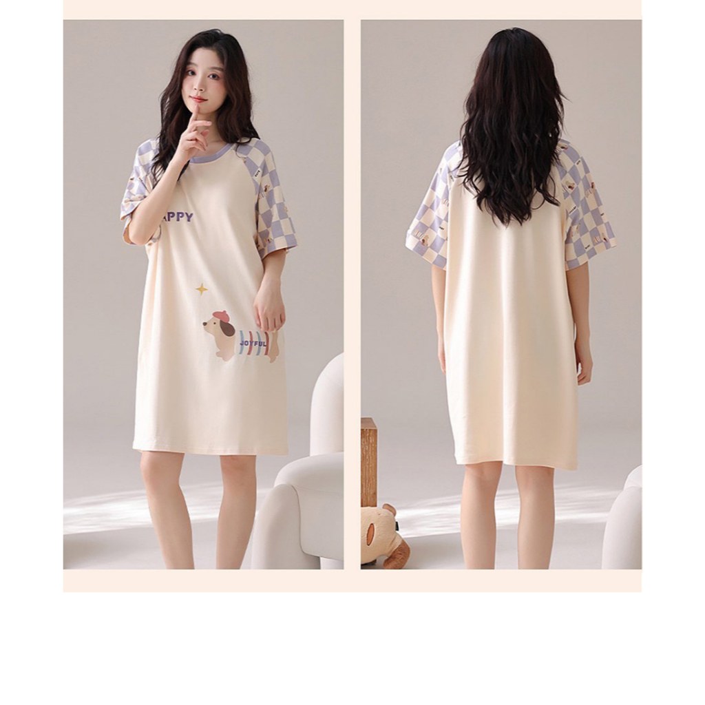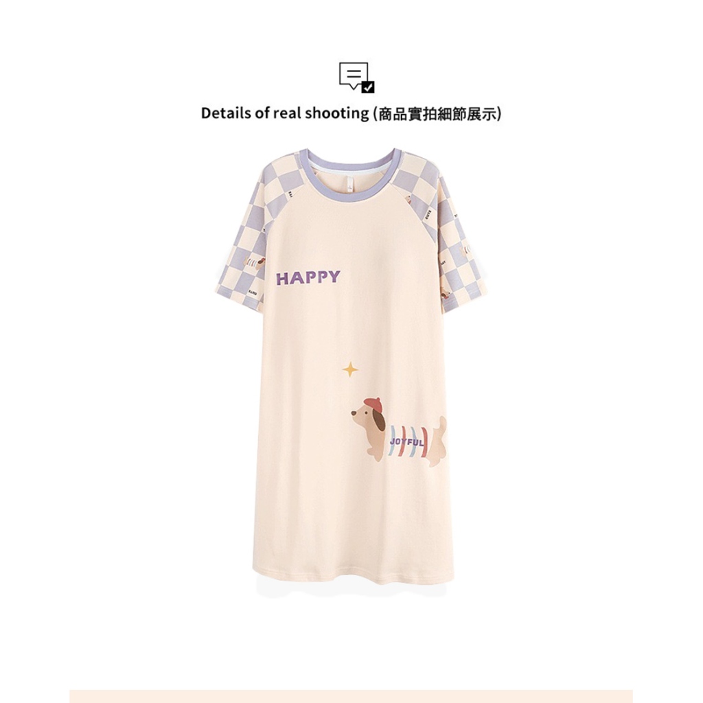 Pink Lady 純棉 罩杯式 紫格小狗 短袖睡裙 棉柔 春夏 圓領 印花 柔感 女睡衣 居家服 28130米黃,M-L|米黃,XLNight DressesPINK LADY內睡衣.Since 1995