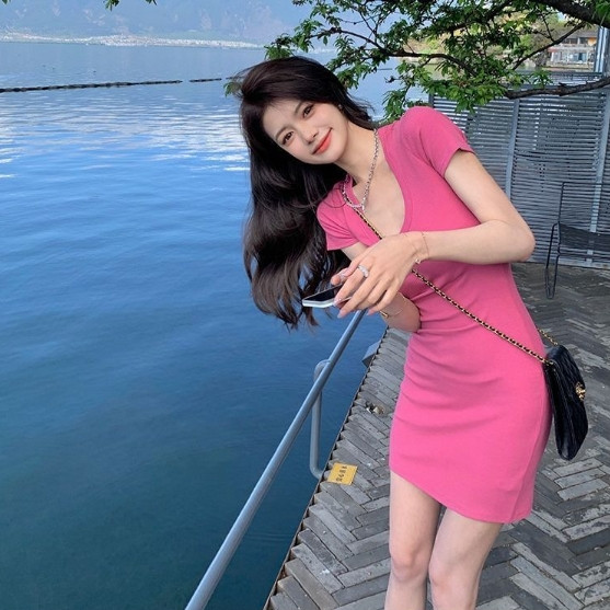 【ohi】合身包臀連衣裙 修身甜辣御姐風 連衣裙 短裙 女裝 小個子辣妹 百搭修身 洋裝 GKY2187黑色,S|黑色,M|黑色,L|黑色,XL|粉色,S|粉色,M|粉色,L|粉色,XLOHI衣著