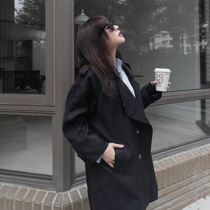 Space Picnic|大翻領雙釦風衣-3色【C23121022】黑|卡|杏Winter Jackets & CoatsSpace Picnic