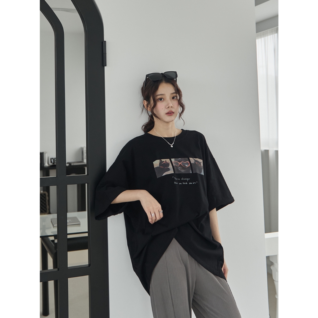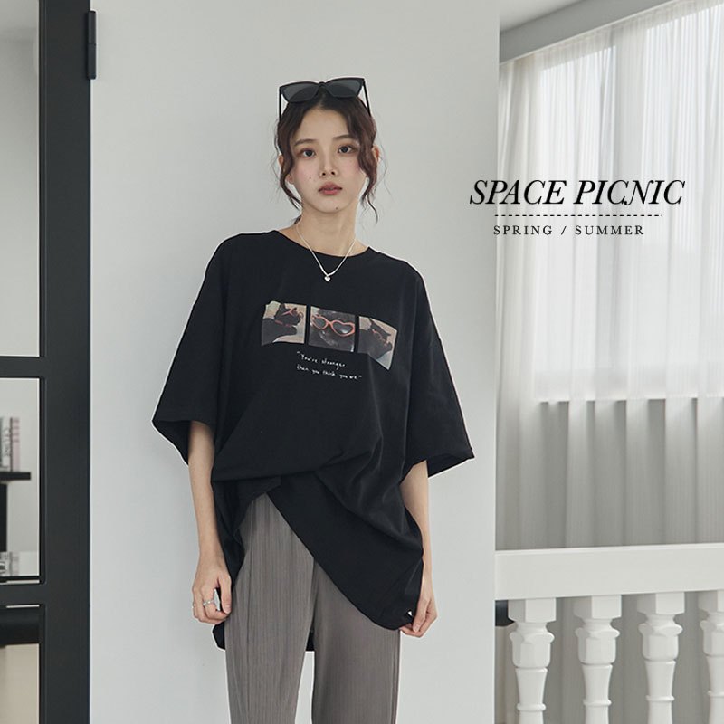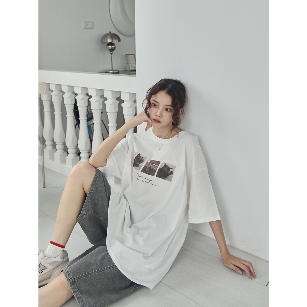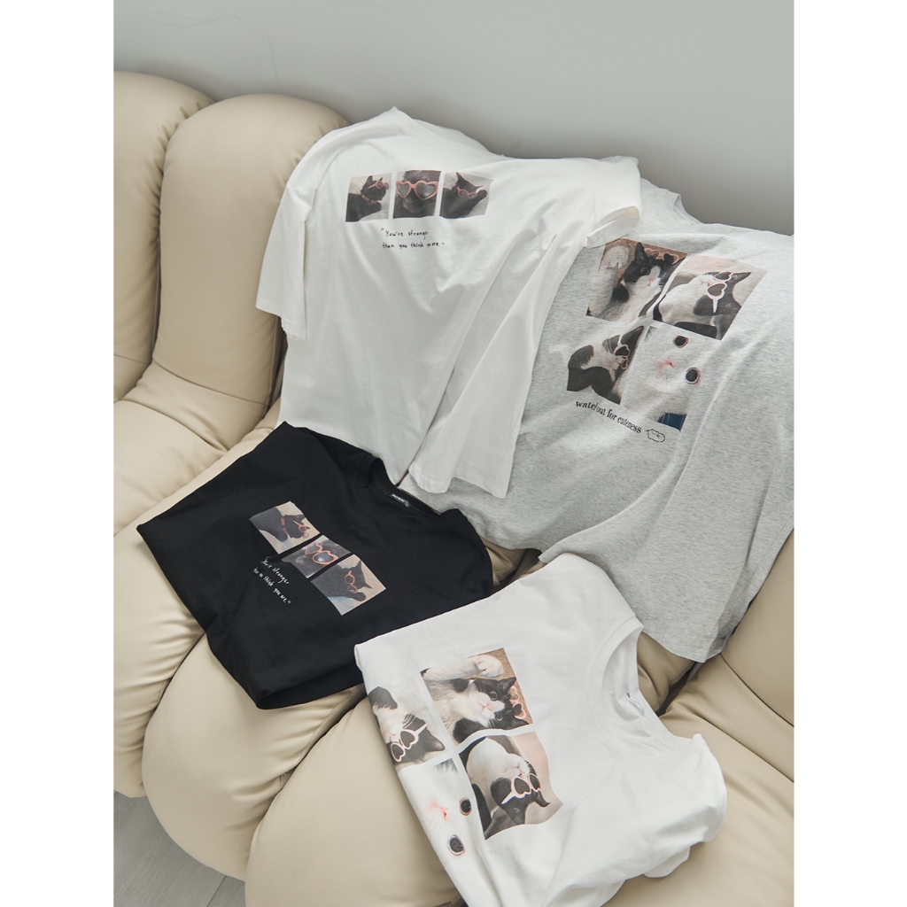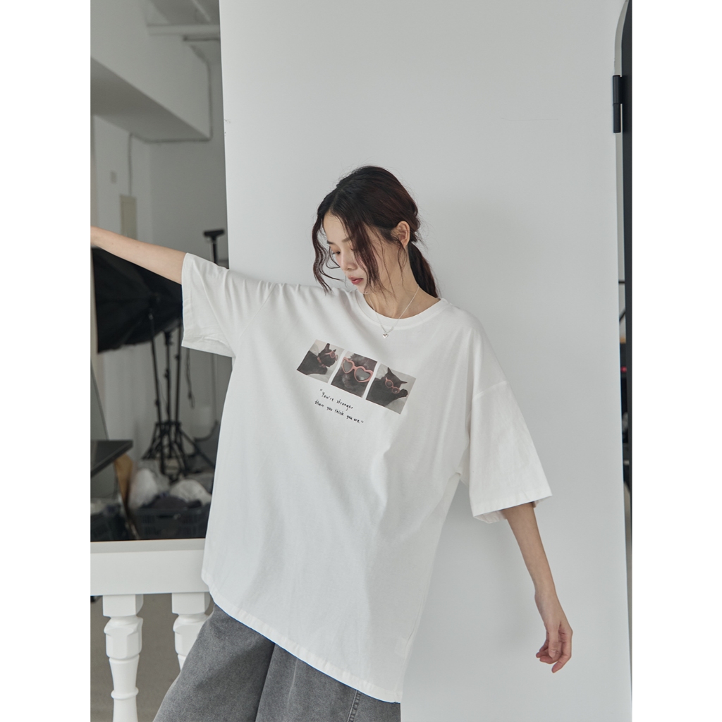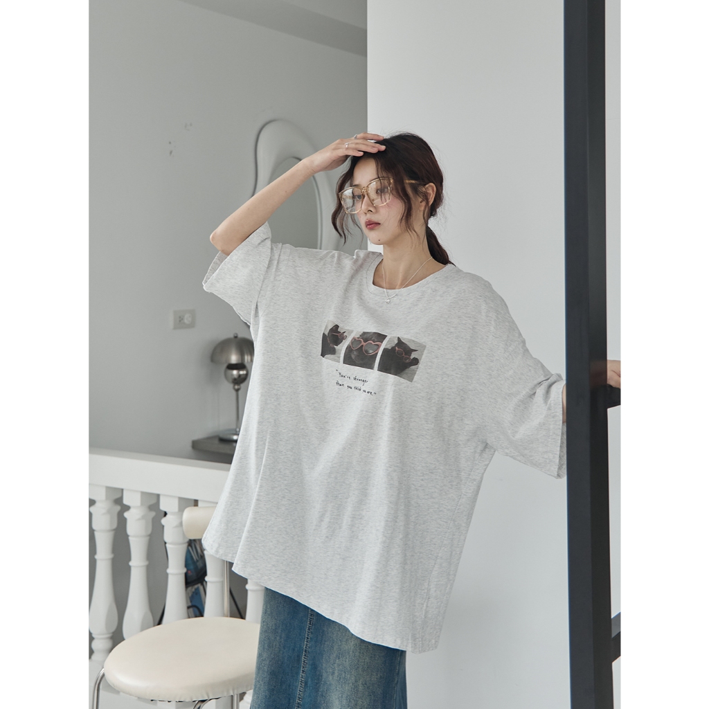 Space Picnic|愛心墨鏡貓咪印圖寬鬆Tee-3色【2506330】白|黑|淺灰T-shirtsSpace Picnic
