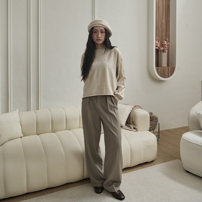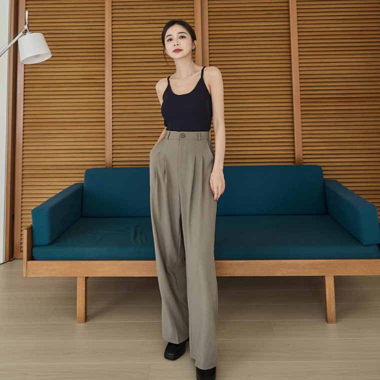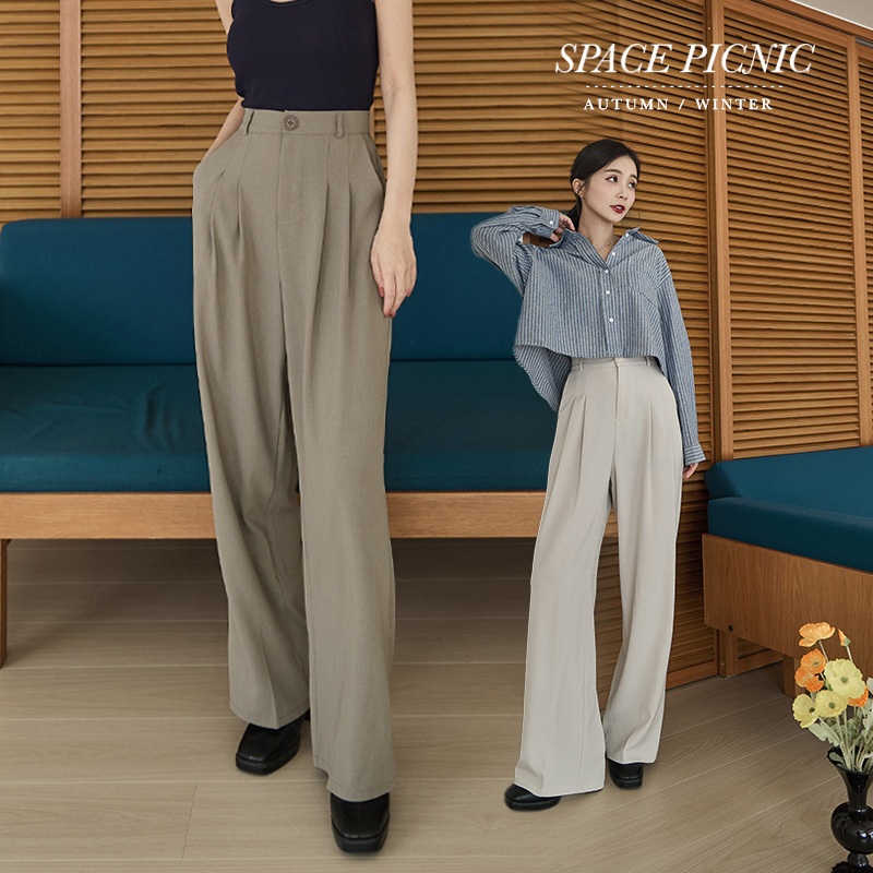 Space Picnic|後鬆緊西裝寬褲-5色【C24093063】黑|灰|咖啡|灰綠|灰杏PantsSpace Picnic