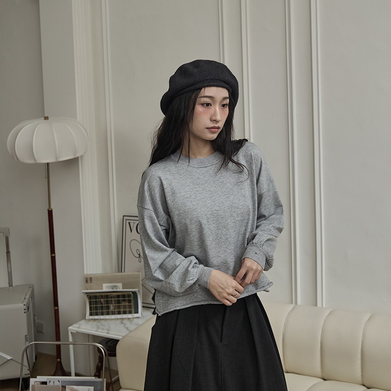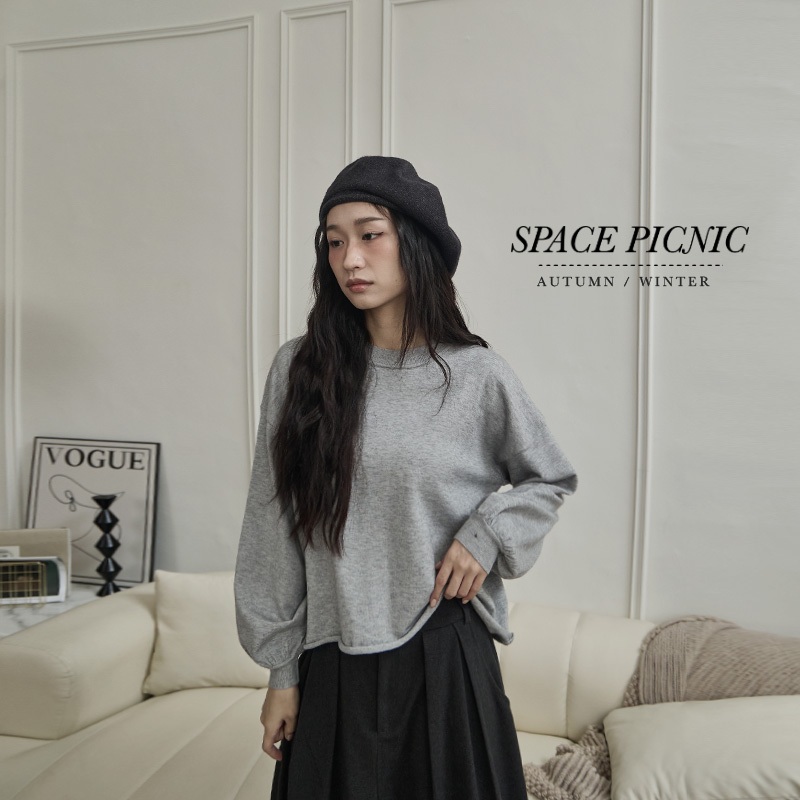Space Picnic|不收邊澎袖針織上衣-4色【C24093067】黑|花灰|米白|燕麥OthersSpace Picnic