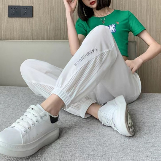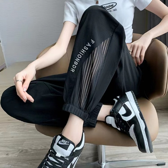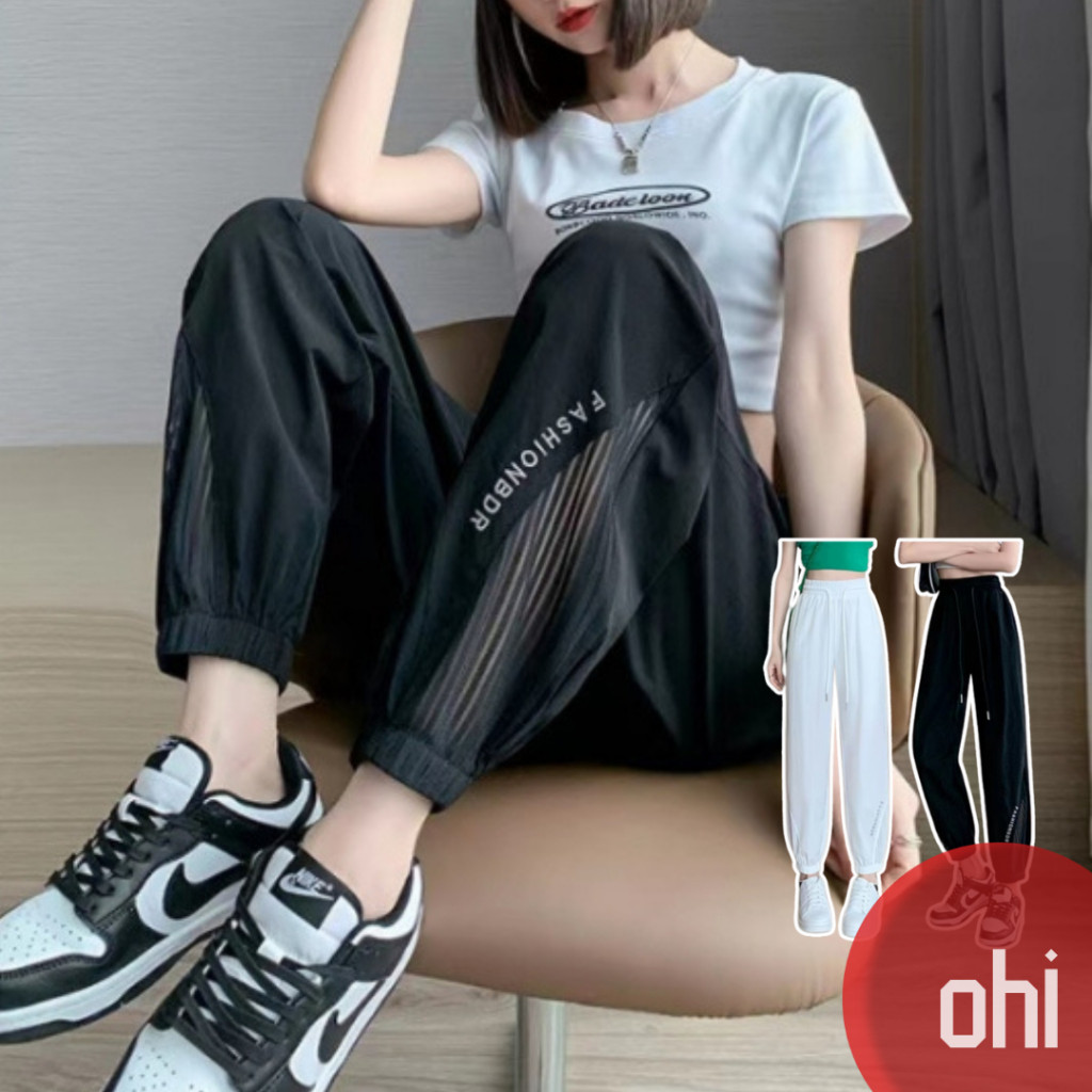 【ohi】冰絲速乾運動褲 新款韓版韓系女裝 褲子 夏季薄款防曬褲 網紗拼接 九分束腳哈倫褲 女裝 GPN9353黑色,M|黑色,L|黑色,XL|黑色,2XL|黑色,3XL|黑色,4XL|白色(有內裡),M|白色(有內裡),L|白色(有內裡),XL|白色(有內裡),2XL|白色(有內裡),3XL|白色(有內裡),4XLPantsOHI衣著