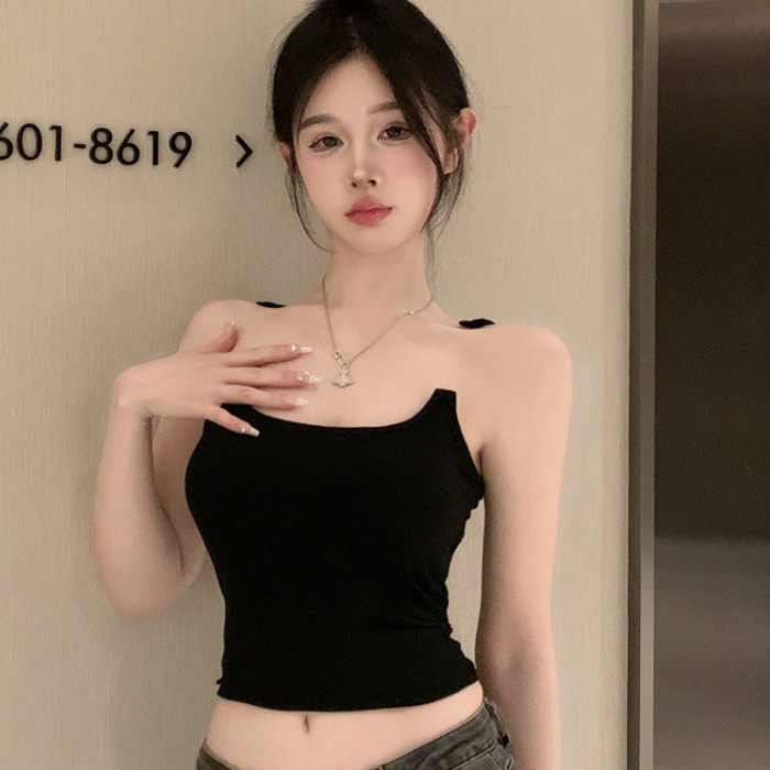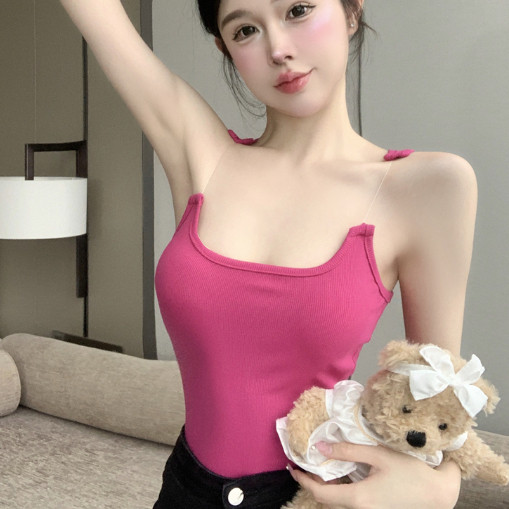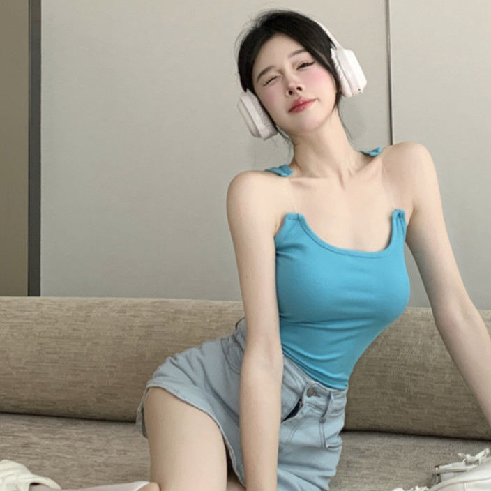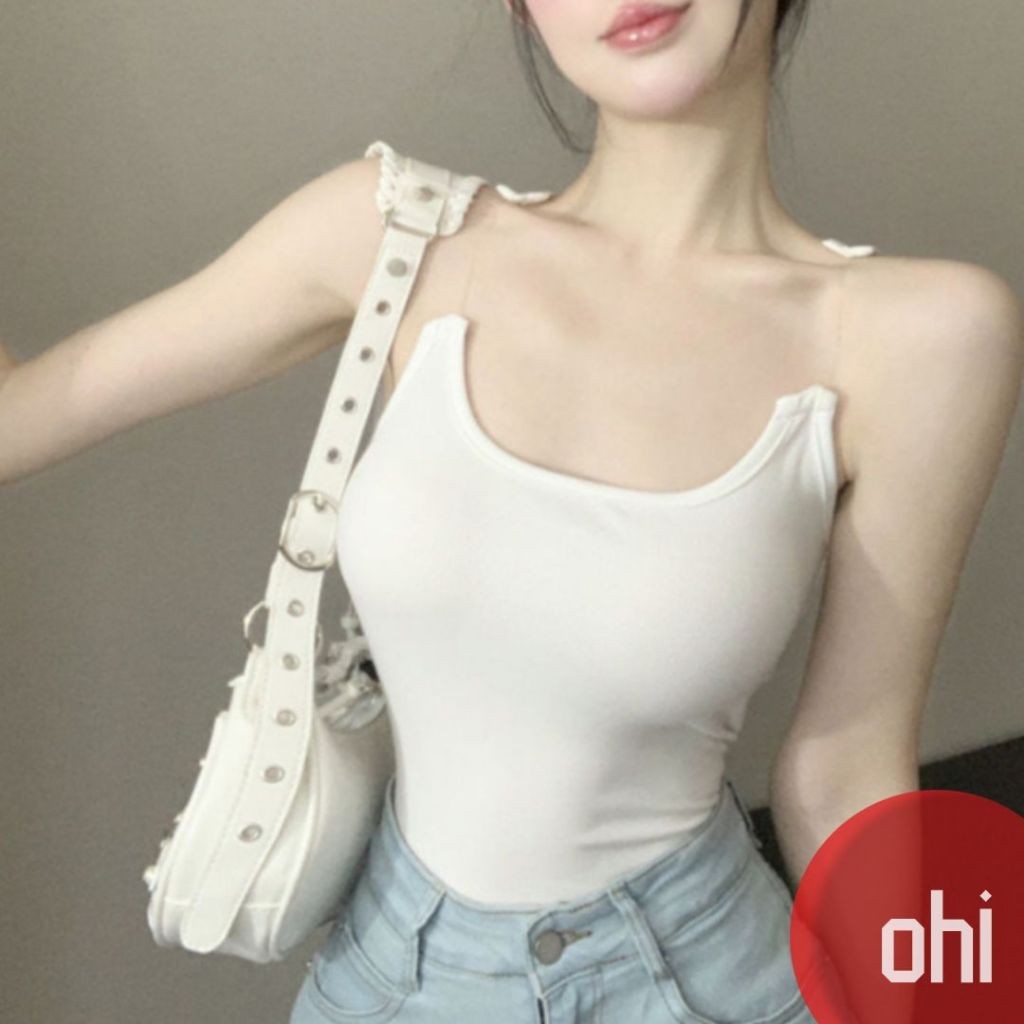 【ohi】隱形魚線肩帶性感外穿帶胸墊背心吊帶小可愛 女背心短款背心 內搭衣 無袖背心女 吊帶背心GVD3285白色|黑色|火龍果色|藍色Tanks & CamisolesOHI衣著