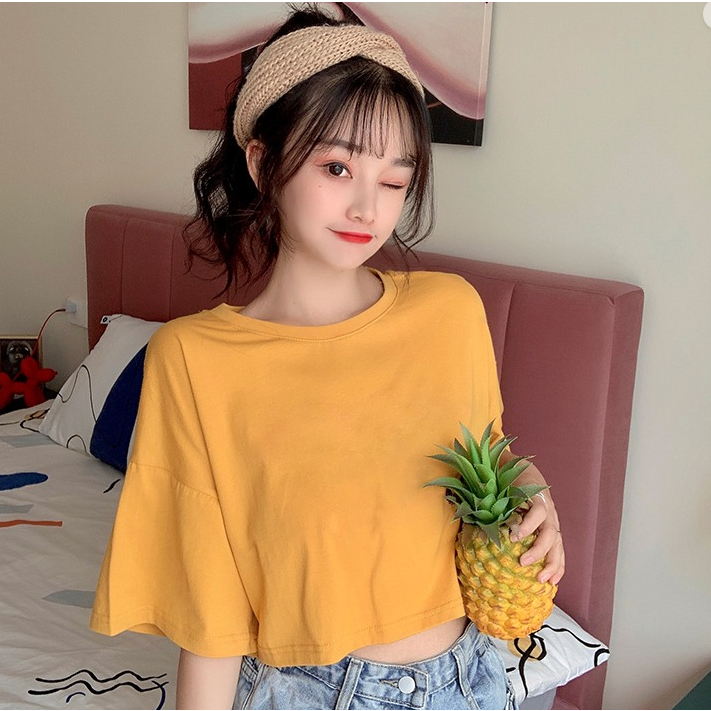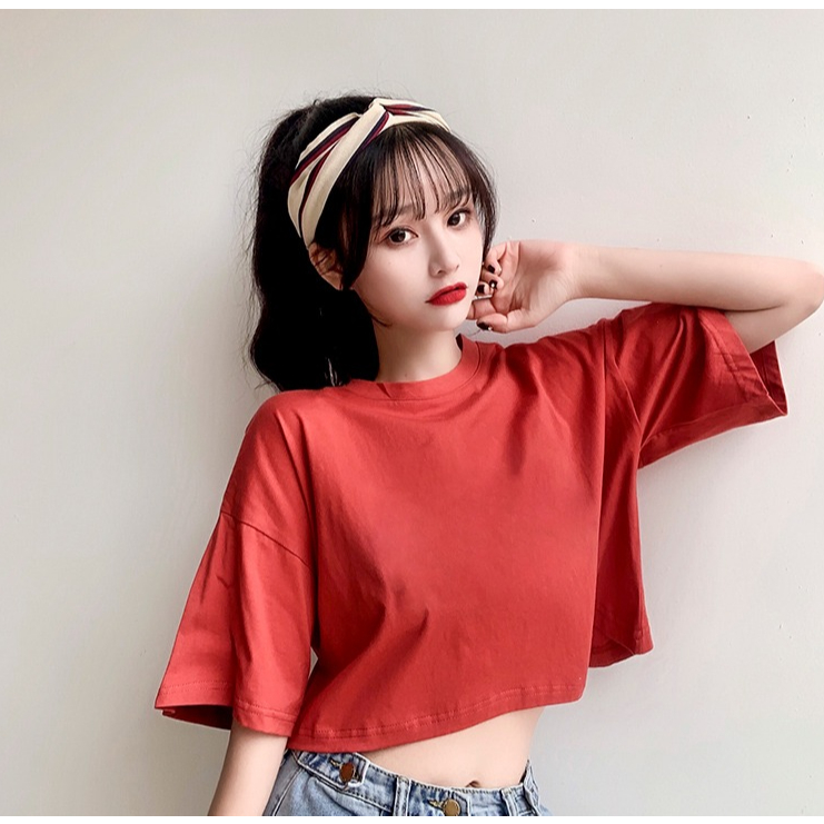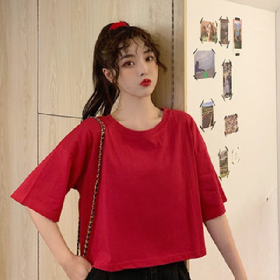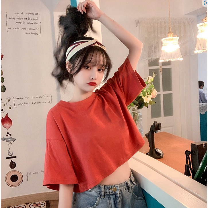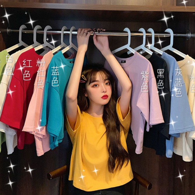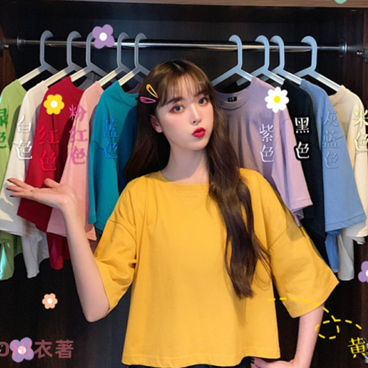 【ohi】『熱銷中』韓版高腰落肩短版上衣純色t恤 素t T恤 閨蜜裝 班服 情侶裝 上衣短T韓版基本款 GTM608白色|磚紅|粉色|黃色|黑色|紅色T-shirtsOHI衣著
