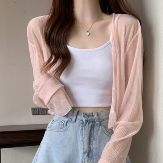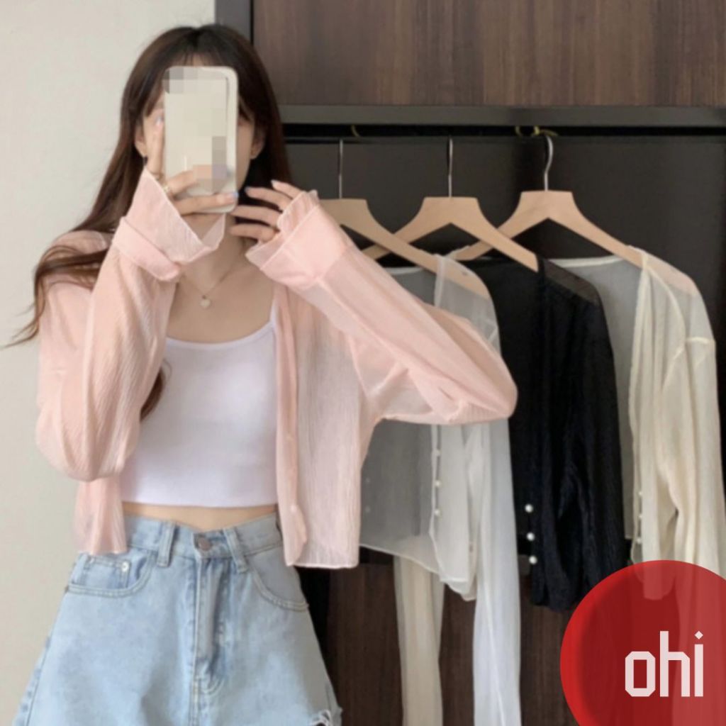 【ohi】韓版冰絲針織防曬外套 上衣 女裝 衣服 外套 長袖上衣 薄外套 罩衫GWD3623白色|黑色|杏色|粉色OthersOHI衣著