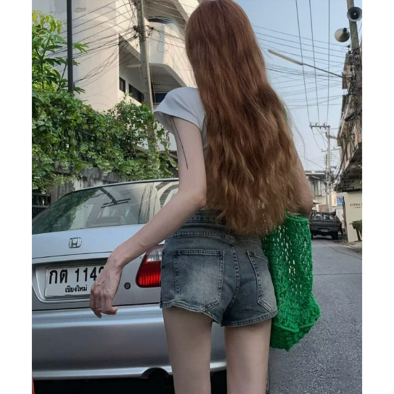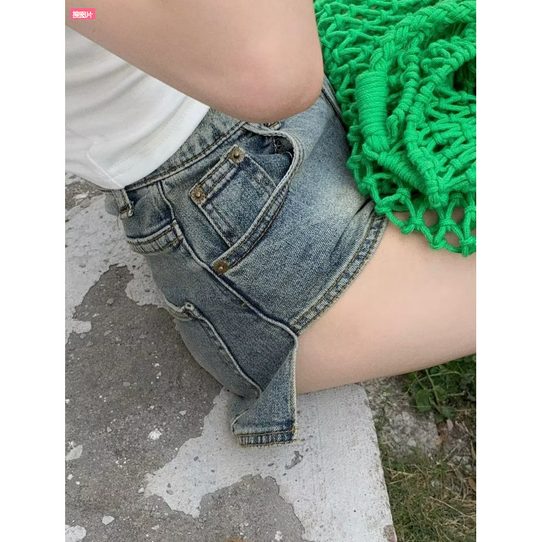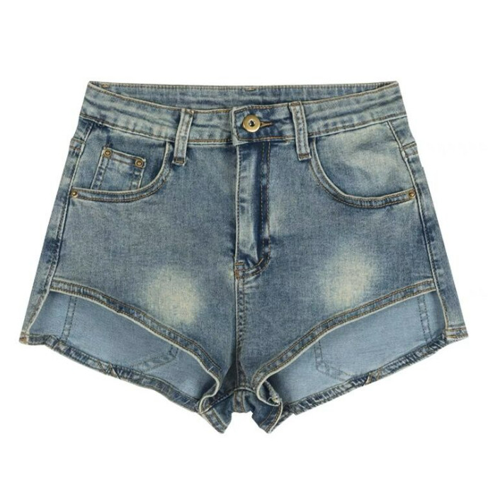 【ohi】牛仔短褲 中腰短褲 短褲 褲子 前短後長 牛仔短褲 顯瘦寬鬆 a字闊腿熱褲子(XGJL156)藍色,L|藍色,XL|藍色,2XL|藍色,S|藍色,MShortsOHI衣著