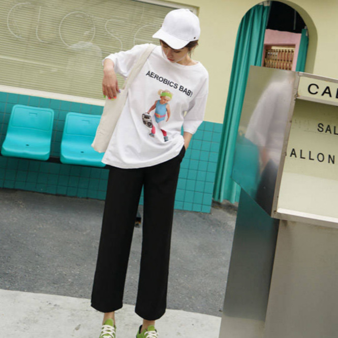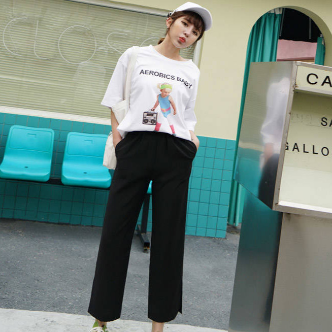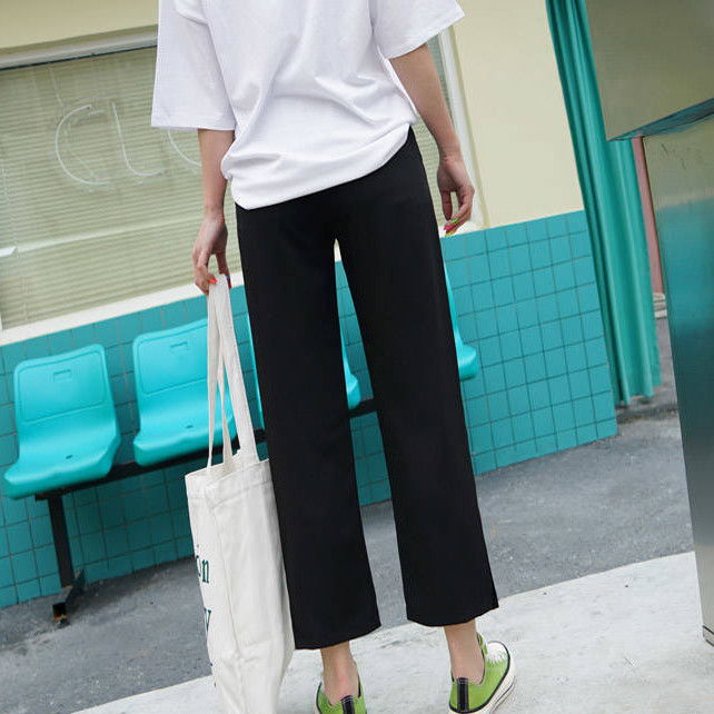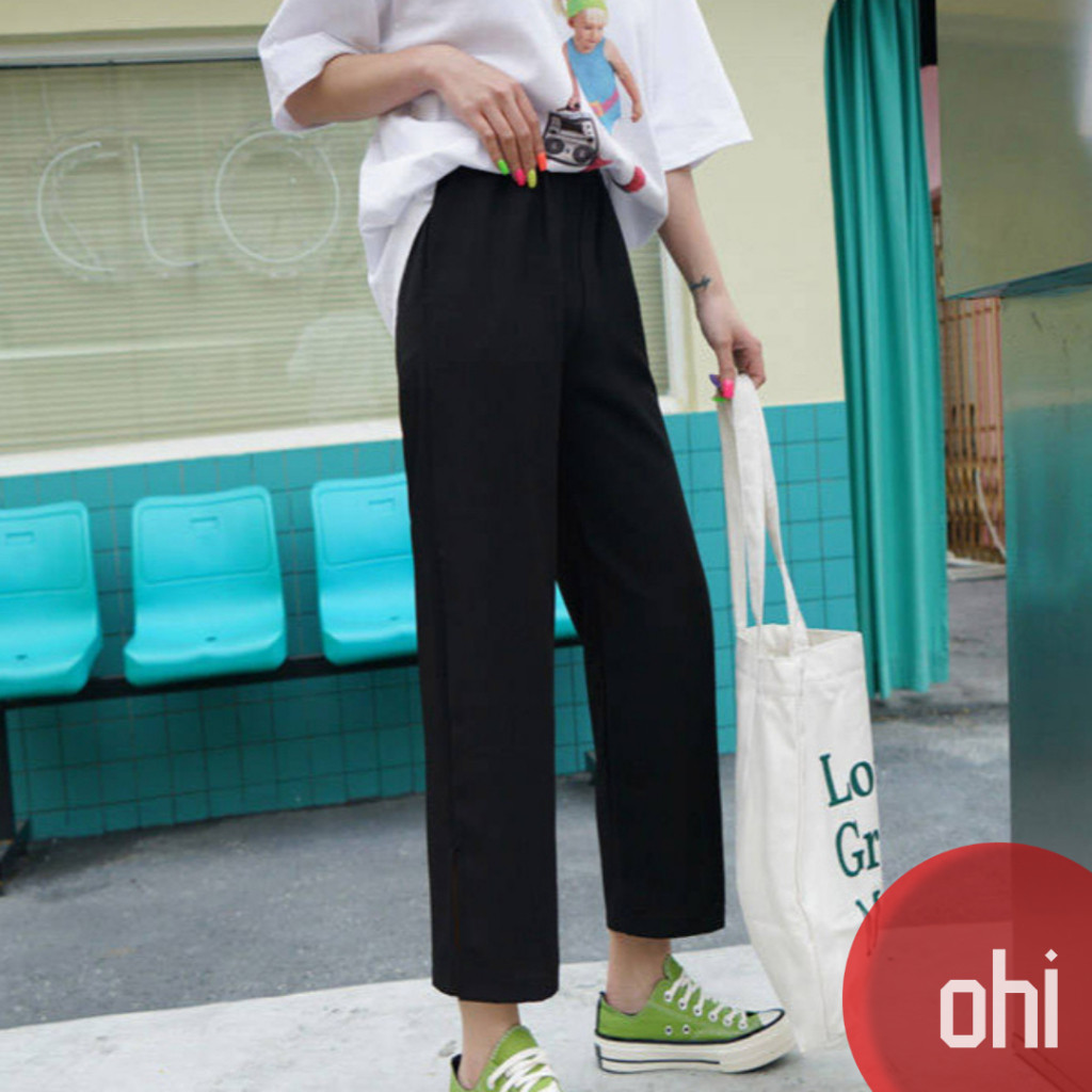 【ohi】長褲 黑色長褲 女生長褲 休閒褲 黑色直筒褲子女學生韓版寬鬆顯瘦高腰百搭九分褲休閒褲闊腿褲GPSS0037黑色,S|黑色,M|黑色,L|黑色,XL|黑色,2XL|黑色,3XLPantsOHI衣著