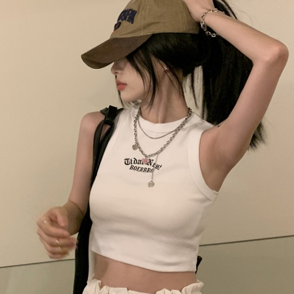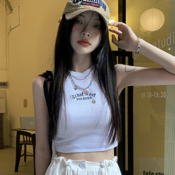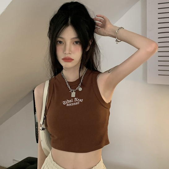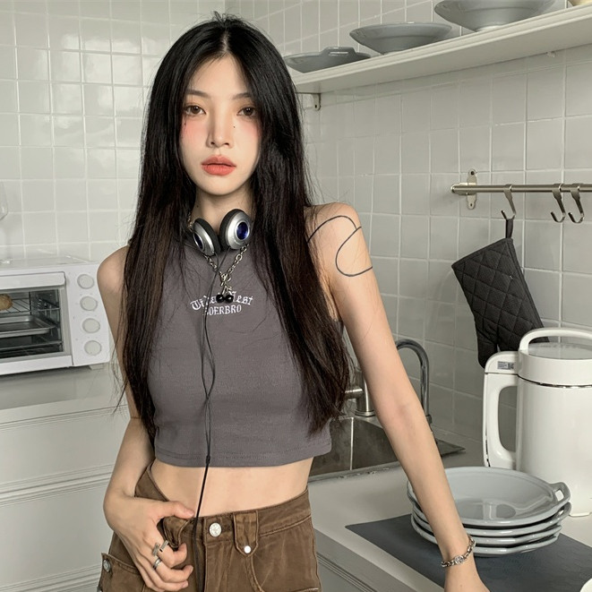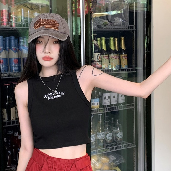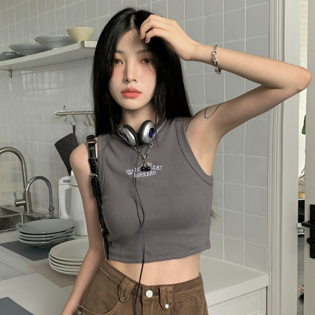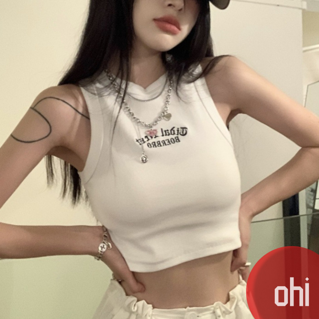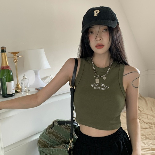 【ohi】字母刺繡工字背心歐美辣妹風無袖背心修身短款露肚臍上衣 短板上衣 運動背心小可愛 女裝 背心女GVM617白色|軍綠|淺灰|咖色|深灰|黑色Tanks & CamisolesOHI衣著