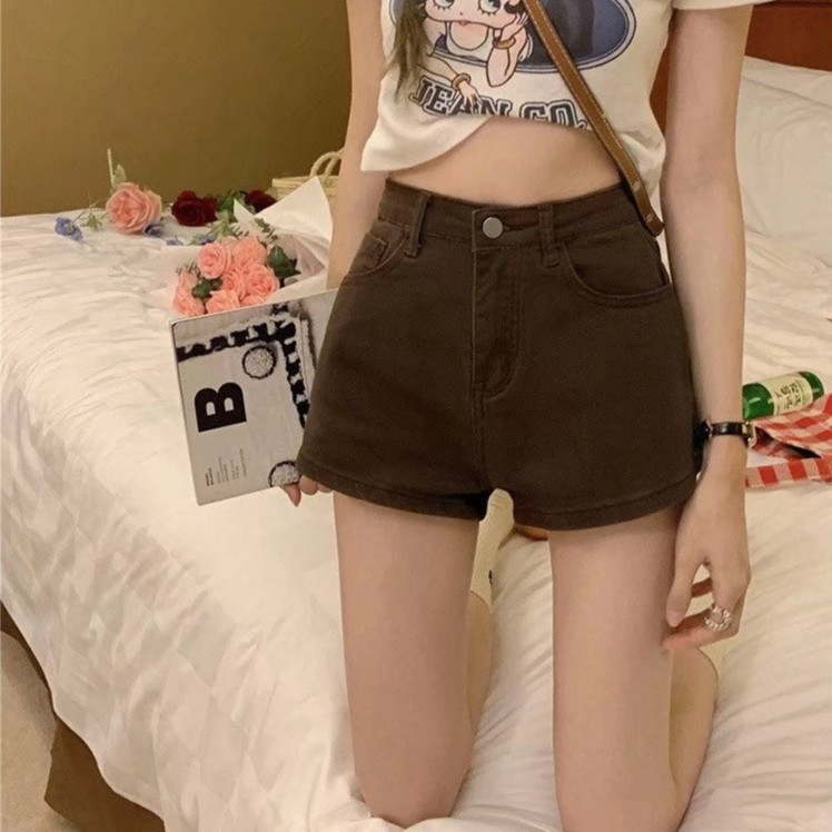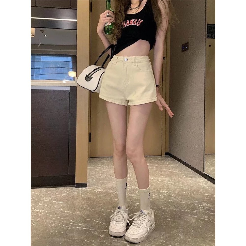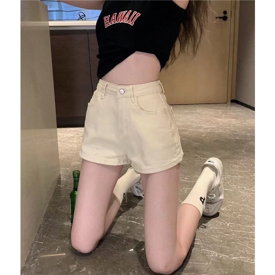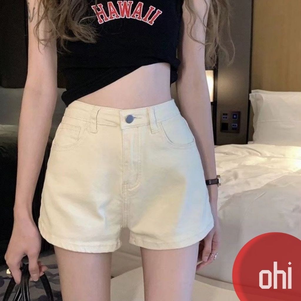 【ohi】彈力高腰牛仔短褲 女裝 高腰顯瘦 杏色 彈力牛仔褲 江南辣妹 韓版性感 短褲 XGJLA940杏色,S|杏色,M|杏色,L|杏色,XL|棕色,S|棕色,M|棕色,L|棕色,XLSkortsOHI衣著