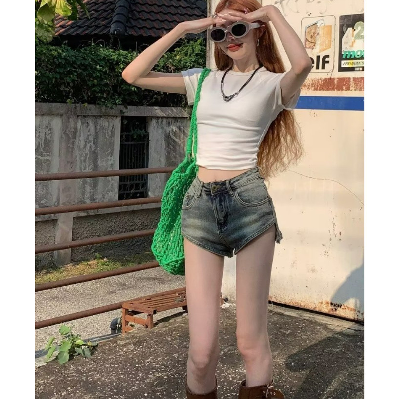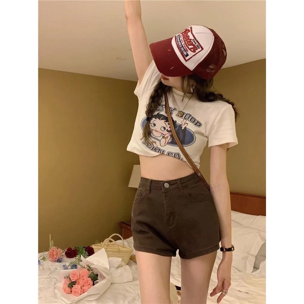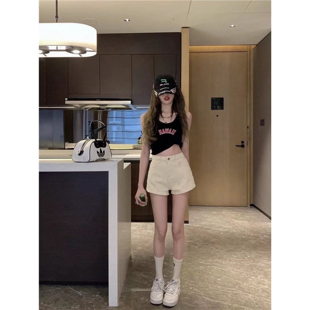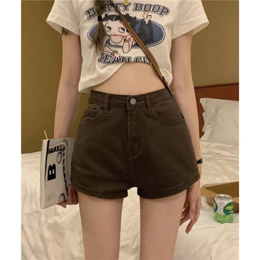 【ohi】彈力高腰牛仔短褲 女裝 高腰顯瘦 杏色 彈力牛仔褲 江南辣妹 韓版性感 短褲 XGJLA940杏色,S|杏色,M|杏色,L|杏色,XL|棕色,S|棕色,M|棕色,L|棕色,XLSkortsOHI衣著