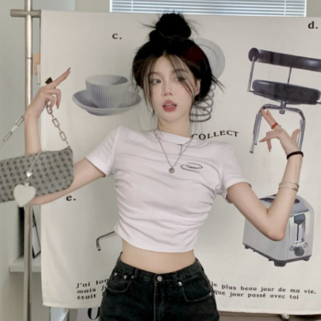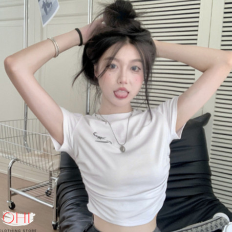 【ohi】字母短版上衣女生T恤辣妹上衣歐美上衣短袖上衣露臍上衣短板上衣短版 t恤GTM8275白色,XL|白色,S|白色,M|白色,LT-shirtsOHI衣著