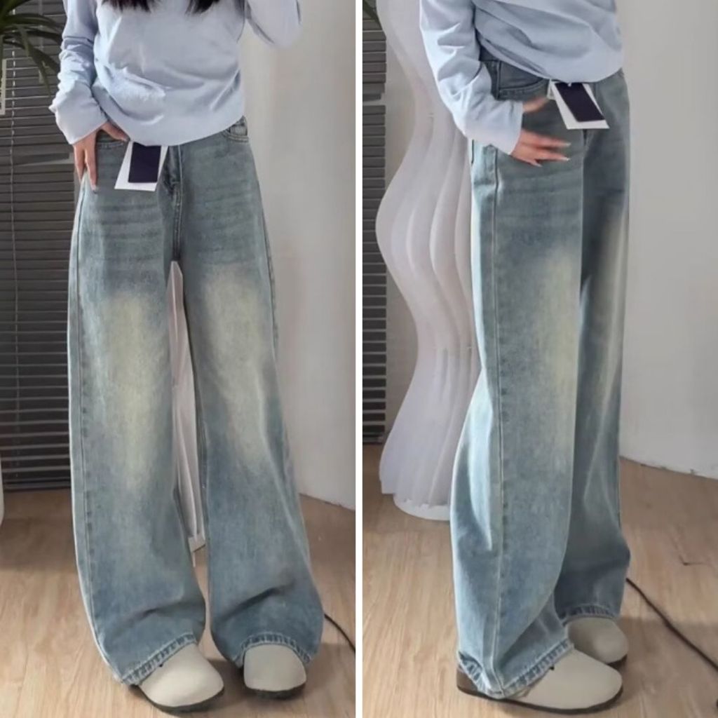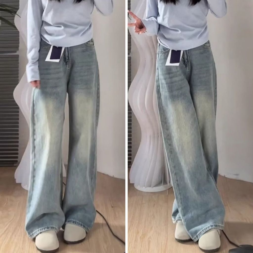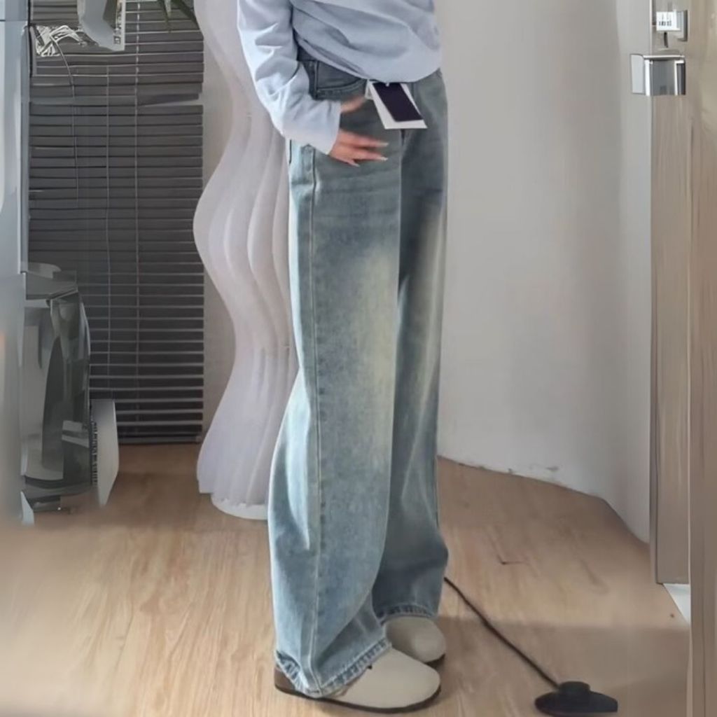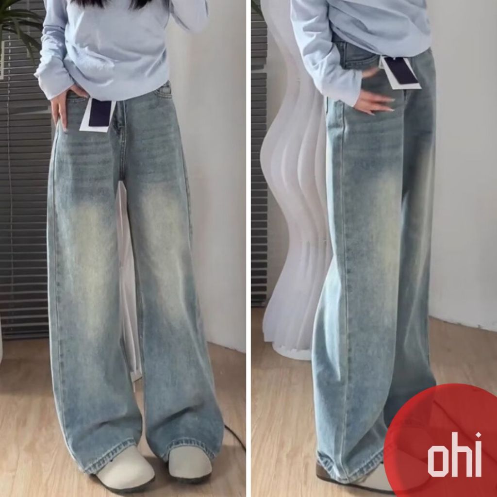 【ohi】美式復古高腰直筒牛仔褲 顯瘦垂感牛仔長褲 長褲女 女生褲子 休閒長褲 大碼女裝 XGJYN73