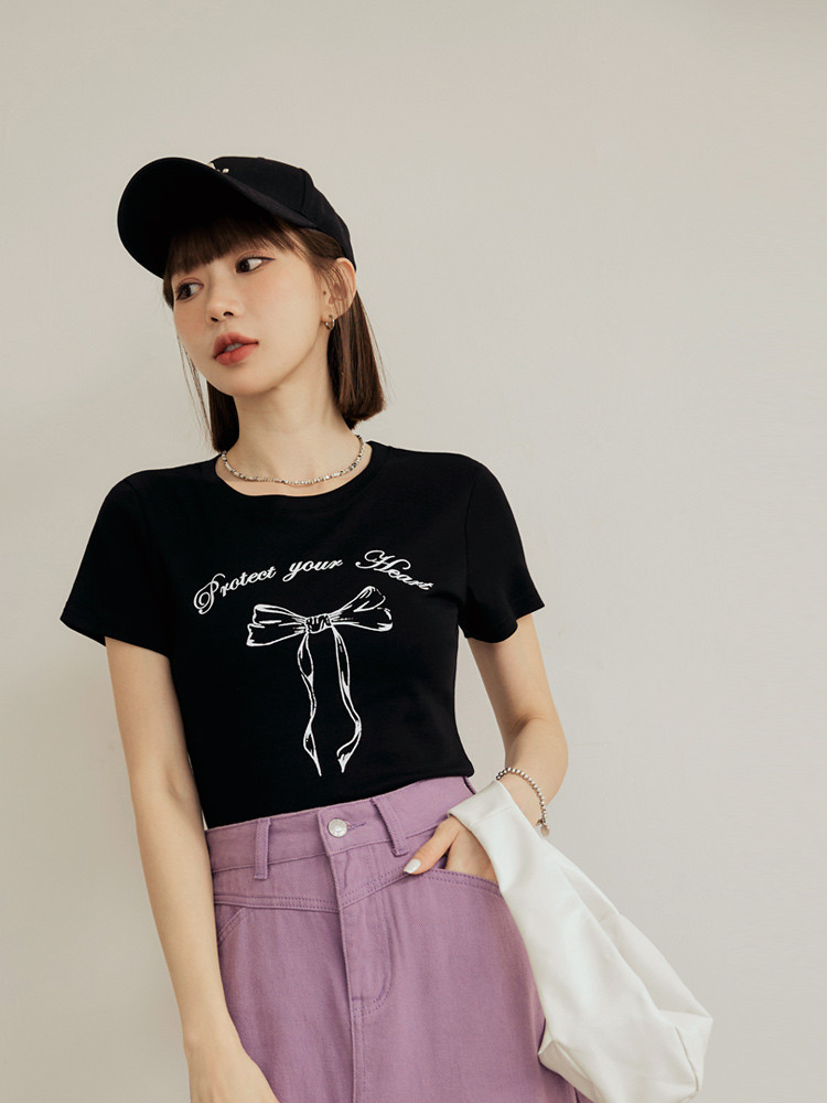 OB嚴選 親膚棉質芭蕾風蝴蝶結印花上衣 《AB19646》黑,S|黑,M|黑,L|黑,XL|黑,2L|黑,3L|淺灰,S|淺灰,M|淺灰,L|淺灰,XL|淺灰,2L|淺灰,3L|白,S|白,M|白,L|白,XL|白,2L|白,3LT-shirtsOB嚴選官方旗艦店