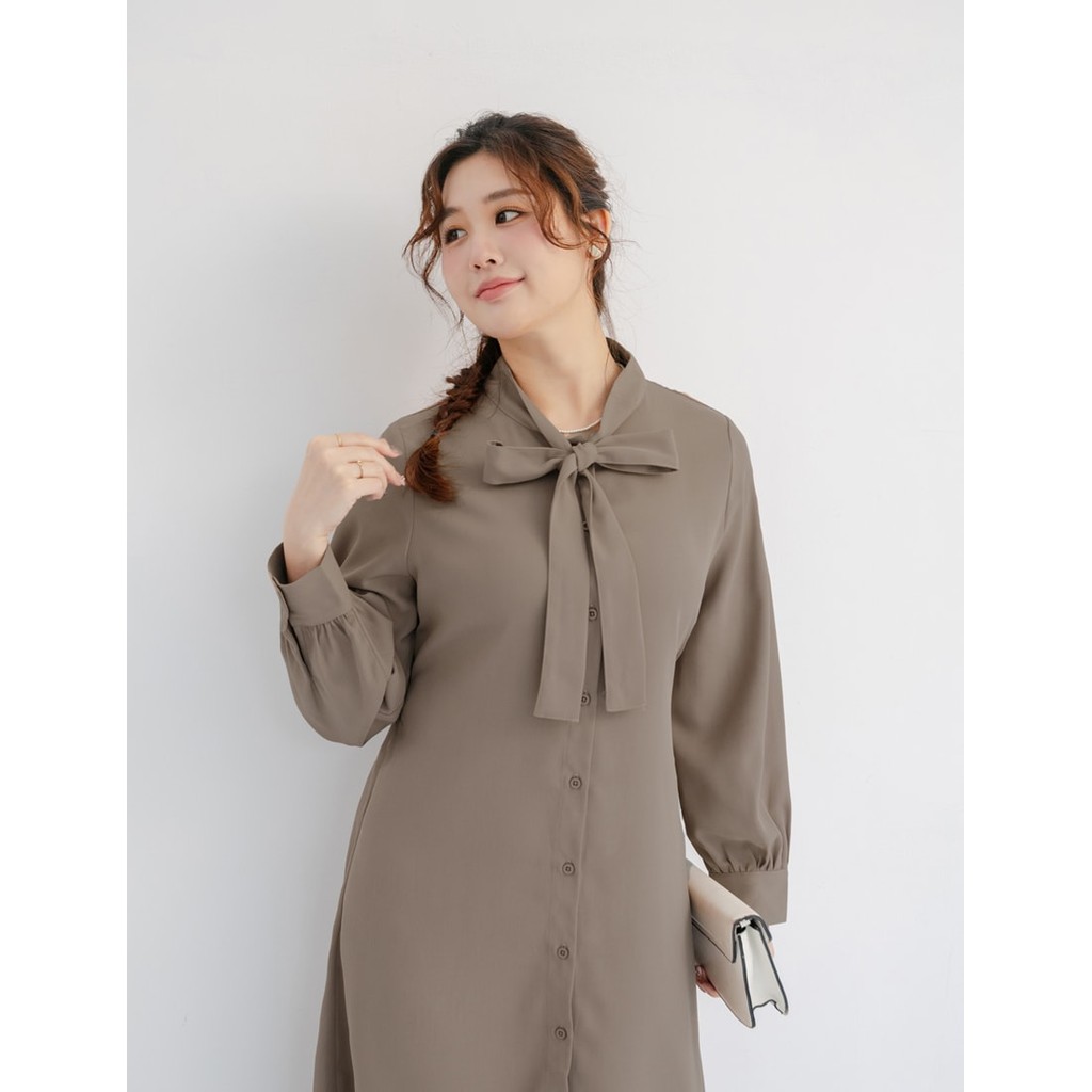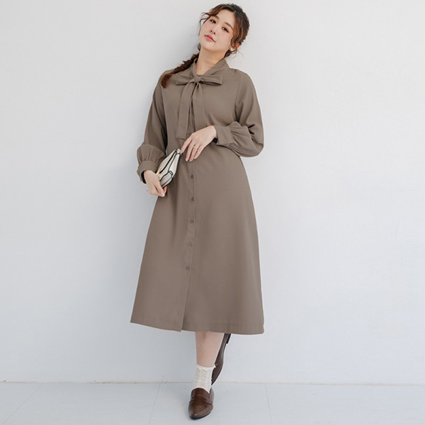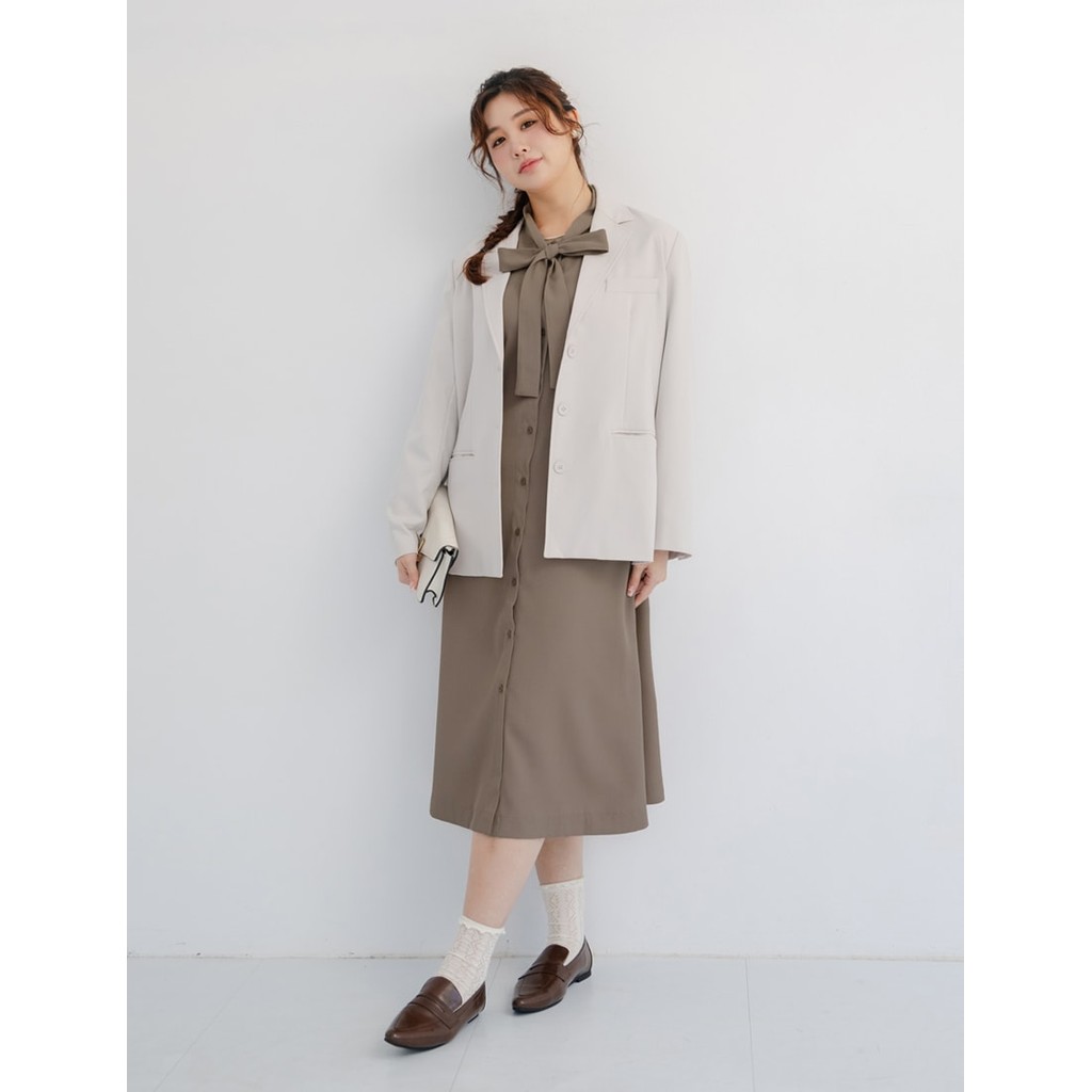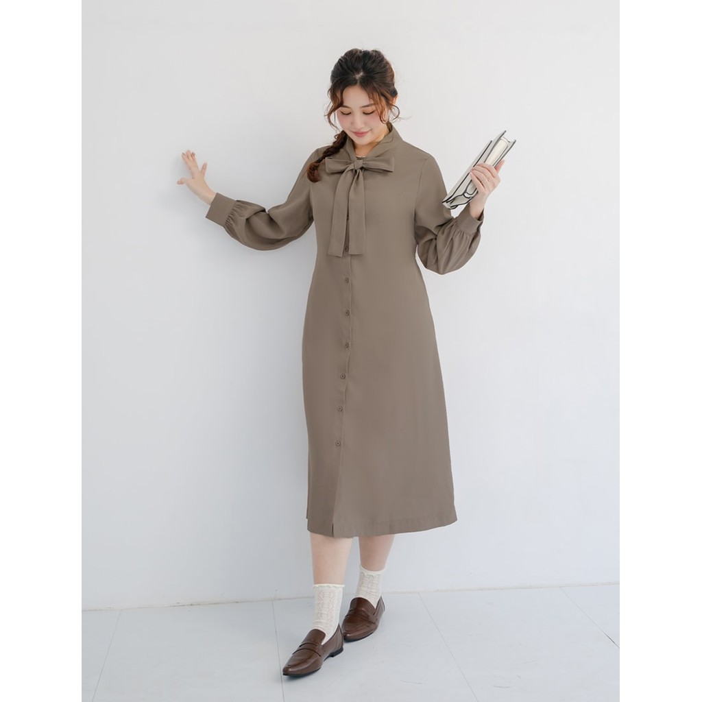 【PolyLulu】 MISS.秋冬氣質典雅排釦綁帶澎袖洋裝 中大尺碼洋裝 奶茶色3XL|L|XL|2XLPOLY LULU丨BEAUTY HAS NO SIZE 中大尺碼女裝