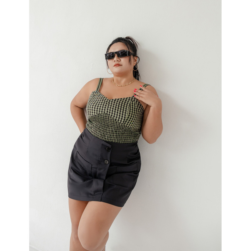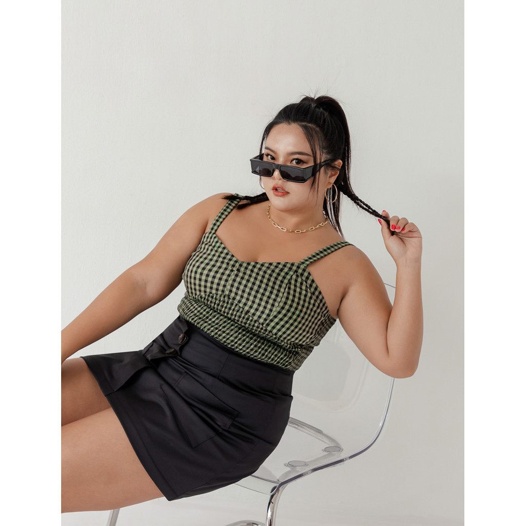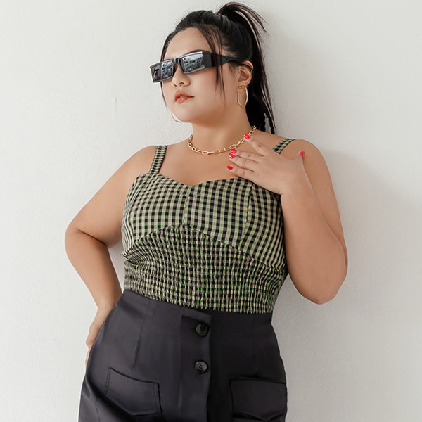 【PolyLulu】 MUA!歐美馬甲式棋盤格鬆緊背心 中大尺碼上衣 綠色L|XL|2XL|3XLTanks & CamisolesPOLY LULU丨BEAUTY HAS NO SIZE 中大尺碼女裝