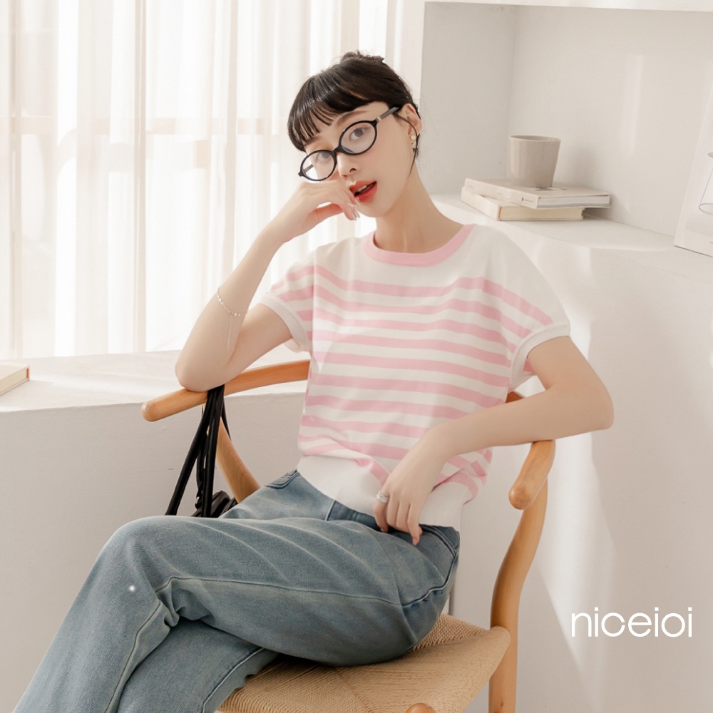 niceioi【特惠】針織上衣 條紋短袖 撞色t恤 針織上衣 粉色 休閒撞色條紋針織上衣 女裝針織短袖上衣 藍色,XL|針織短袖上衣 粉色,S|針織短袖上衣 粉色,M|針織短袖上衣 粉色,L|針織短袖上衣 粉色,XL|針織短袖上衣 藍色,S|針織短袖上衣 藍色,M|針織短袖上衣 藍色,LT-shirtsniceioi 官方旗艦店