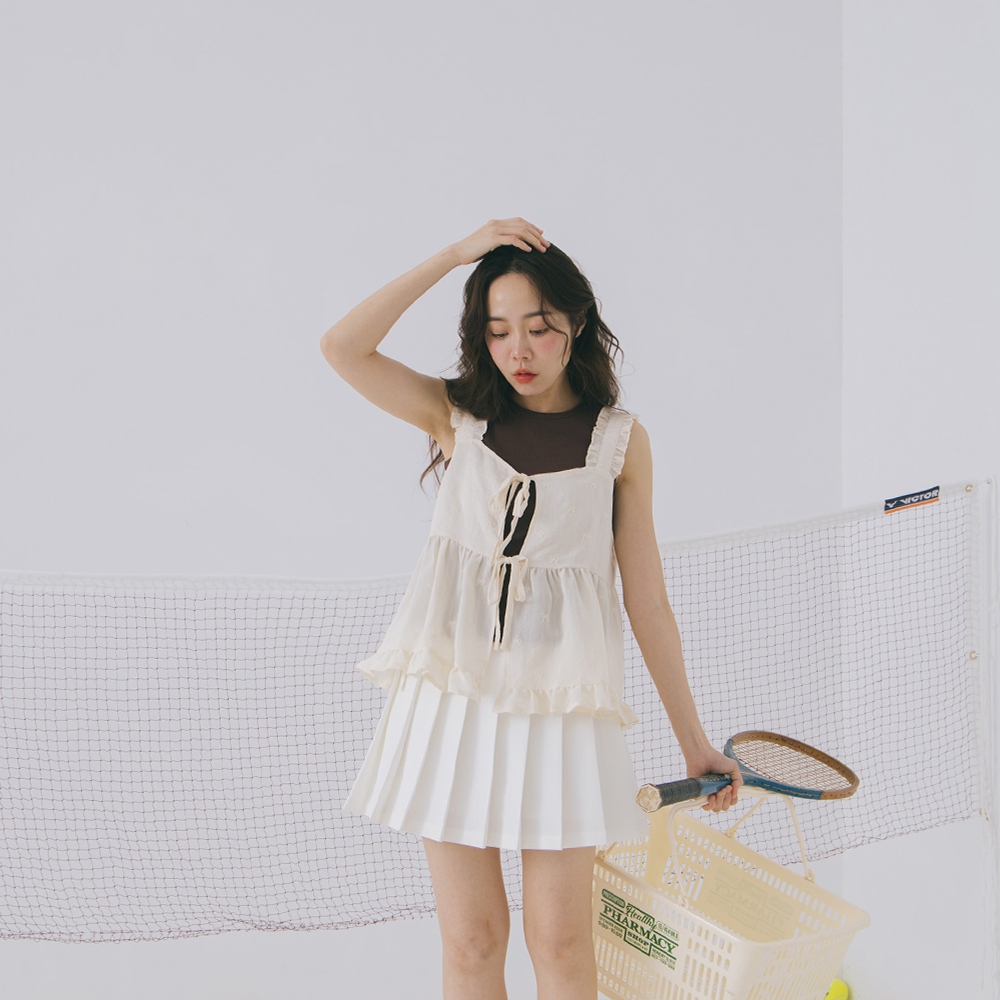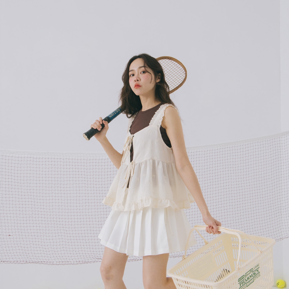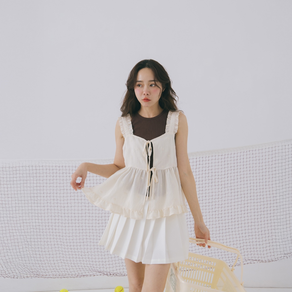 QUEENSHOP_ S 女裝 蝴蝶結緹花荷葉邊綁帶背心罩衫 現+預 【01099046】依賣場OthersQUEENSHOP