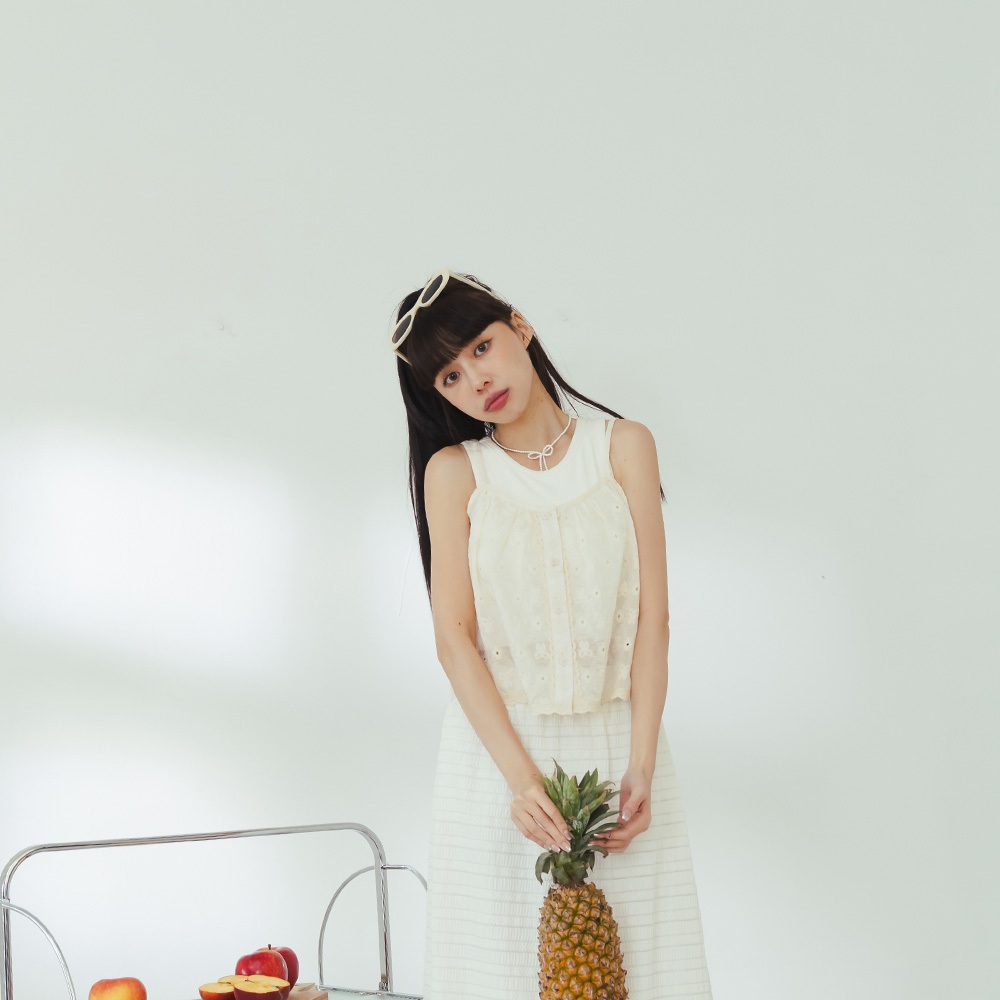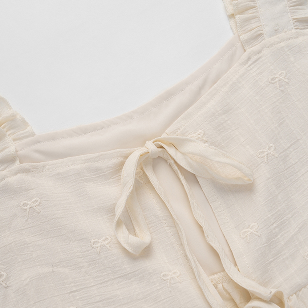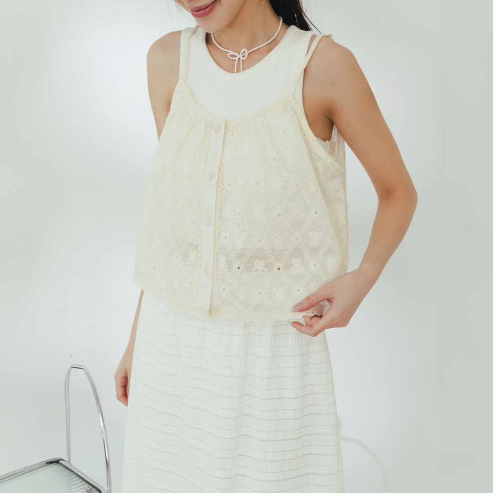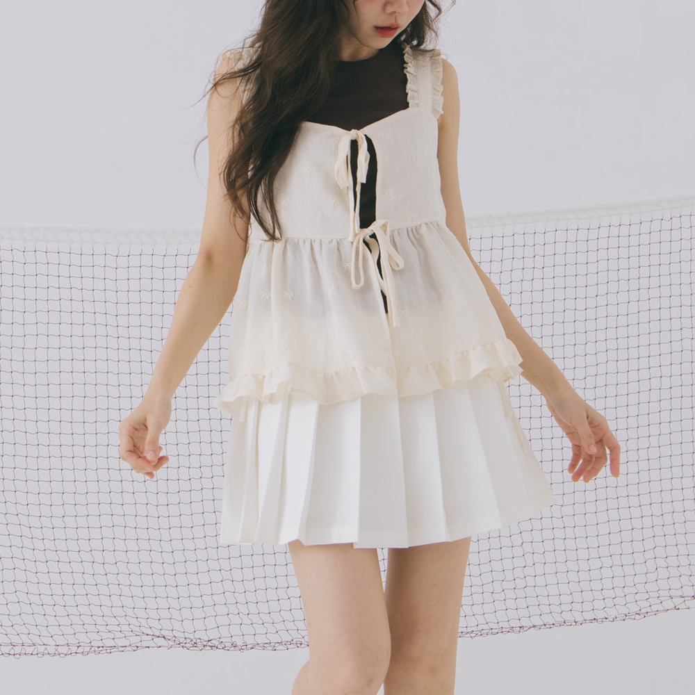QUEENSHOP_ S 女裝 蝴蝶結緹花荷葉邊綁帶背心罩衫 現+預 【01099046】依賣場OthersQUEENSHOP