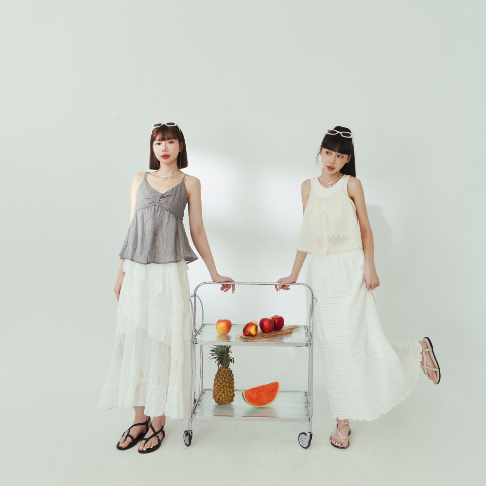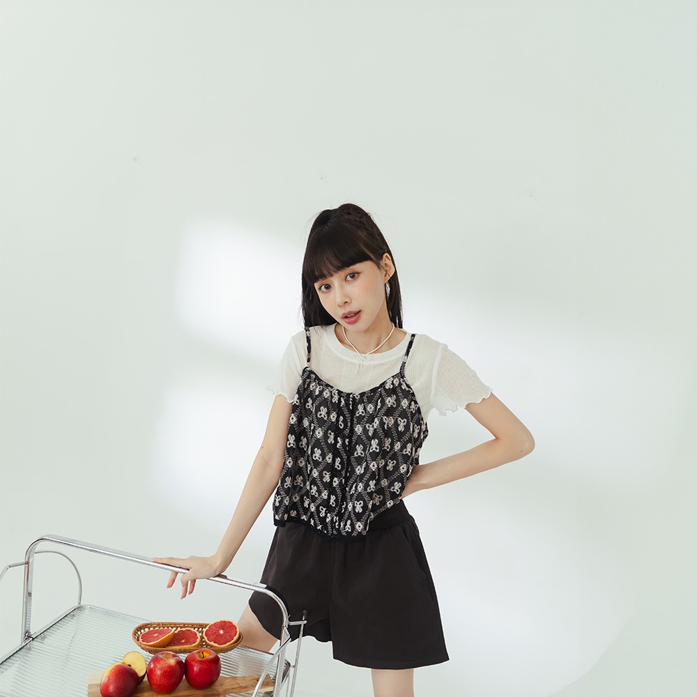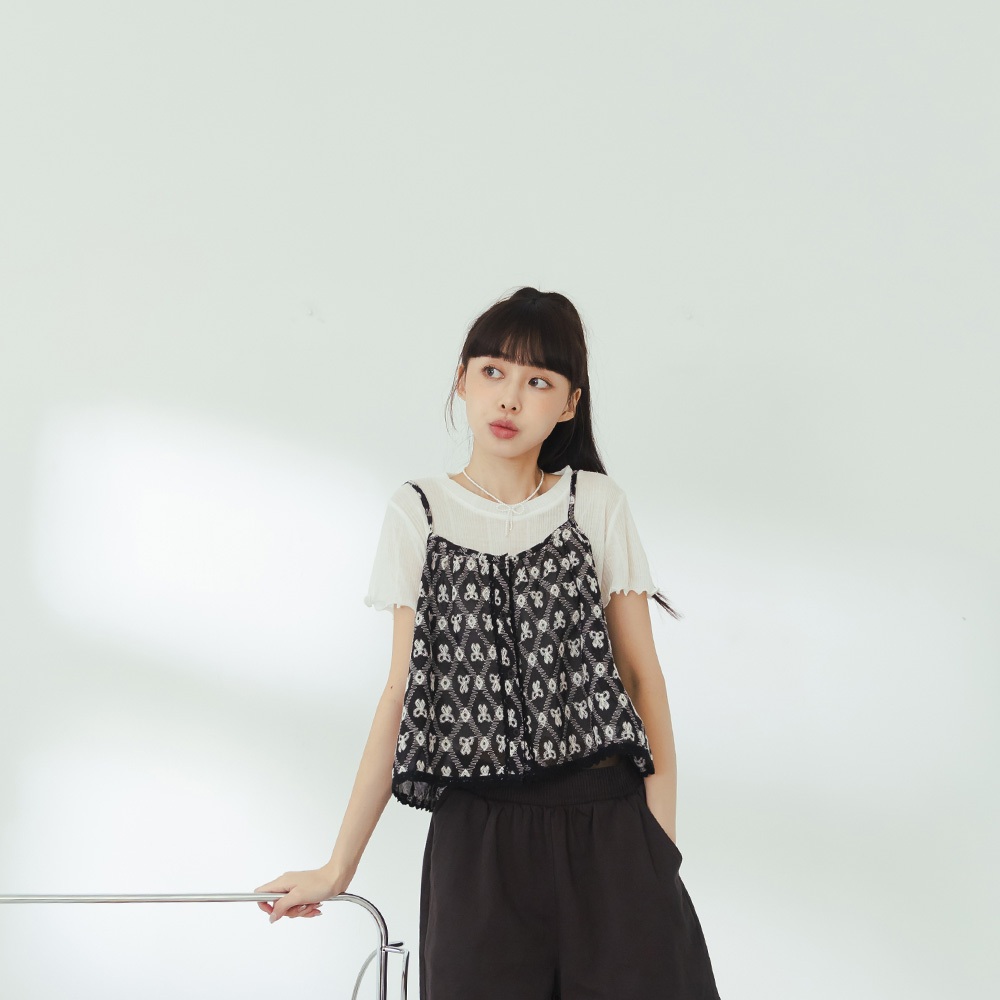 QUEENSHOP_ S 女裝 蝴蝶結菱格刺繡細肩背心 兩色售 現+預 【01099045】黑|杏Tanks & CamisolesQUEENSHOP