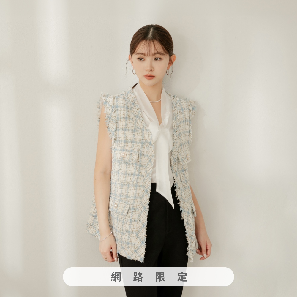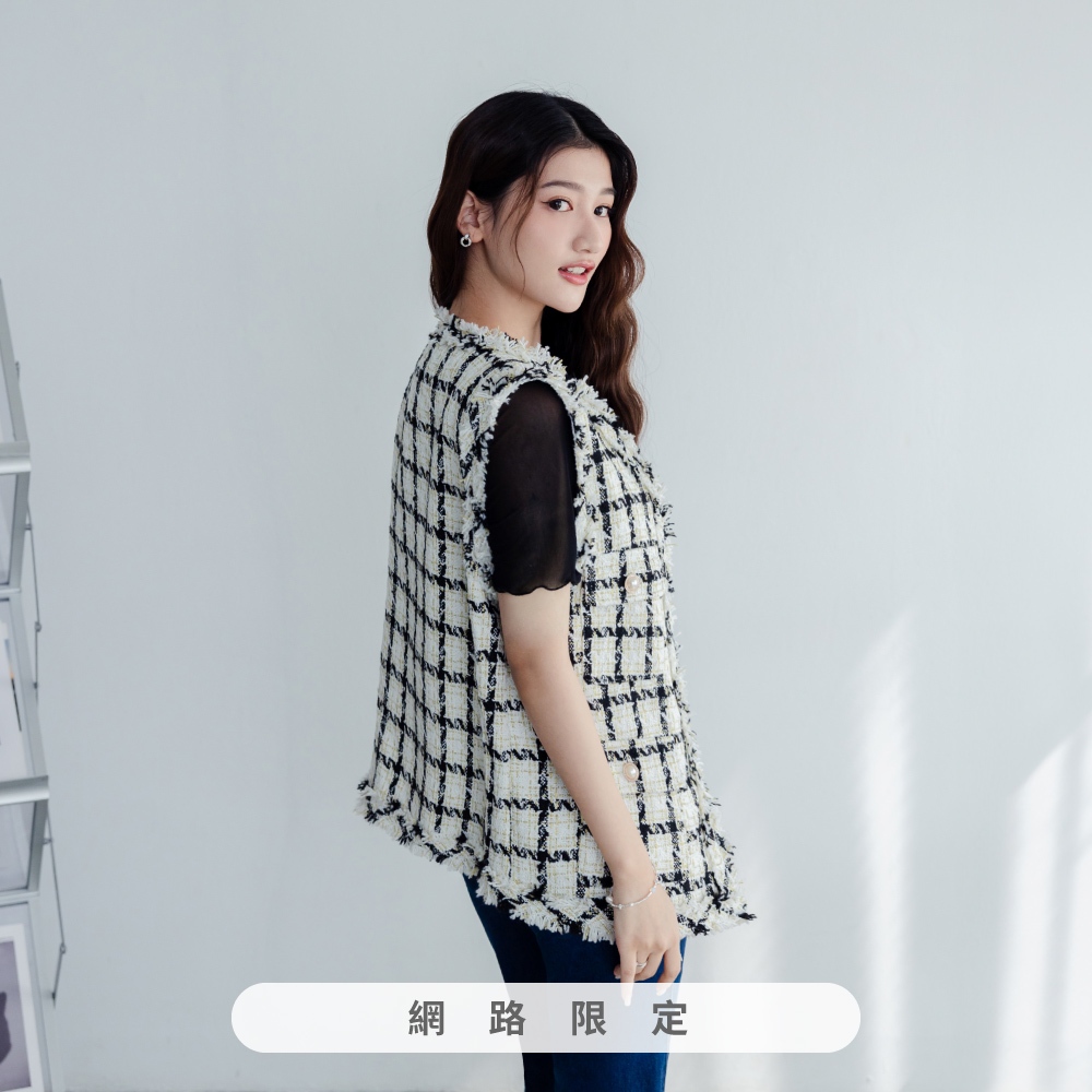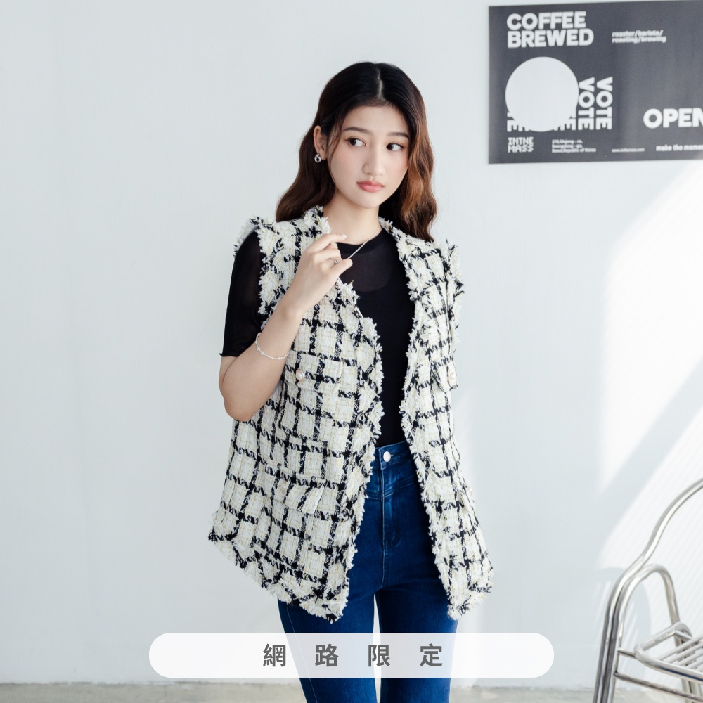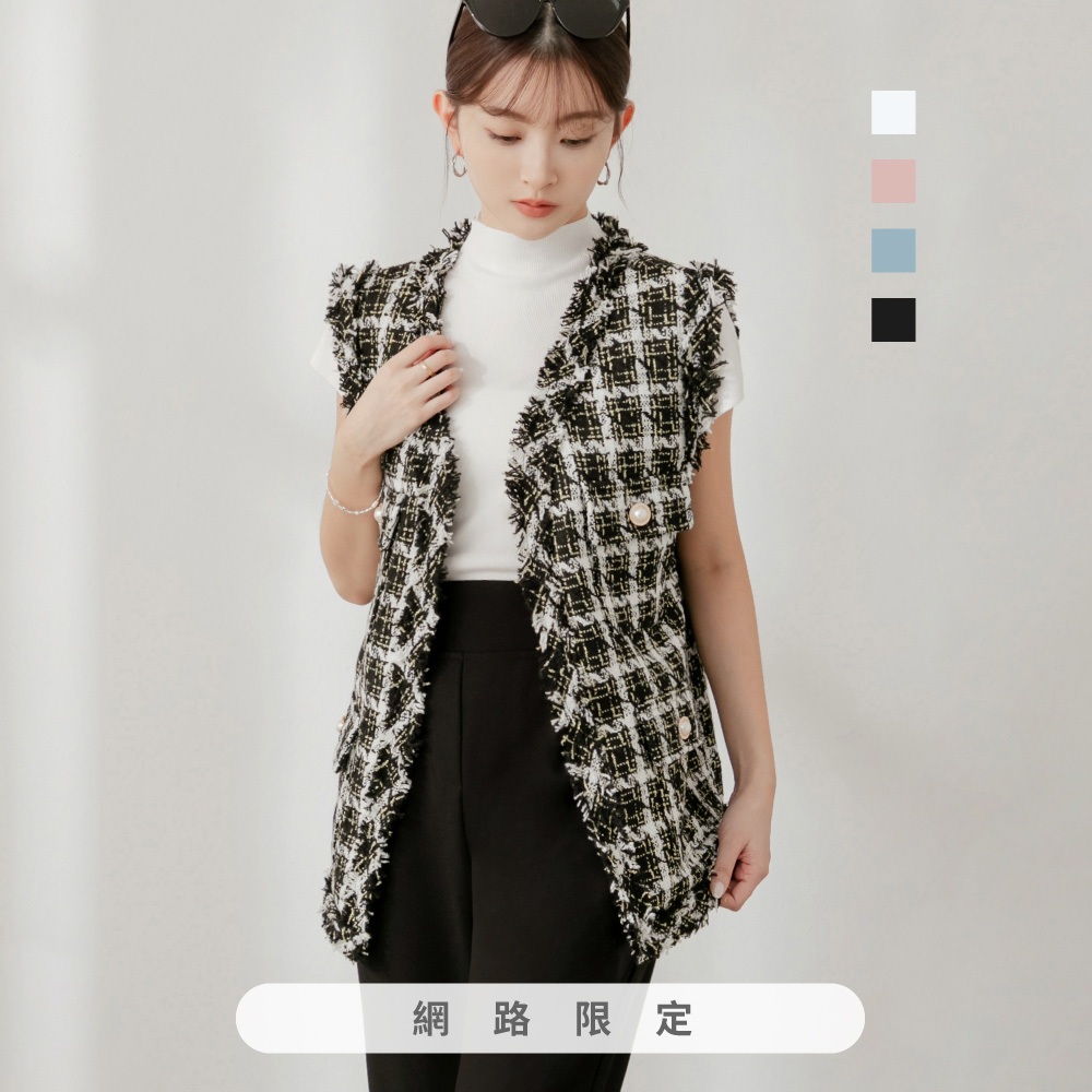 niceioi【特惠】小香風背心 長版 格紋背心 黑色 [千金小香長版格紋金蔥背心] 女裝黑,F|粉,F|藍,F|白,FBlazersniceioi 官方旗艦店