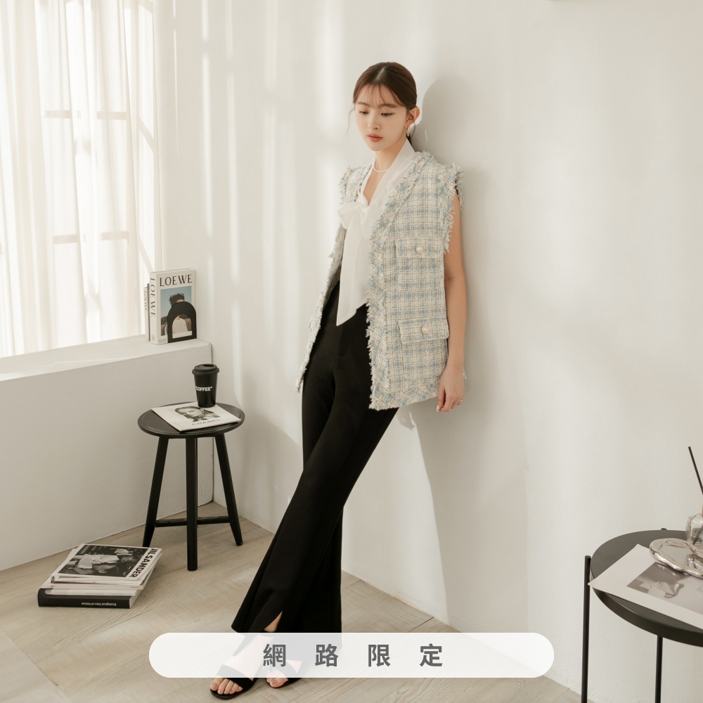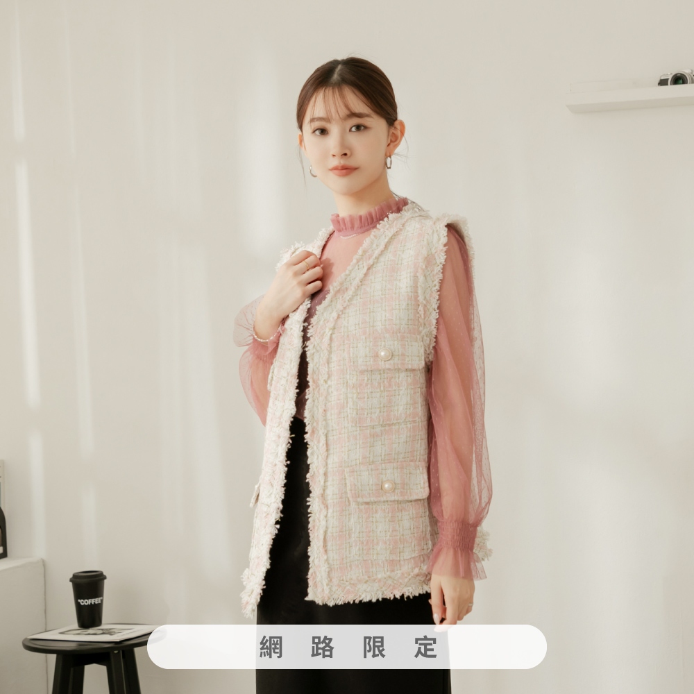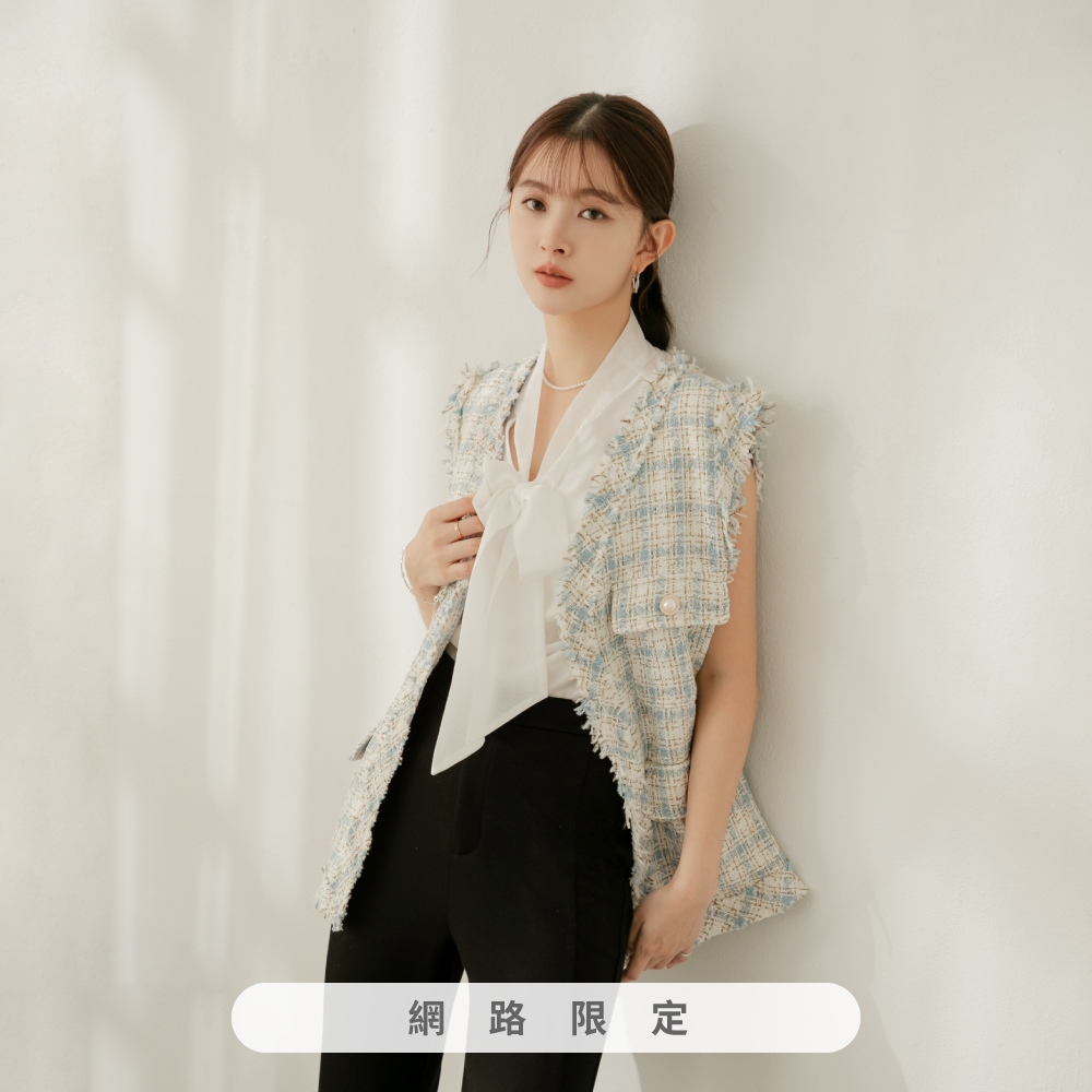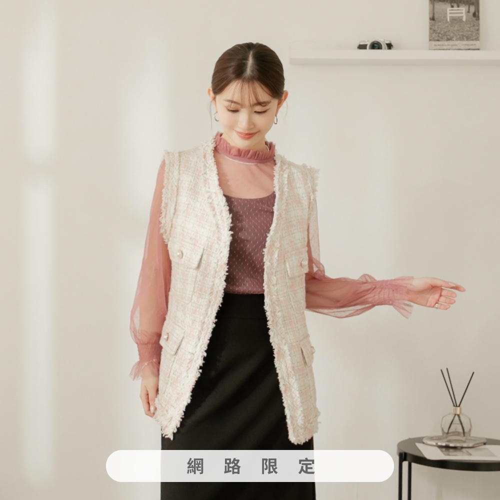 niceioi【特惠】小香風背心 長版 格紋背心 黑色 [千金小香長版格紋金蔥背心] 女裝黑,F|粉,F|藍,F|白,FBlazersniceioi 官方旗艦店