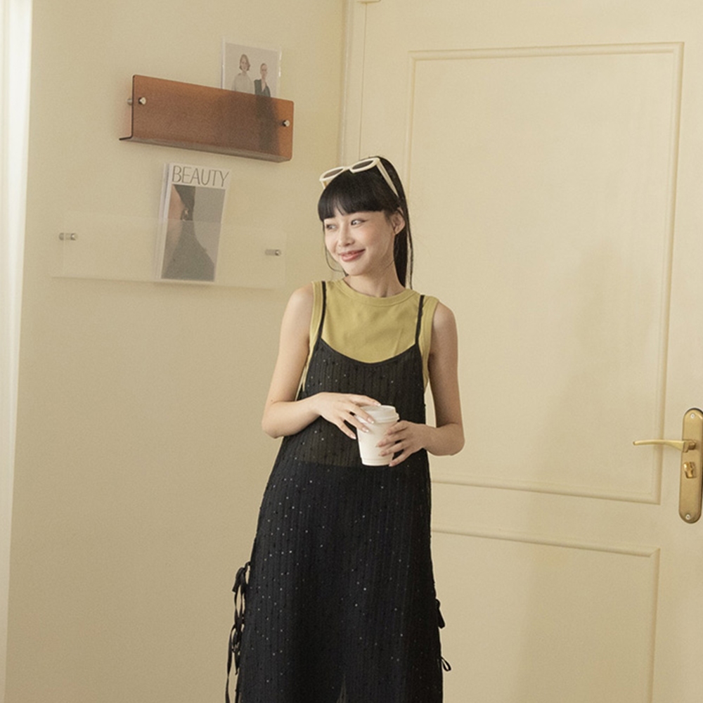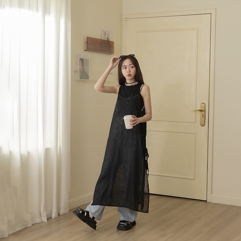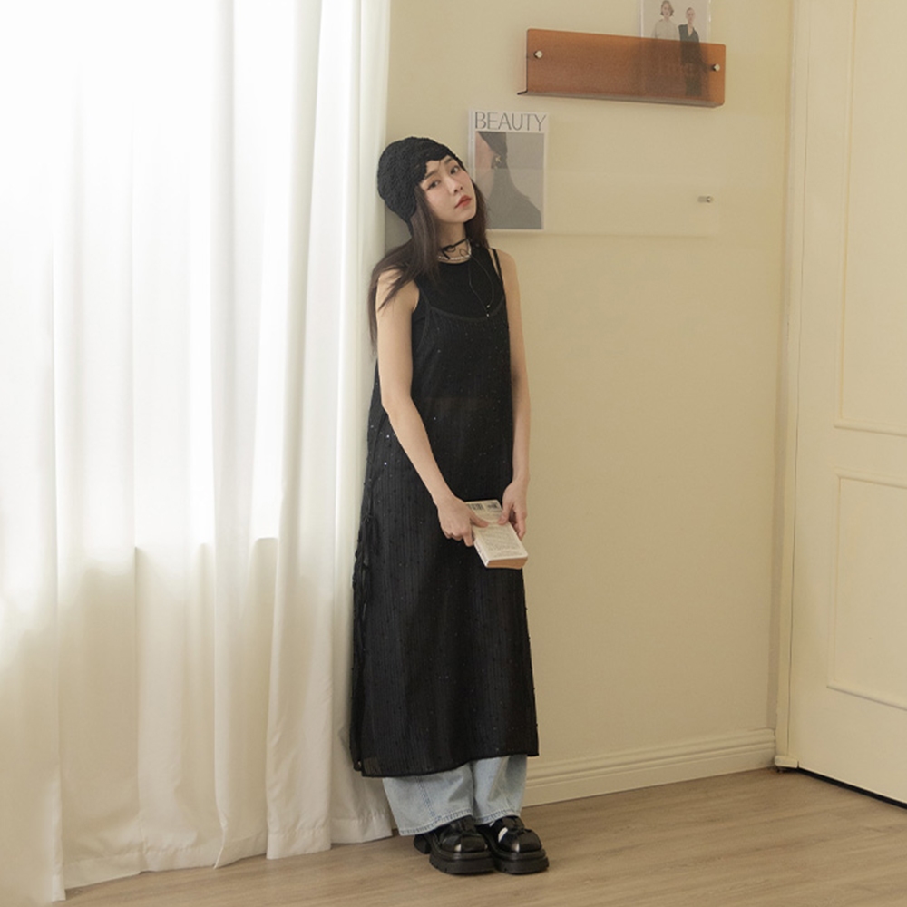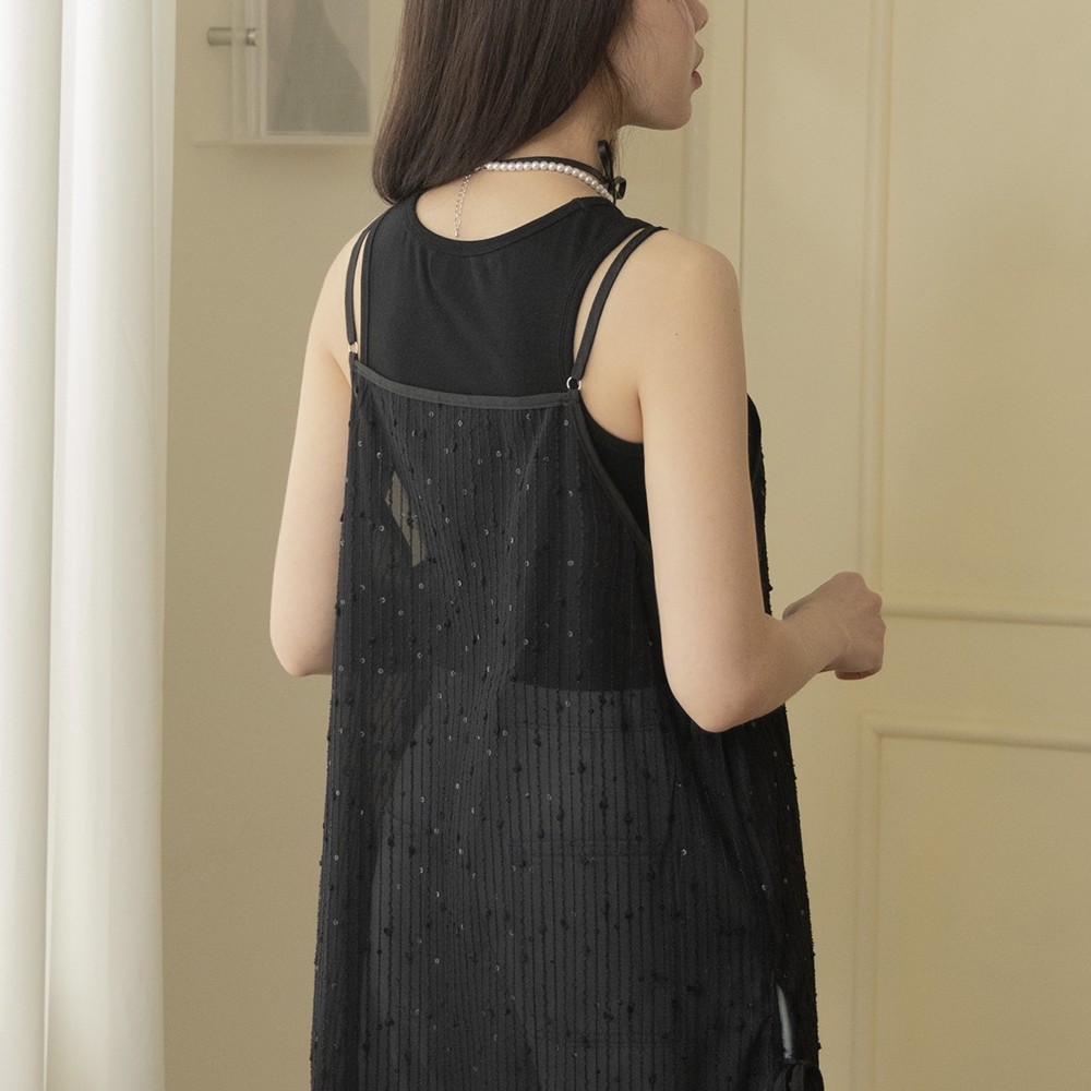 QUEENSHOP_ S 女裝 微亮片緹花直紋長版外罩背心 兩色售 現+預 【01098906】黑|白OthersQUEENSHOP