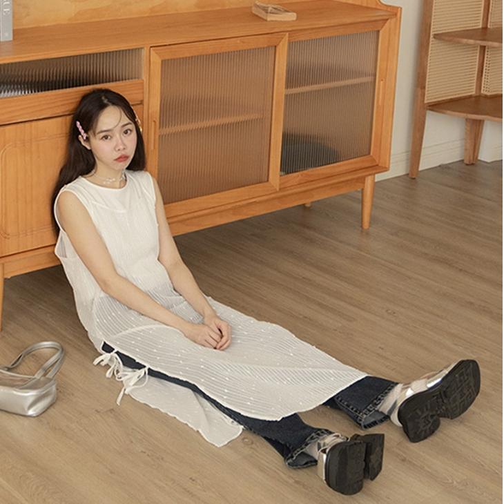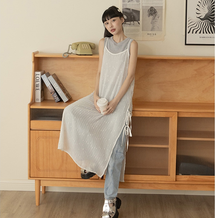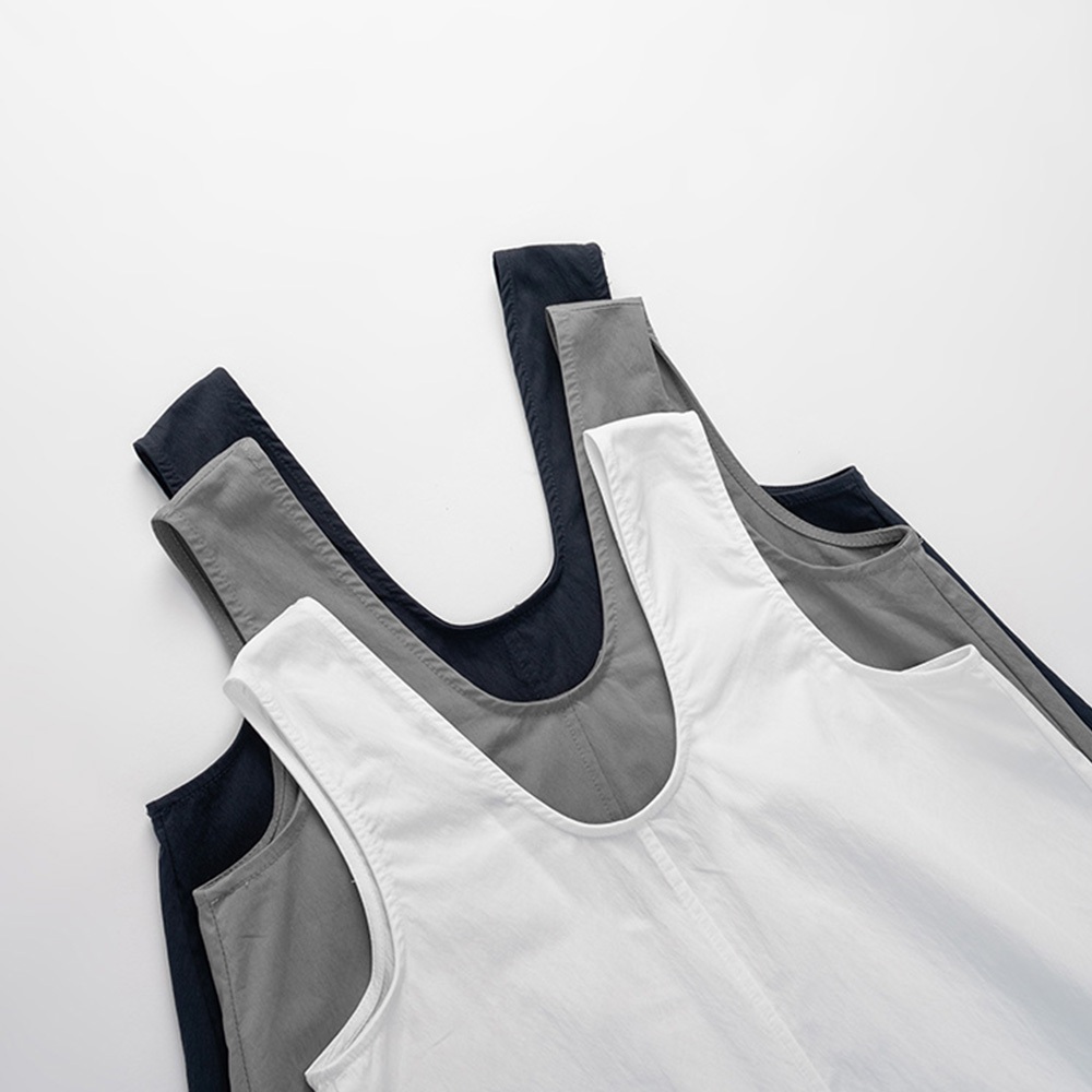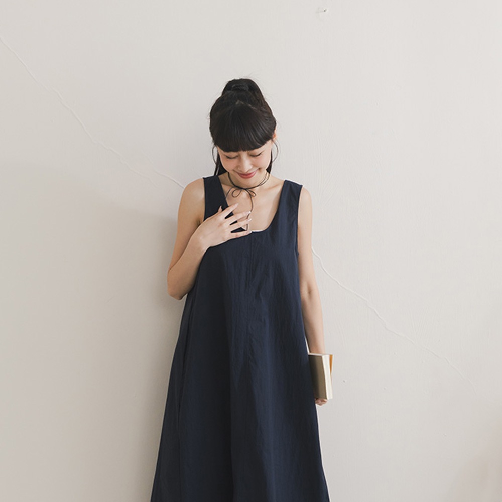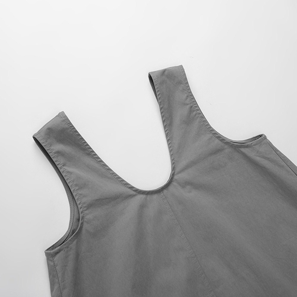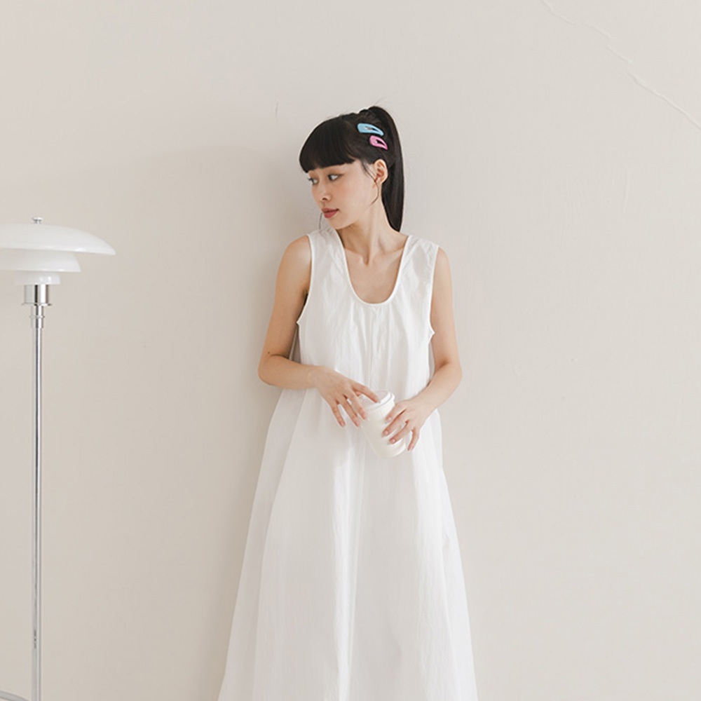 QUEENSHOP_ S 女裝 U領下擺抽繩無袖長洋裝 三色售 現+預 【01087079】灰|白|藍QUEENSHOP