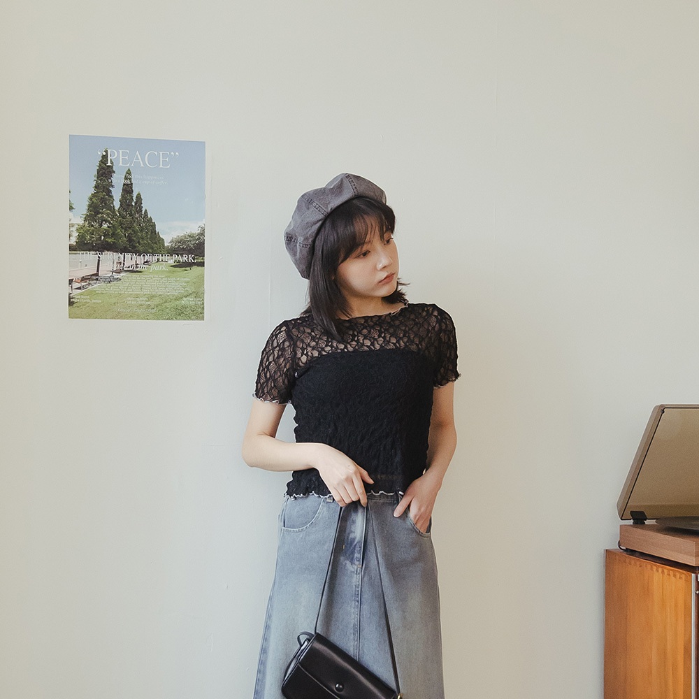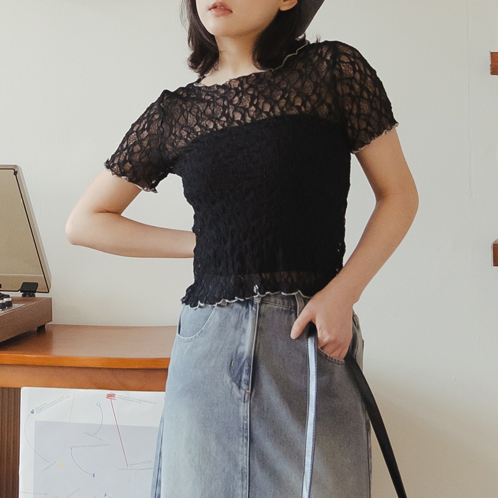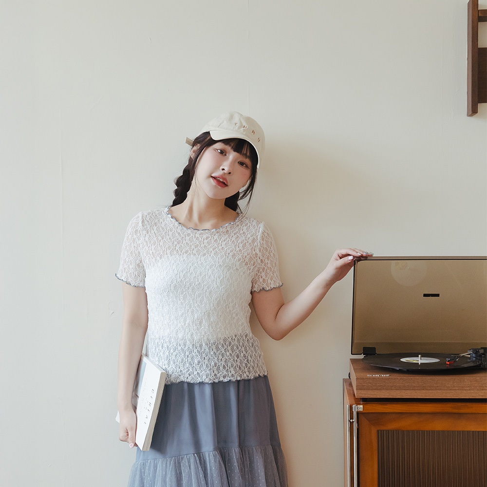 QUEENSHOP_ S 女裝 短袖 棉花糖 撞色木耳邊蕾絲上衣 三色售M-XL 現+預 【01098976】黑M|黑L|黑XL|白M|白L|白XL|藍M|藍L|藍XLOthersQUEENSHOP