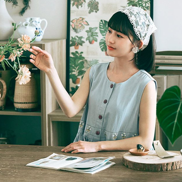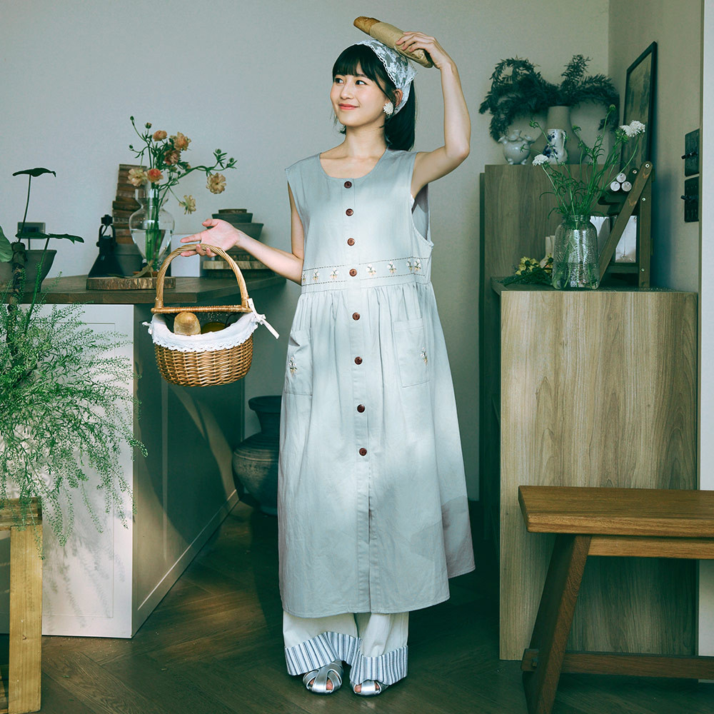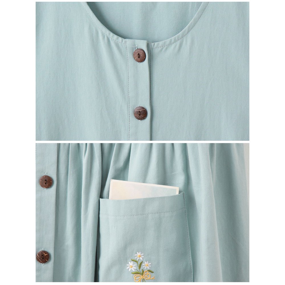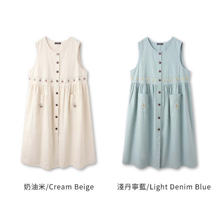 OB嚴選 日系純棉花卉刺繡開襟排釦罩衫洋裝 《DA10434》奶油米,F|奶油米,XL|奶油米,2L|奶油米,3L|淺丹寧藍,F|淺丹寧藍,XL|淺丹寧藍,2L|淺丹寧藍,3LOB嚴選官方旗艦店
