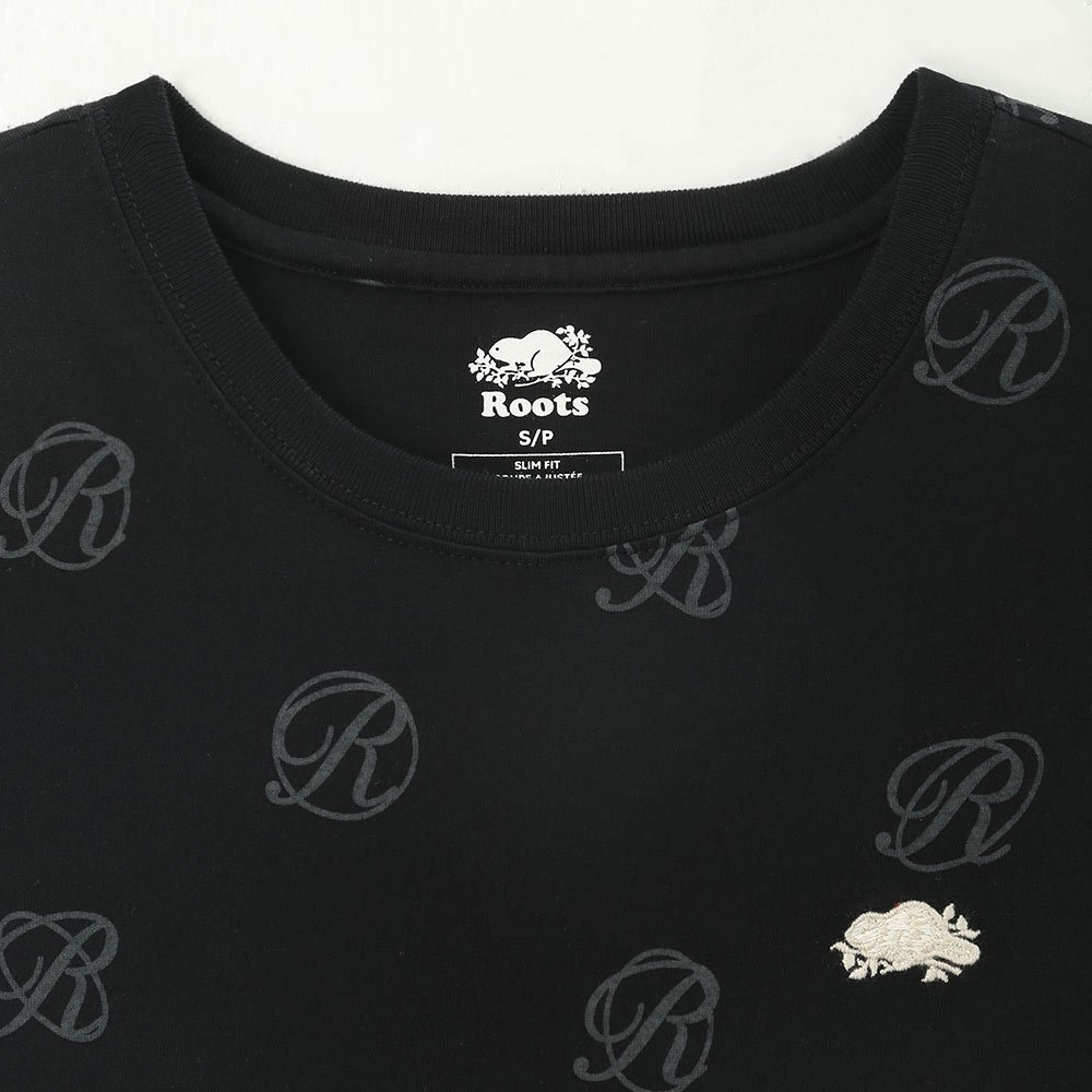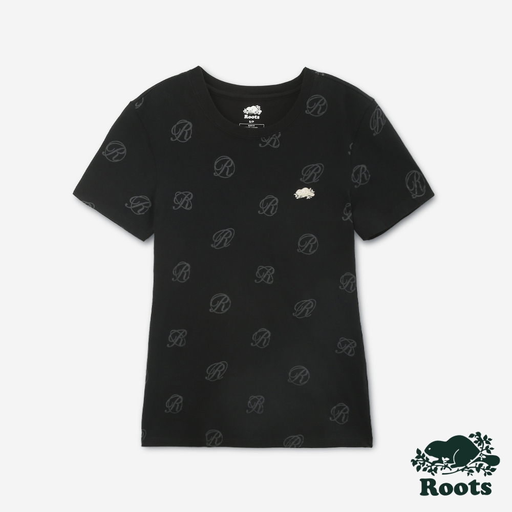 Roots女裝- R-CREST AOP SLIM 短袖T恤黑色,XS|黑色,S|黑色,M|黑色,L|黑色,XL|黑色,XXLT-shirtsRoots 官方旗艦店