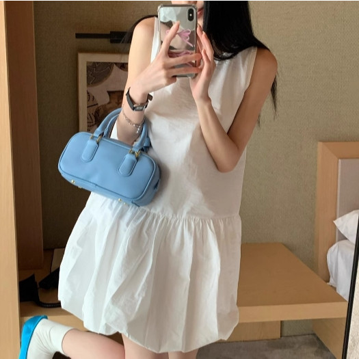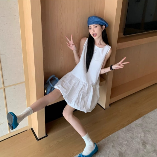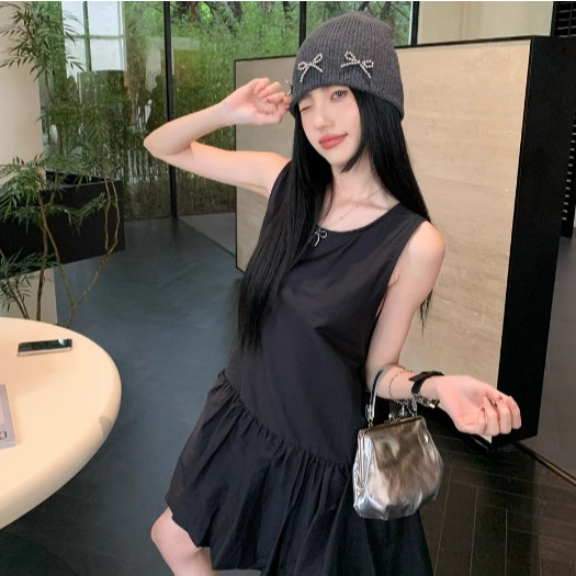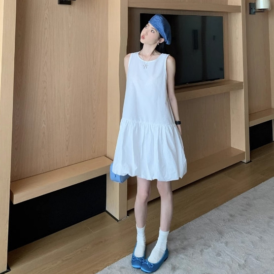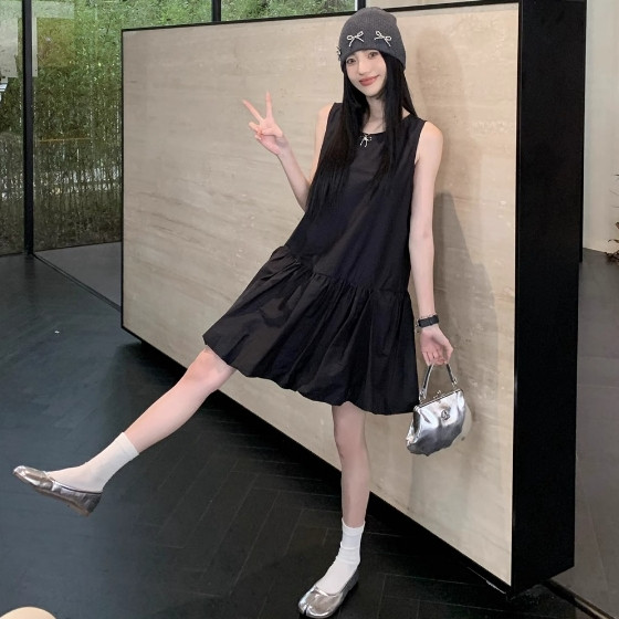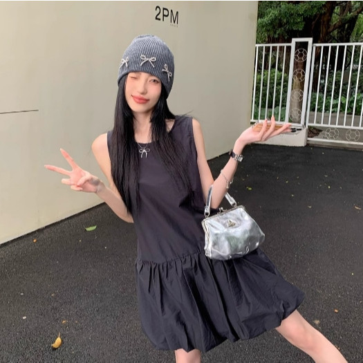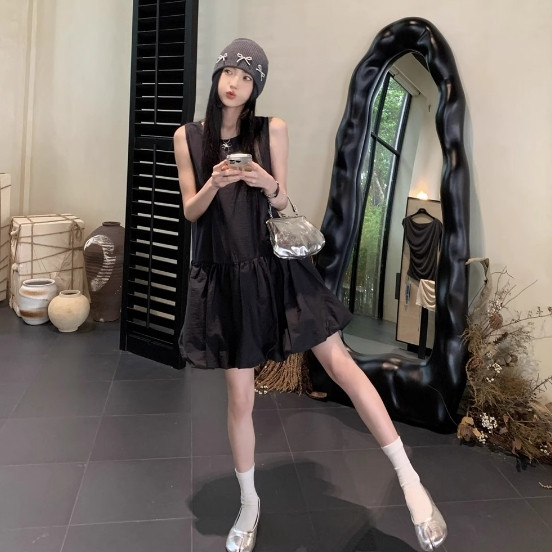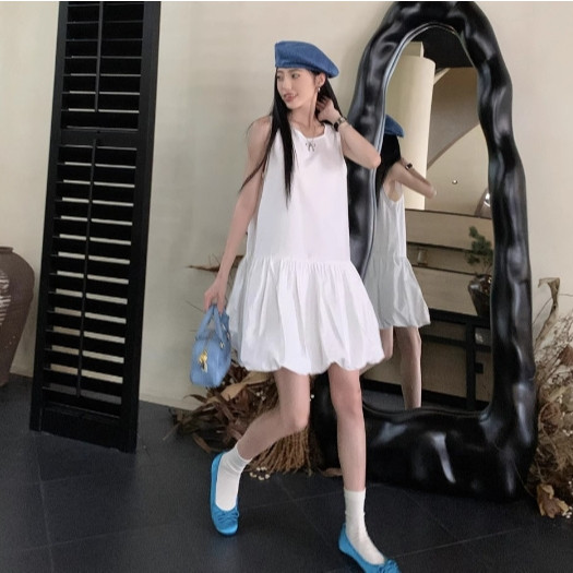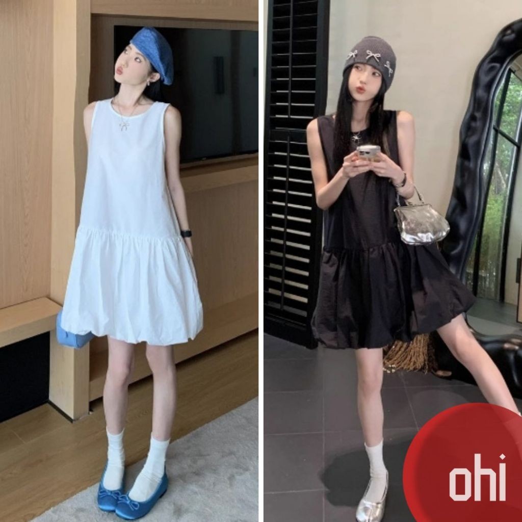 【ohi】韓系無袖背心連衣裙 溫柔風氣質裙子 小個子寬鬆花苞短裙 連衣裙 連身裙 短裙 洋裝 女裝 GKD233黑色,S|黑色,M|黑色,L|黑色,XL|白色,S|白色,M|白色,L|白色,XLOHI衣著