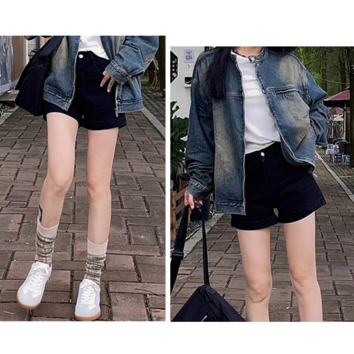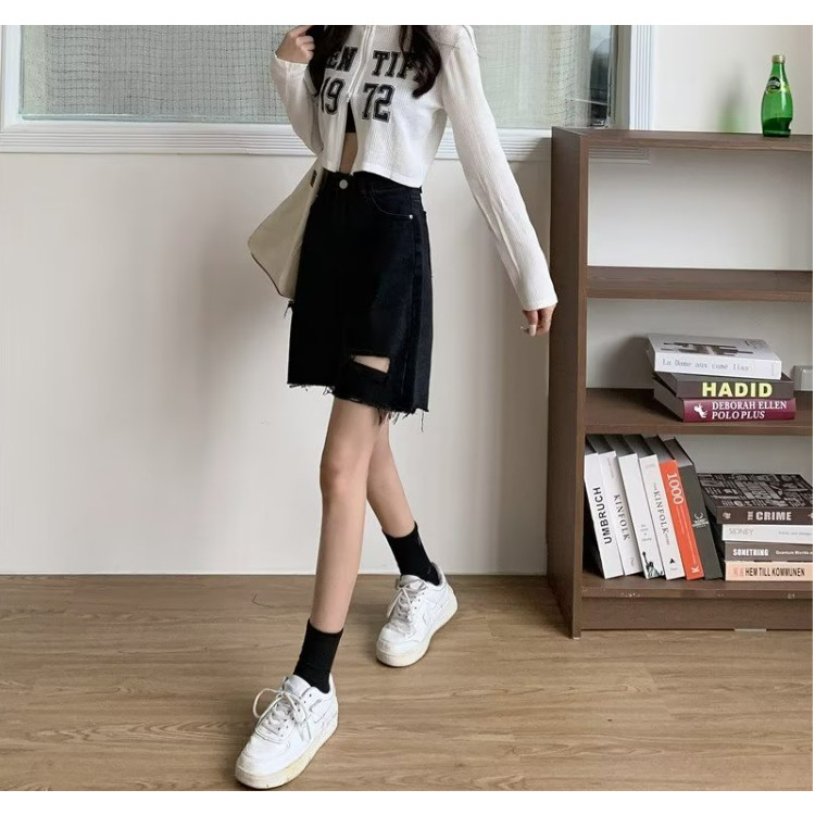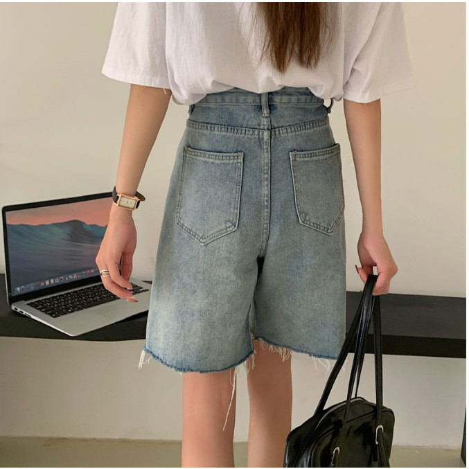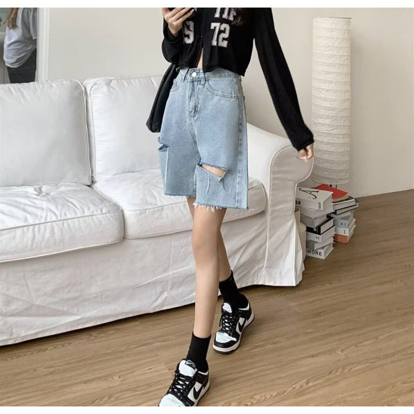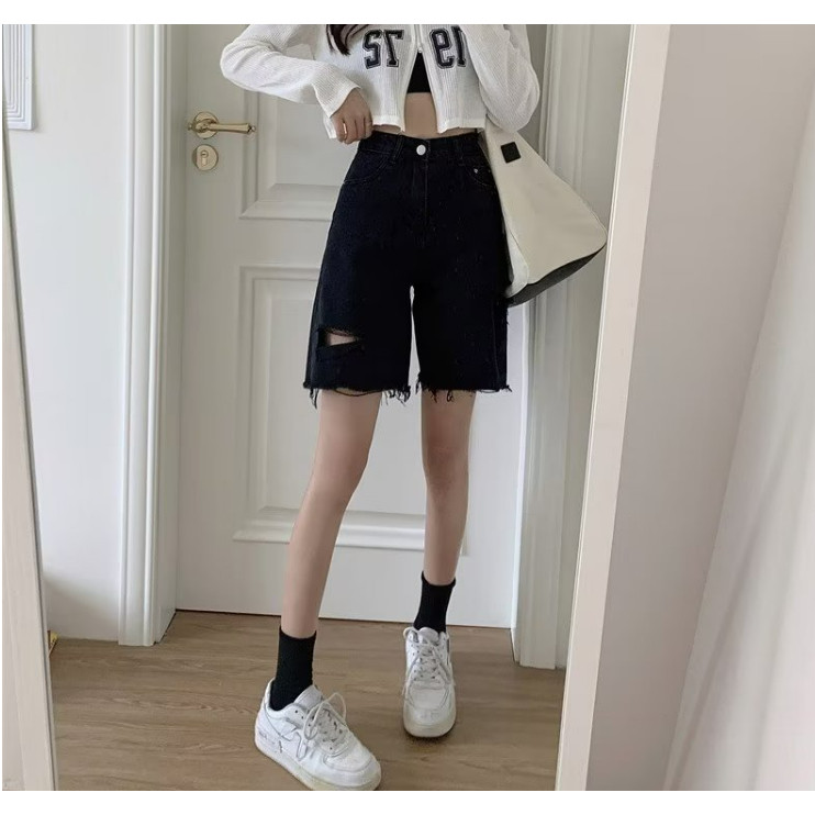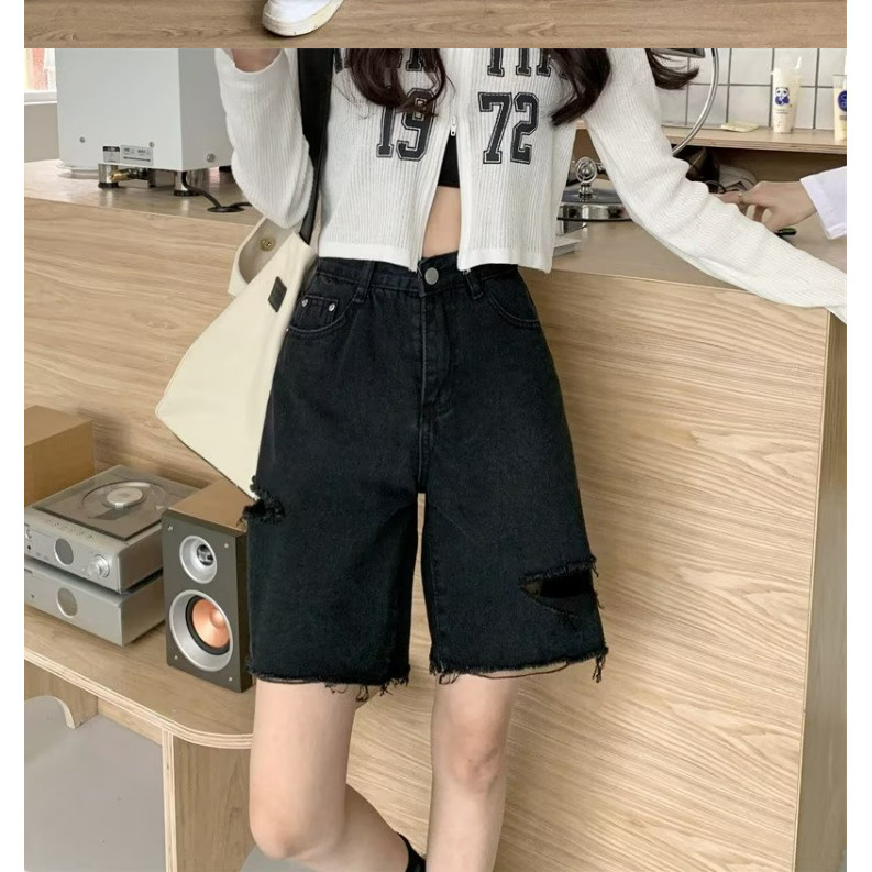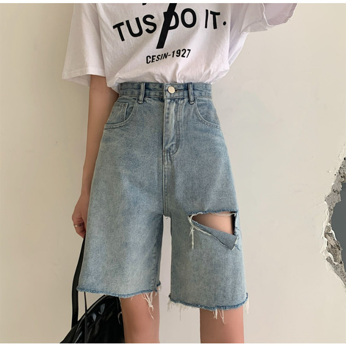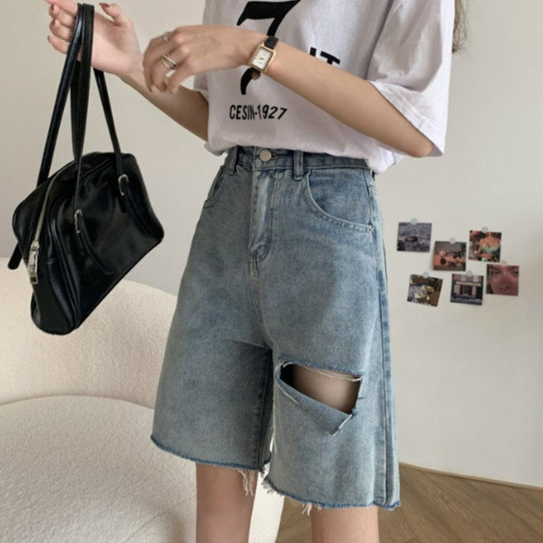 【ohi】男友風寬鬆毛邊割破洞 牛仔五分短褲 高腰瘦闊腿褲(XGJL679)黑色,S|黑色,M|黑色,2XL|藍色,M|黑色,L|黑色,XL|藍色,S|藍色,L|藍色,XL|藍色,2XLShortsOHI衣著