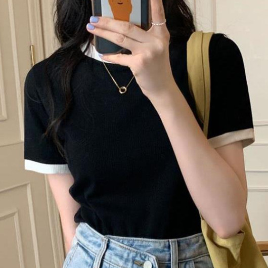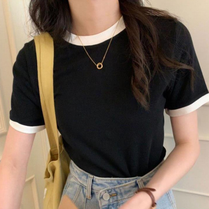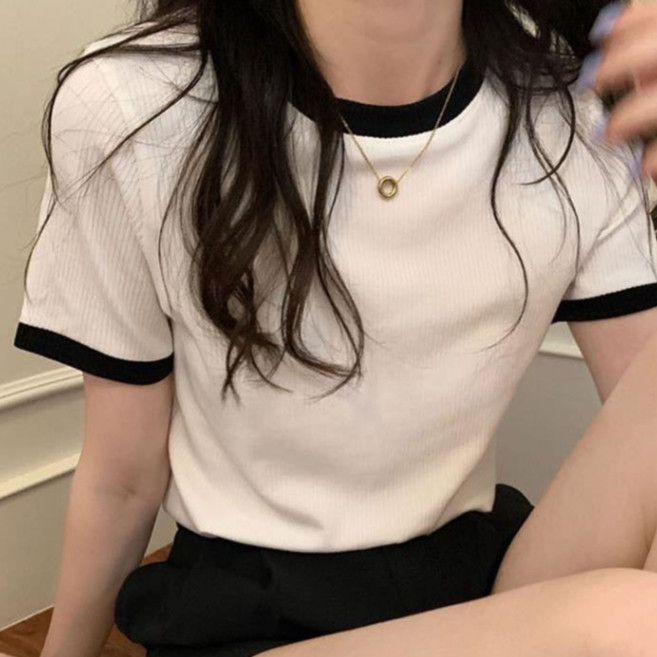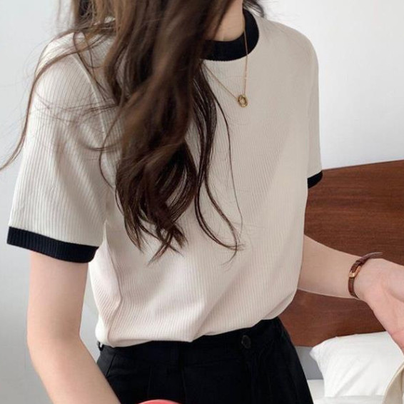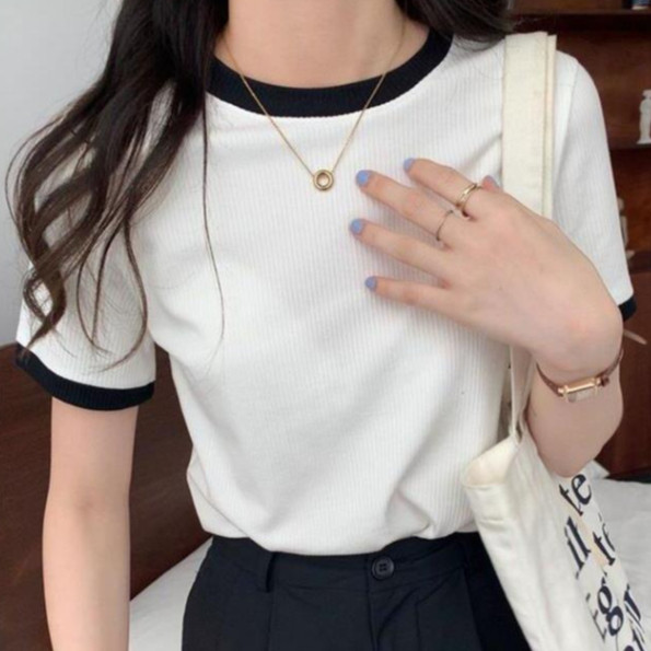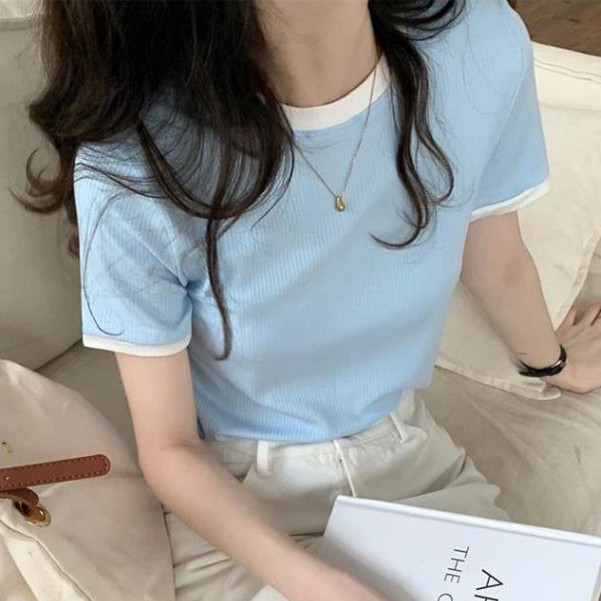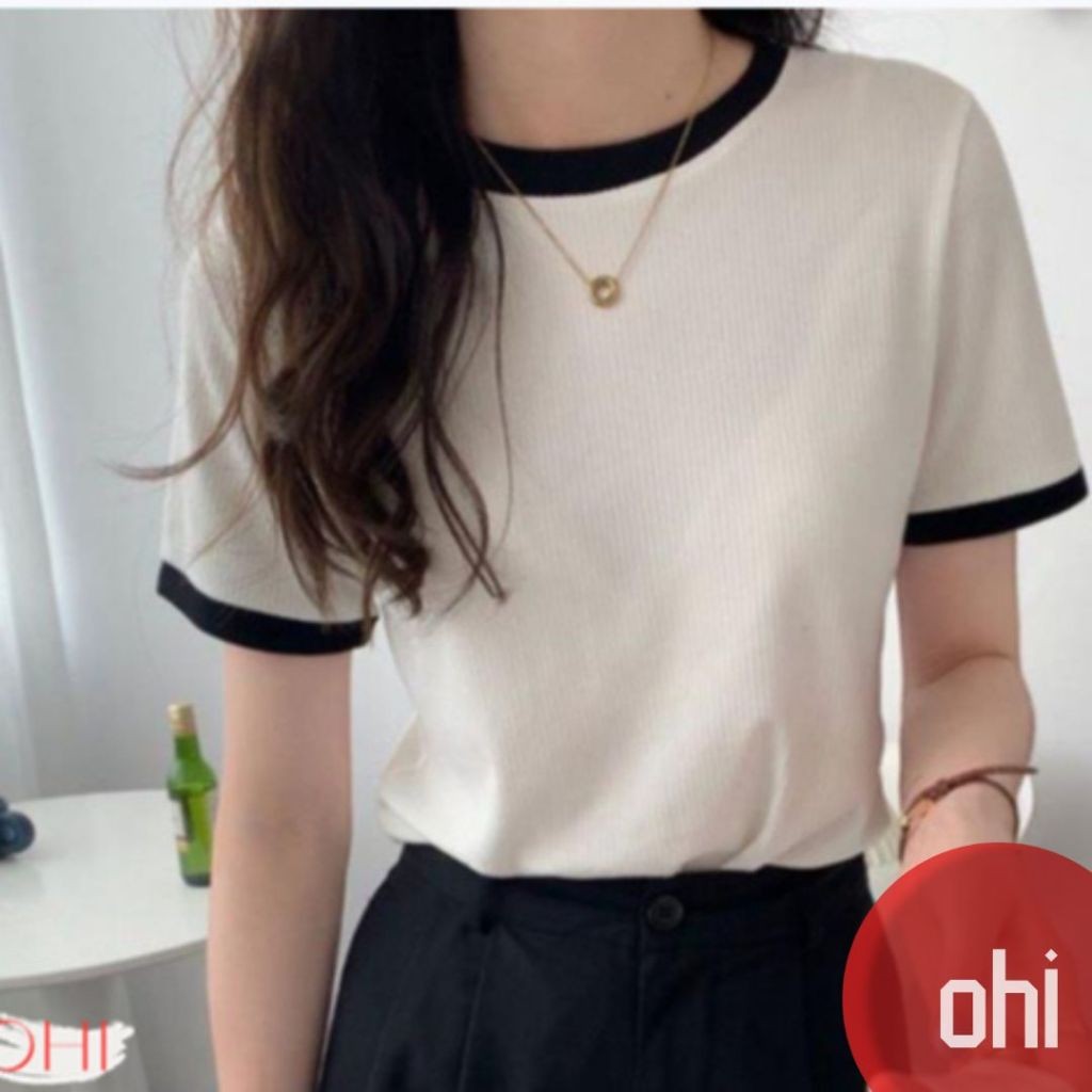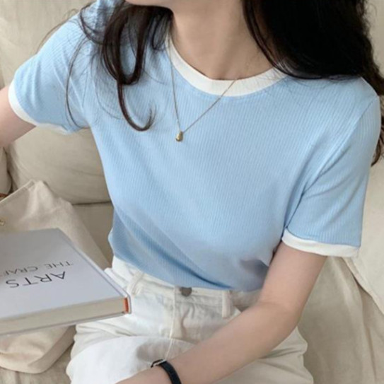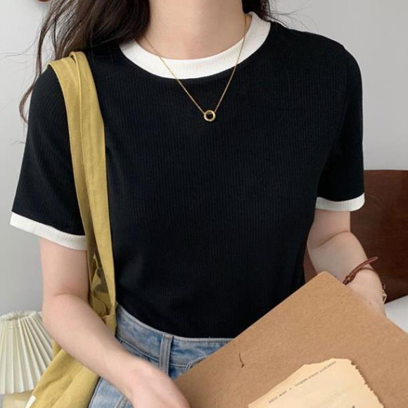 【ohi】『熱銷中』小香風滾邊短袖上衣 顯瘦上衣 女上衣 短袖t恤 短T 素T 女裝 寬鬆上衣GTW9925藍色|白色|黑色T-shirtsOHI衣著