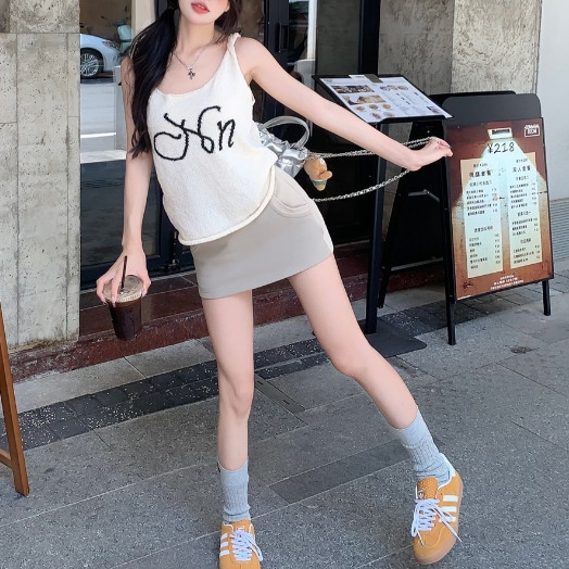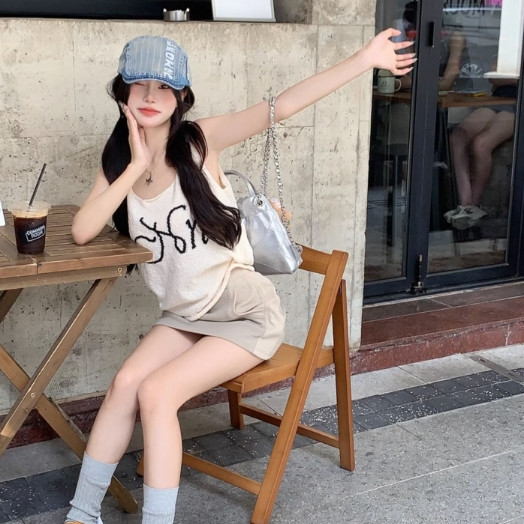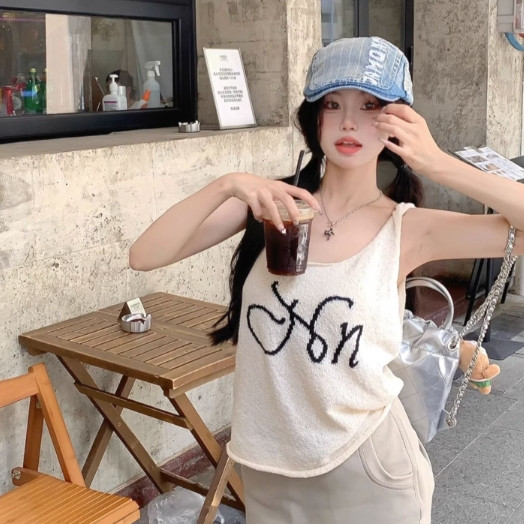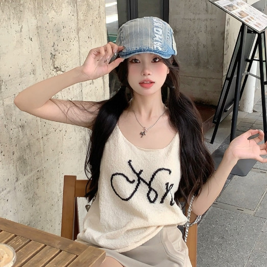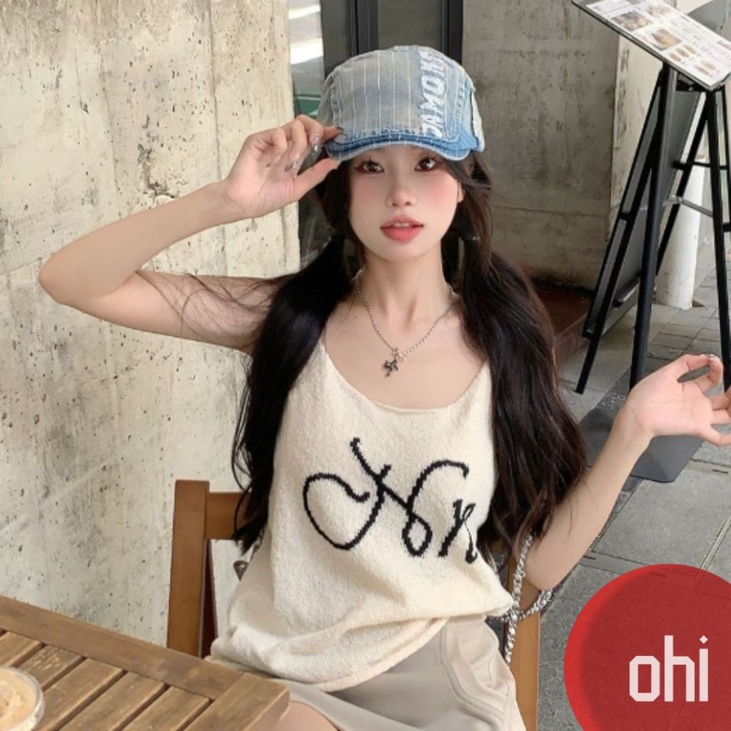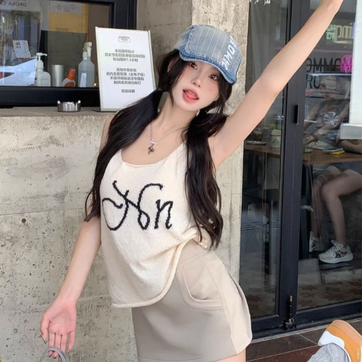 【ohi】純欲甜辣妹針織吊帶背心 無袖上衣 女生顯瘦百搭 吊帶背心 背心小可愛 女裝 背心女 女裝 GVD5668杏色,均碼-F(40-65KG可穿)Tanks & CamisolesOHI衣著