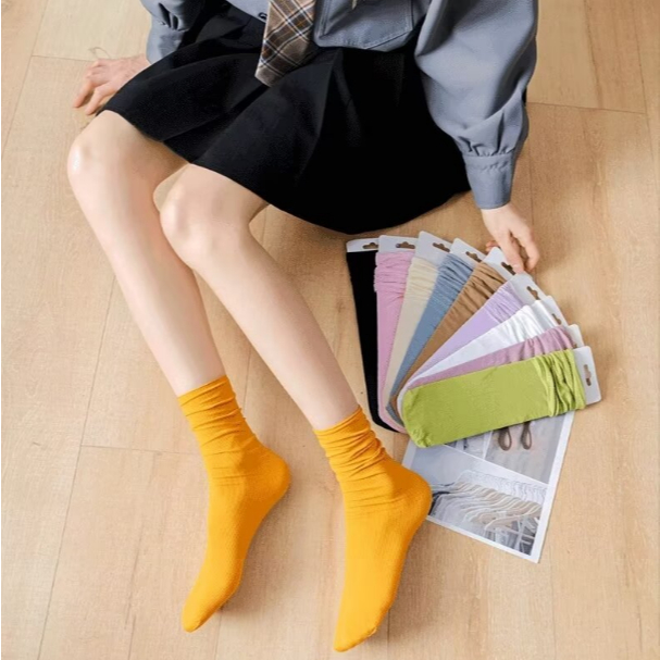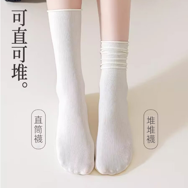 【ohi】『熱銷中』長筒襪女襪子 日系堆堆襪 少女學院風 純色百搭 棉襪 長襪 中筒襪 百搭 可愛 中筒棉襪AWD71黑色|白色|奶白色|霧藍色|淡紫色|卡其色(偏膚色)|皮粉色|抹茶綠|亮黃色|薑黃色|螢光綠|粉紅色SocksOHI衣著