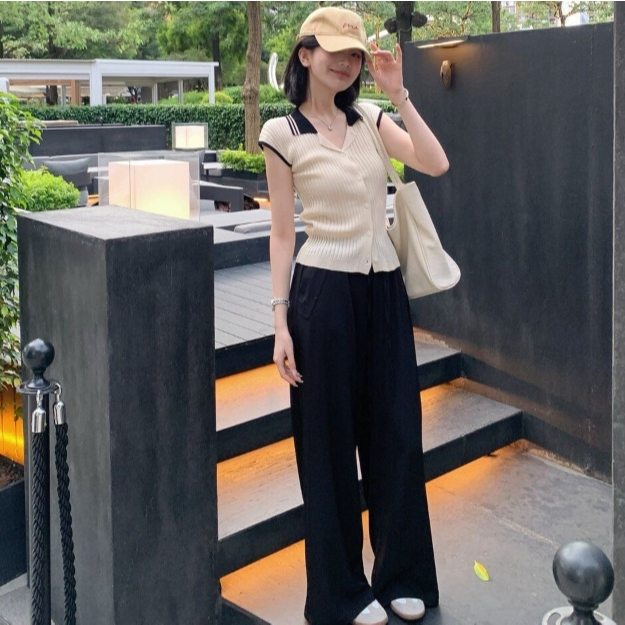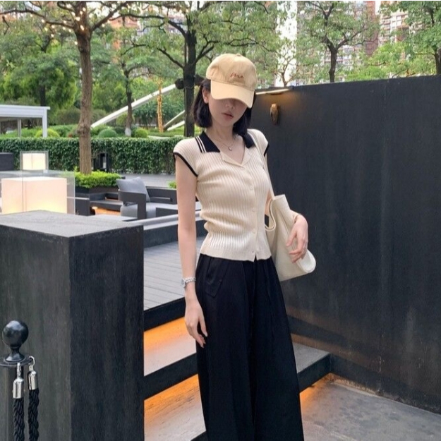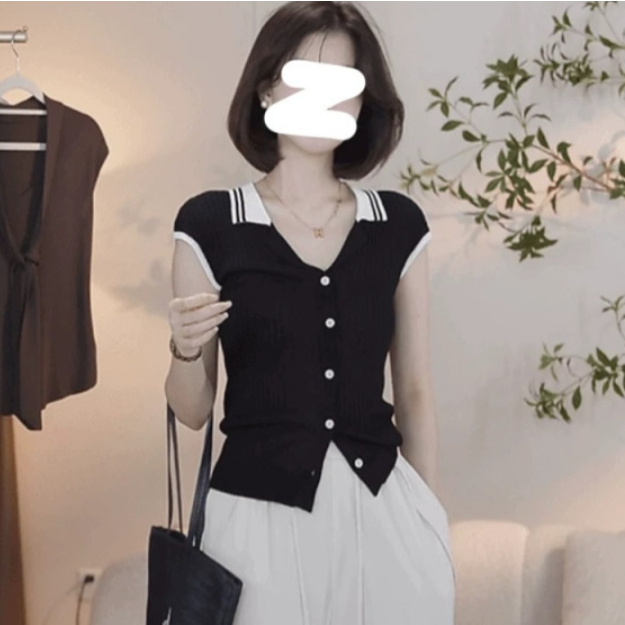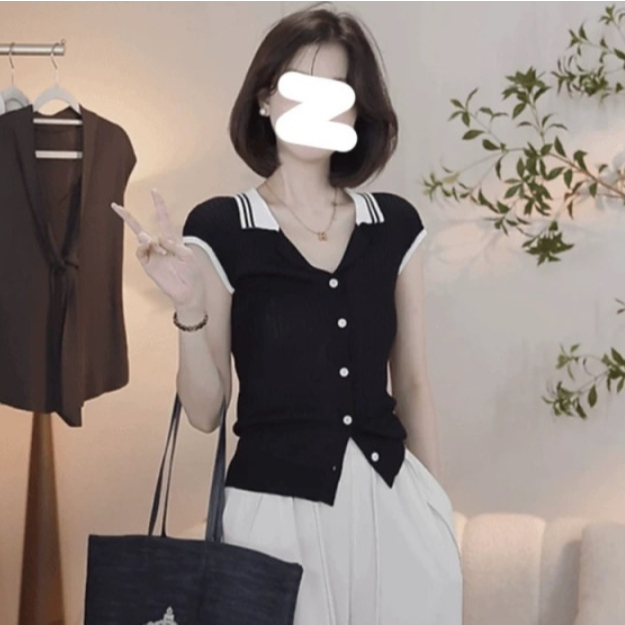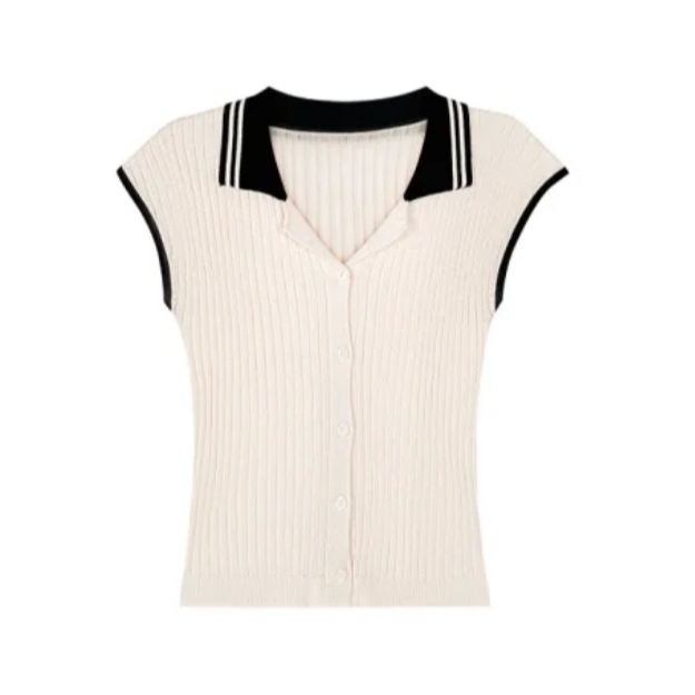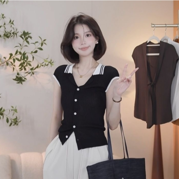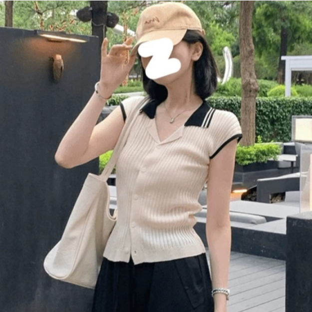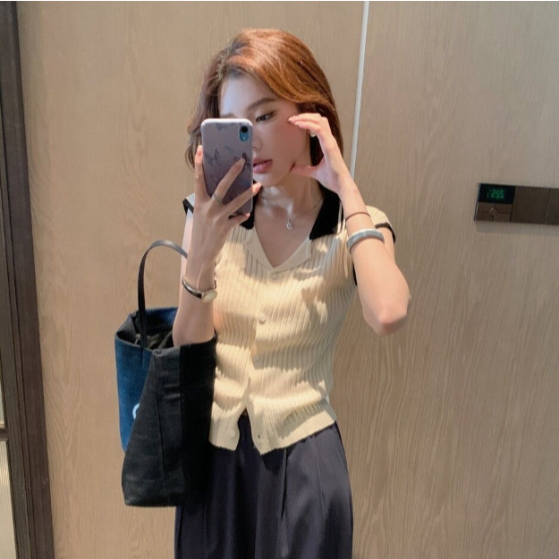 【ohi】法式復古小香風拼接針織衫 POLO領小眾設計感 女生上衣 針織上衣 女裝 顯瘦上衣 韓版上衣 GWH2259黑色,F碼(均碼40-55KG可穿)|杏色,F碼(均碼40-55KG可穿)OthersOHI衣著