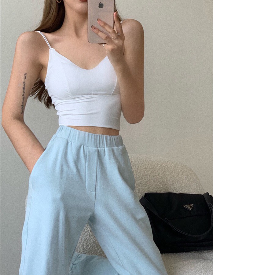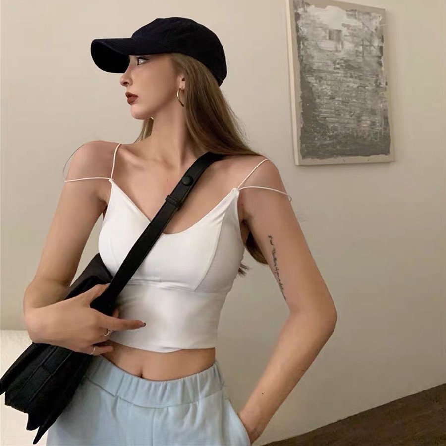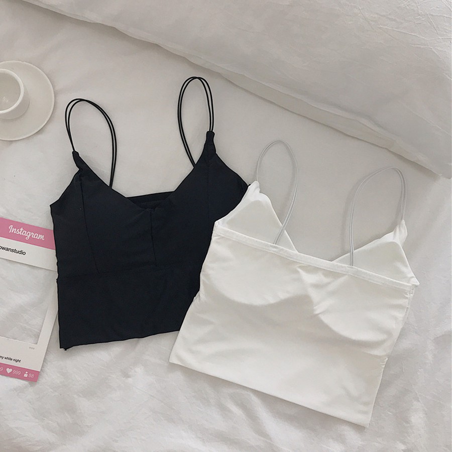 小可愛 背心 【 韓版 冰絲 細帶 小可愛 -2色】 可外穿背心 細肩帶背心 內搭 BAR背心 短版 GT002黑(限50KG以下)|白(限50KG以下)Tanks & CamisolesSBSHOP 內衣 泳衣 比基尼
